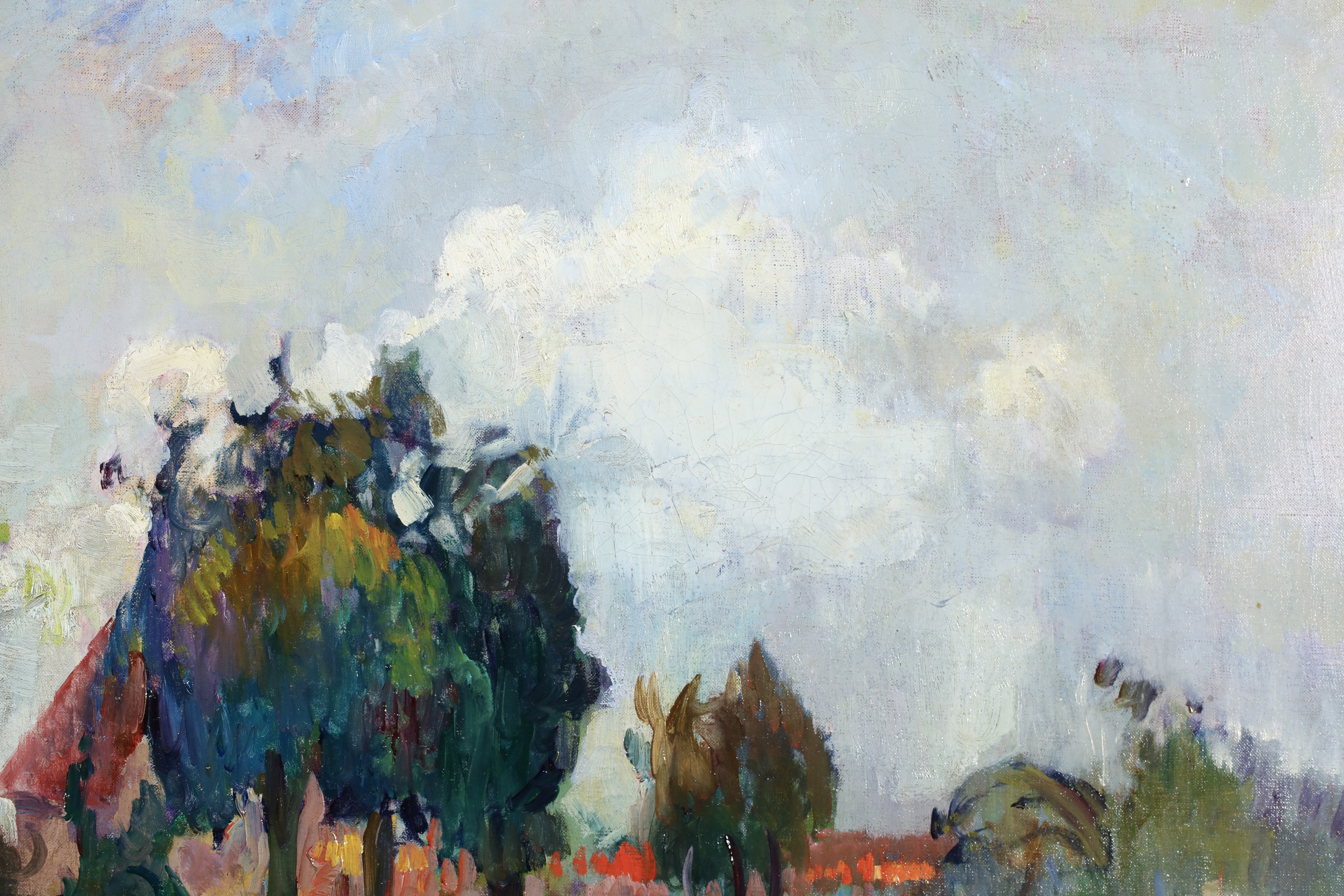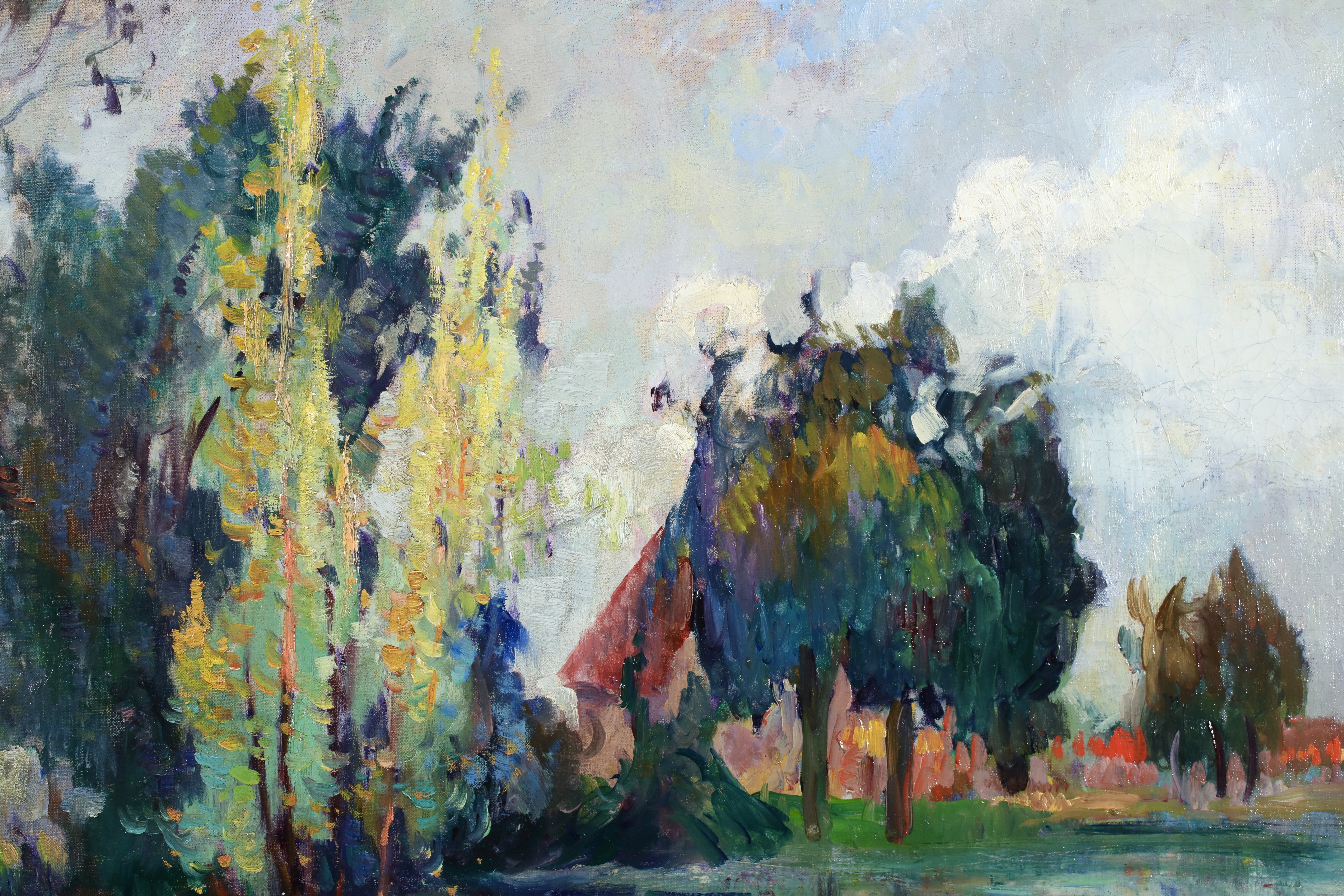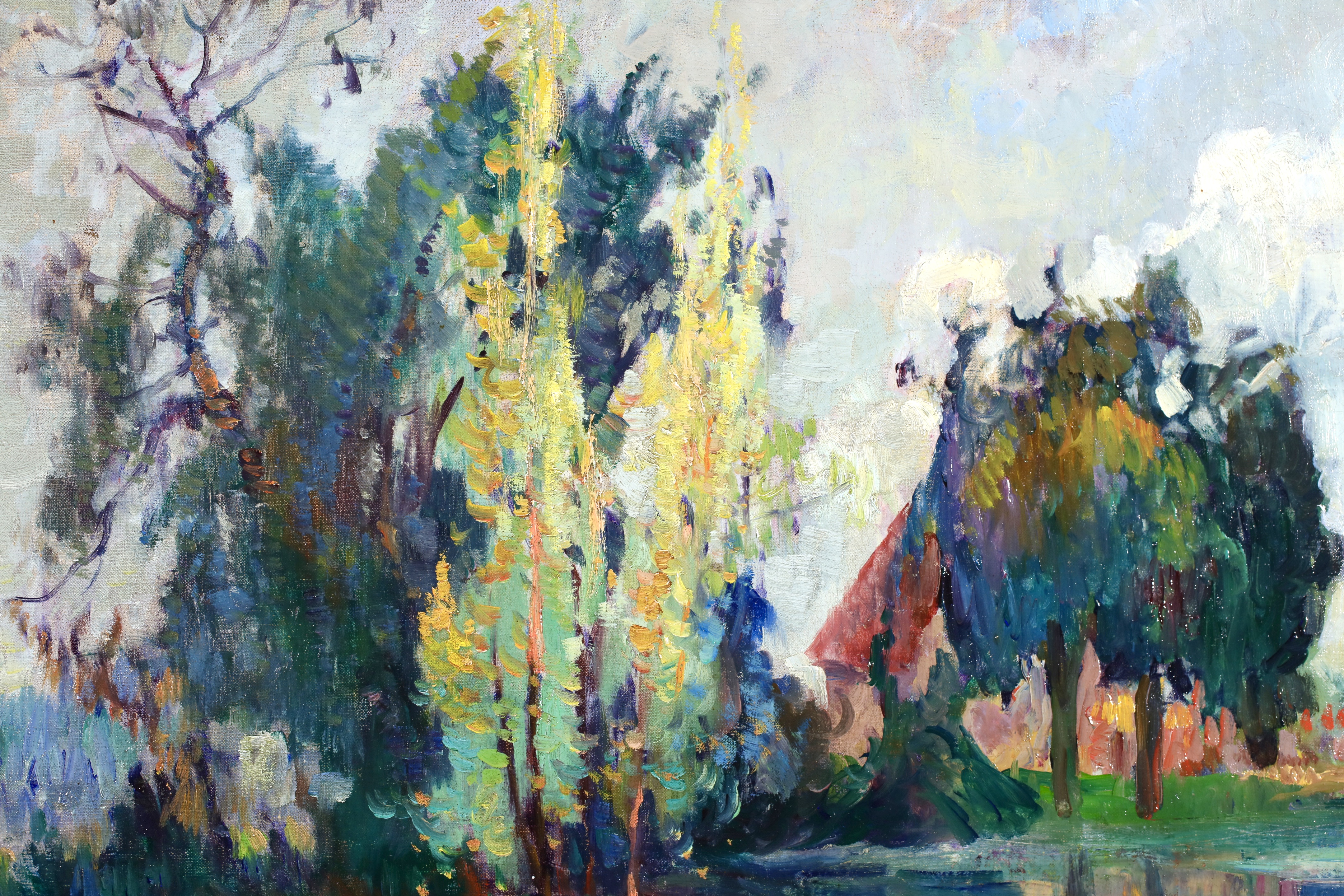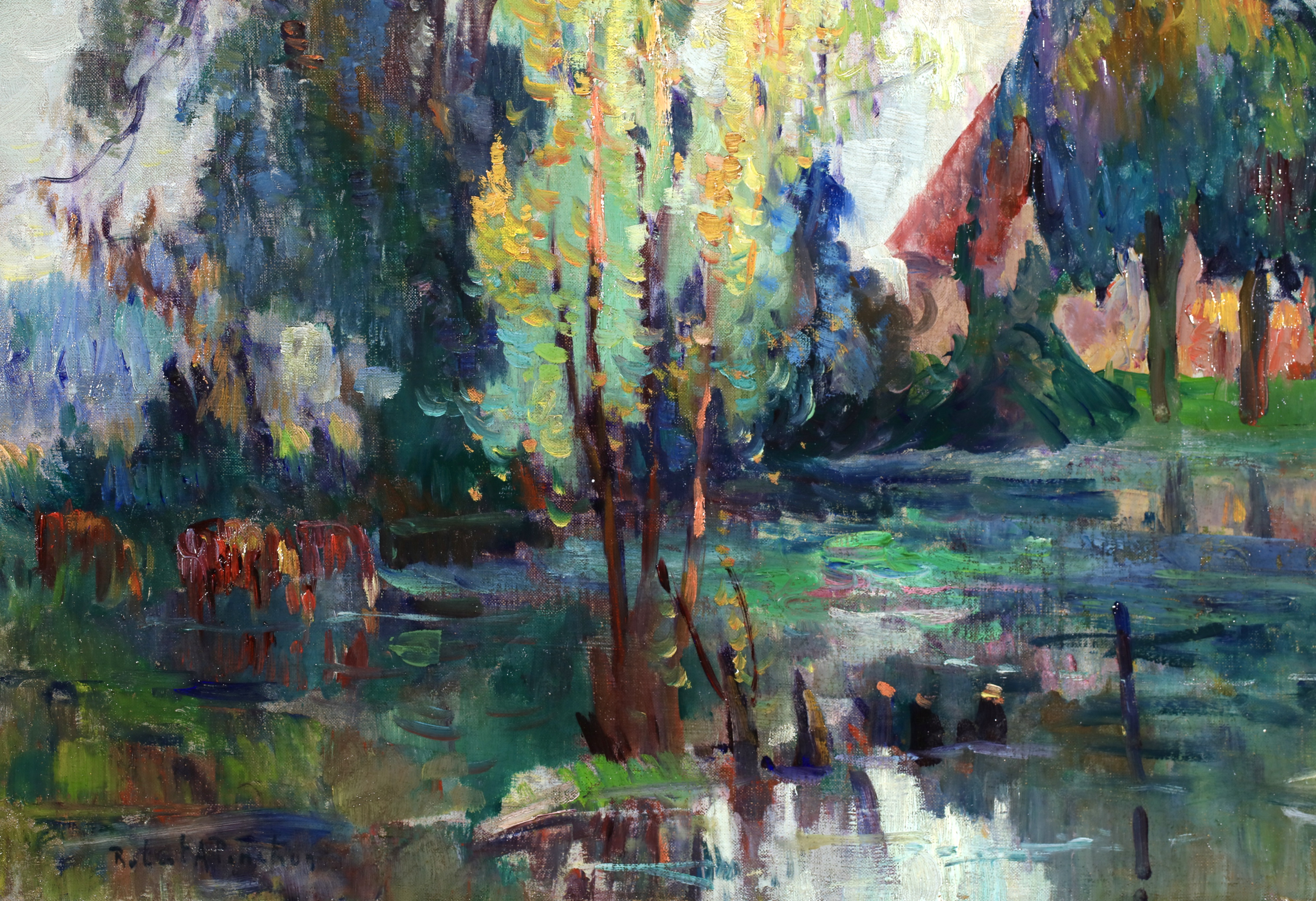 Along with Dumont and Guilbert, Robert Pinchon is one of the Rouen artists who understood Monet's teachings best. Monet himself noticed Pinchon's 'eye' when he met him for the first time. On a technical level, he used pure colours, just as they came out of the tube. His poetical art perfectly rendered not only the misty lights of the port of Rouen, but also scenes of daily life, whether of a young woman sitting in a garden or children playing with a ball. Noteworthy are: Embankment in Rouen; Rouen in the Snow; Banks of the Seine; Suspension Bridge at Elbeuf.