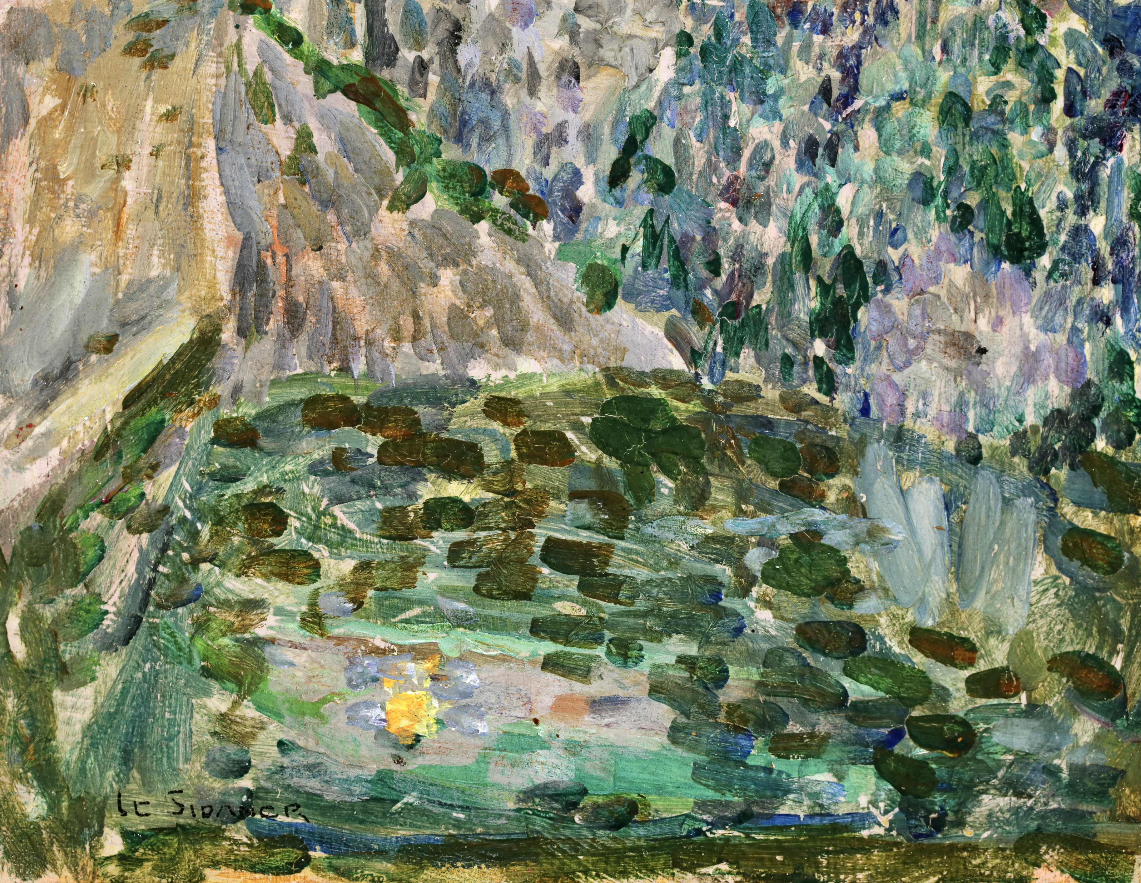 Henri Le Sidaner’s art falls oddly between that of the late Impressionists, whose divisionism he practised, and that of Eugène Carrière, which is characterised by indeterminate colours and a taste for a certain misty atmosphere. He often painted in Venice and Bruges and is noted for his twilight effects. C. Mauclair, a writer imbued with the symbolist spirit, has perhaps best described his talent. Among his most notable works are Blessing the Sea, Patrol in Moonlight, Canal in Bruges, and The Ducal Palace and Grand Canal, Venice.