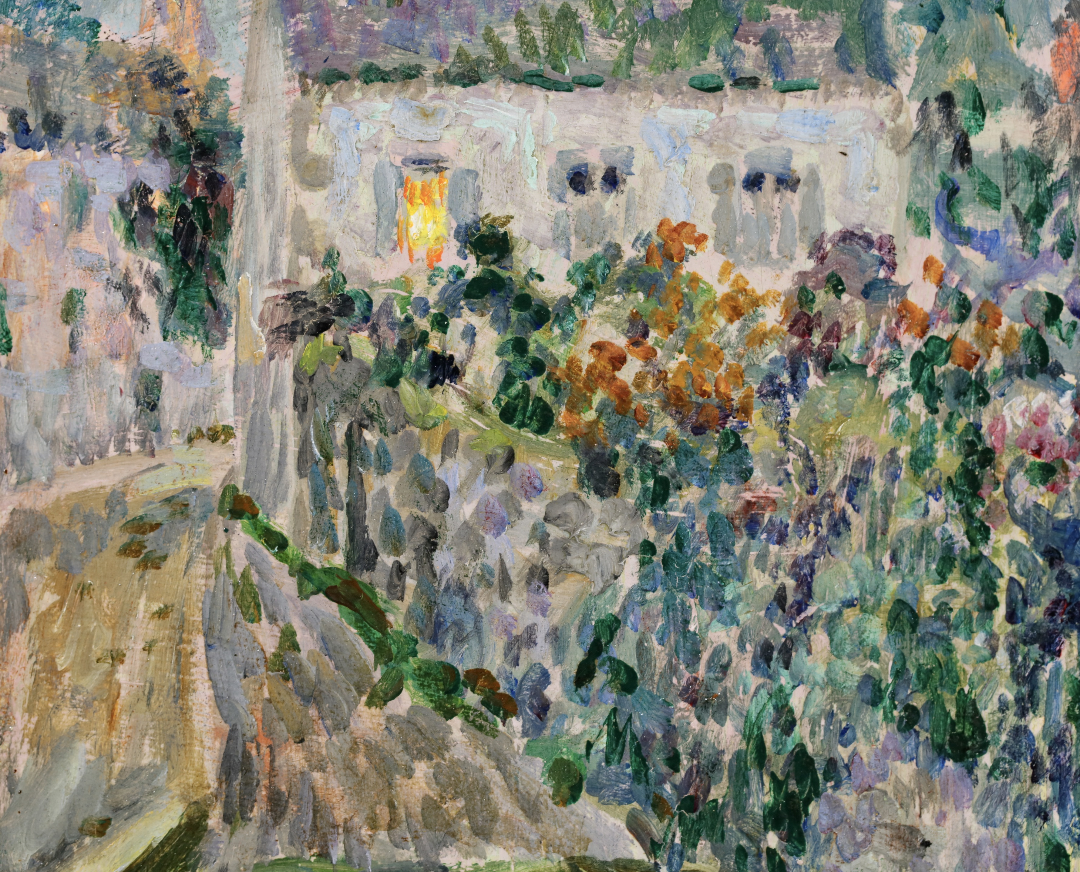 Henri Le Sidaner went to Paris in 1880 and became a pupil of Cabanel at the École des Beaux-Arts in 1884. He lived in Brussels and Bruges in 1898 and 1899, then in 1900 moved to Gerberoy in the Oise, and later to Versailles.