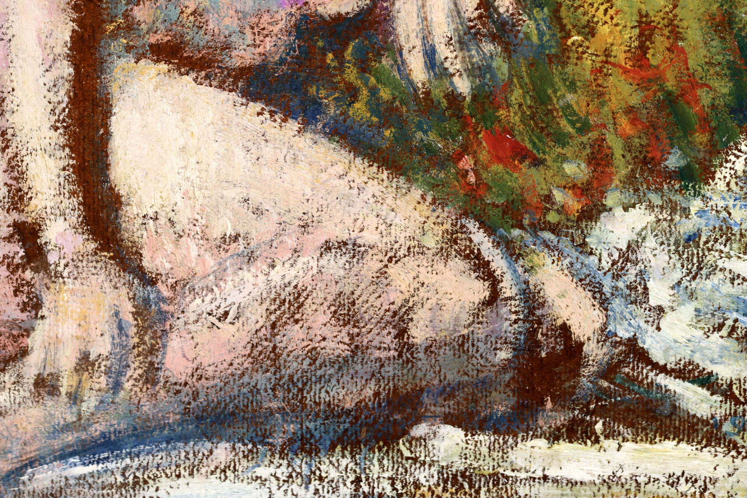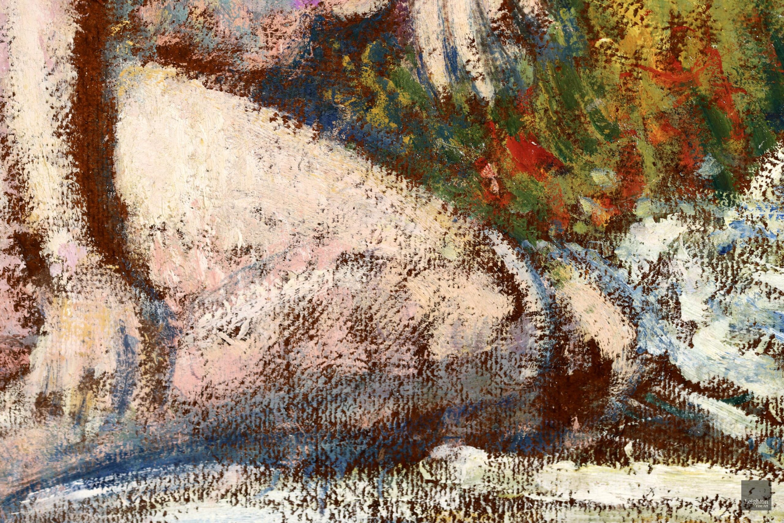 In the early days of the Cercle des XX, Lemmen espoused a pointilliste technique. His earlier painting was clearly influenced by the Neo-Impressionists; over time, however, his style became more subtle and nuanced - recalling, perhaps, that of his compatriot Van Rysselberghe, another Cercle des XX member. With the group's rebirth as the Libre Esthétique, Lemmen's work became more intimiste in character, most notably in his portraits, nudes and still-lifes, where the influence of Bonnard and Vuillard is unmistakable, as is that of Renoir, particularly after Lemmen's travels in the Midi in 1911. From this point onwards, he would go on to make a major contribution to the renewal of the graphic and decorative arts in terms of his input to the new 'free' aesthetic and to Art Nouveau. Although his draughtsmanship retained its essential purity and elegance of line, his painting became more fleshy, imprecise and sensual, his compositions governed less by technical considerations than by the urgent need to express his emotions.