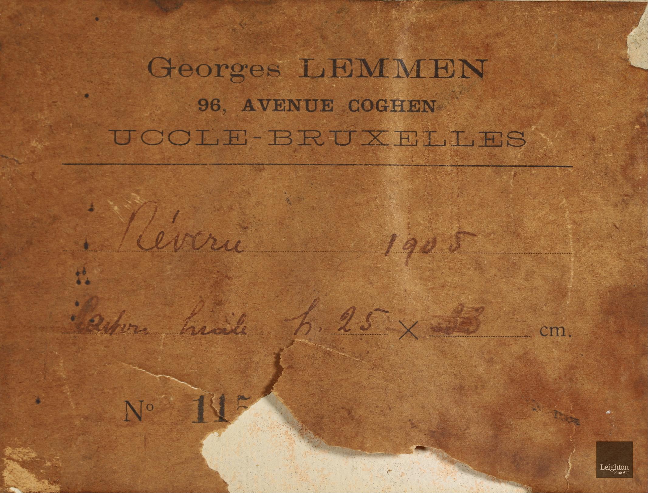 Original artists label verso for Georges Lemmen at 96 Avenue Coghen , Brussels