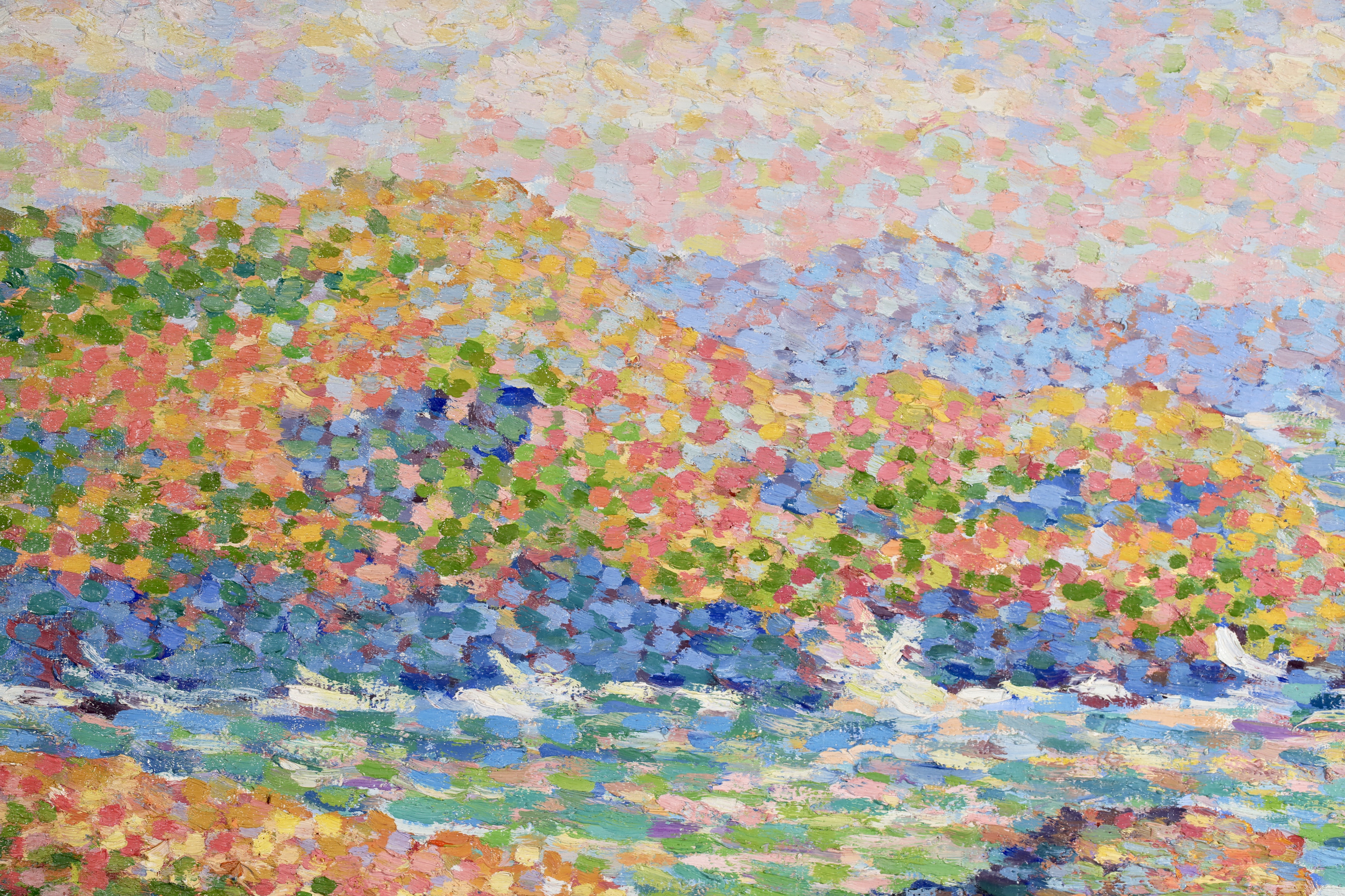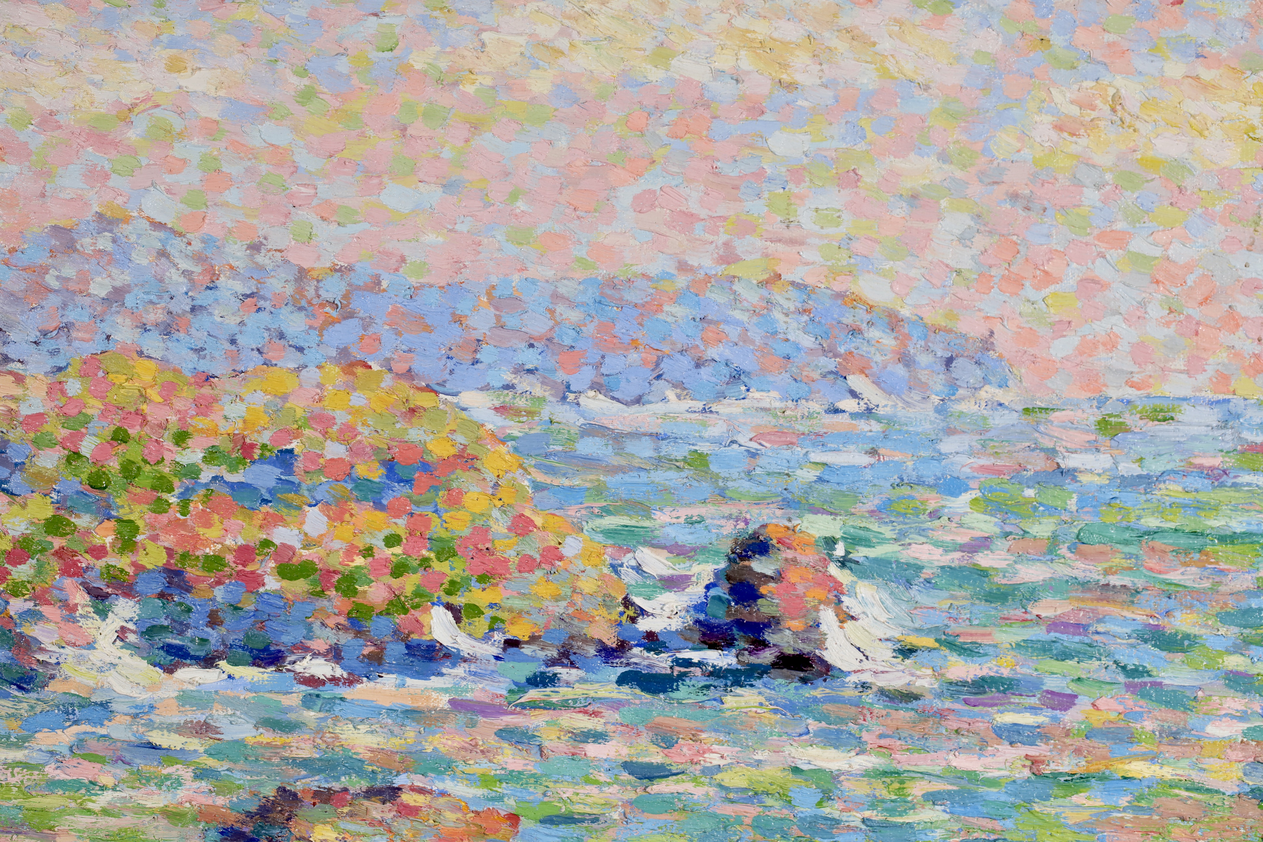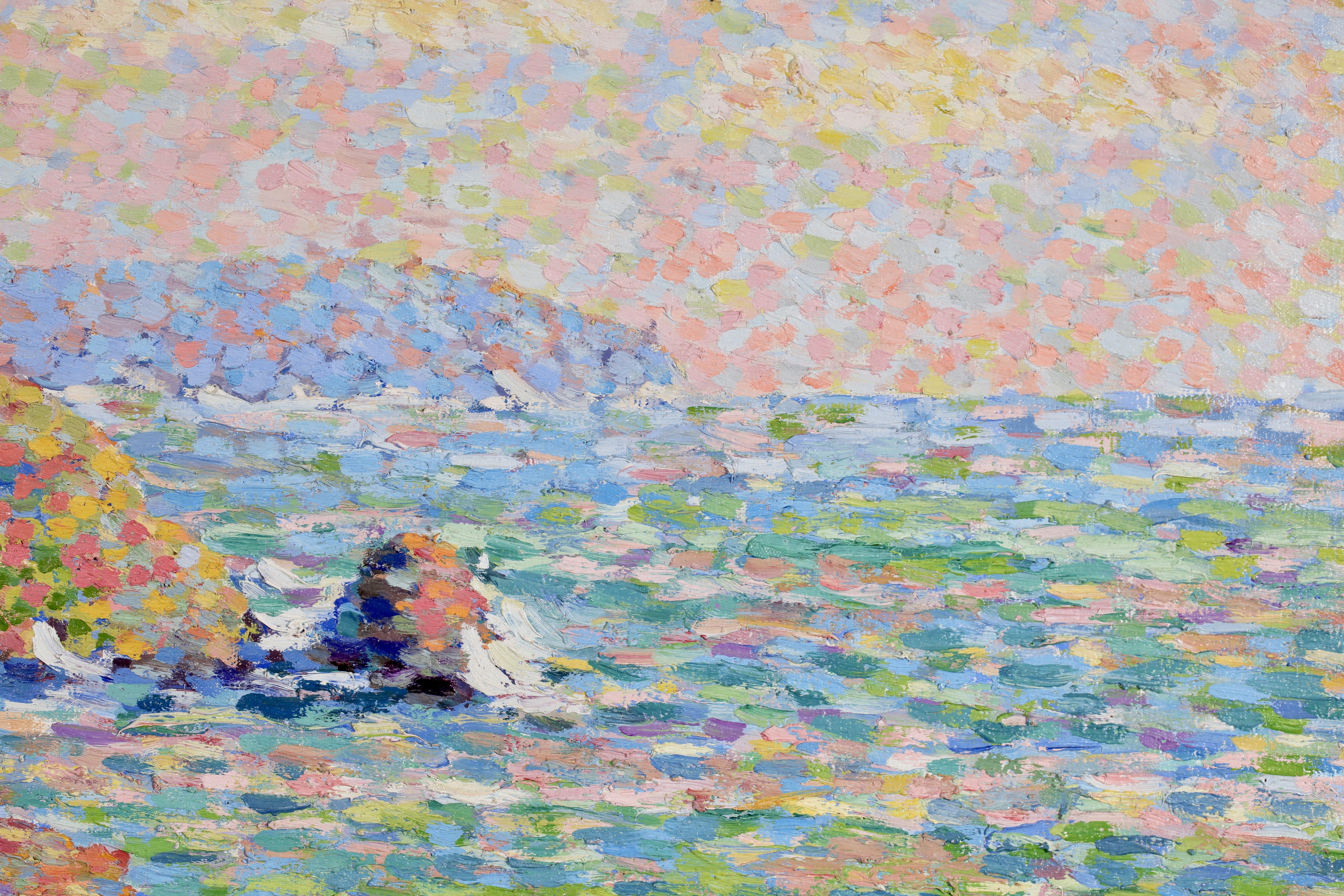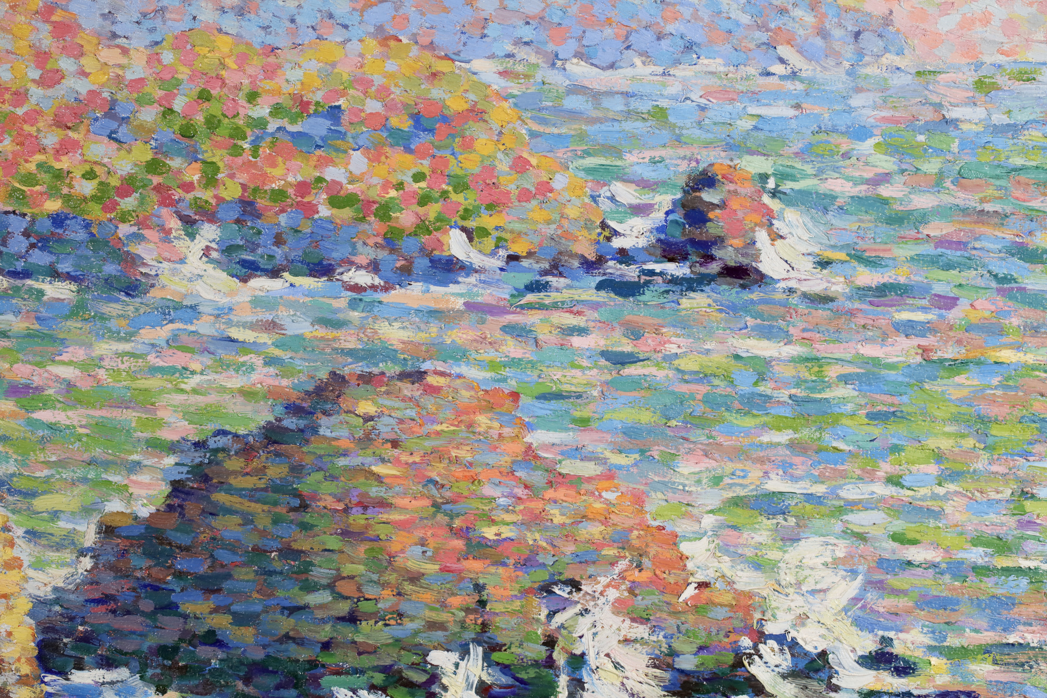 Water and light were important elements for the luminist painters and Schlobach's interest in the early twentieth century may well have been stimulated by Emile Claus' new movement 'Vie et Lumière' founded with Adriaan-Josef Heymanns in 1904. By this time the earlier rigours of Seurat's divisionism were giving way in Belgium to a more arbitrary use of pointilism which 'gave priority to painterly effects rather than theoretical principals as was generally true of the Belgian approach to luminism' (Belgian Painting, Exhib. Cat. Whitford & Hughes, London 1990).