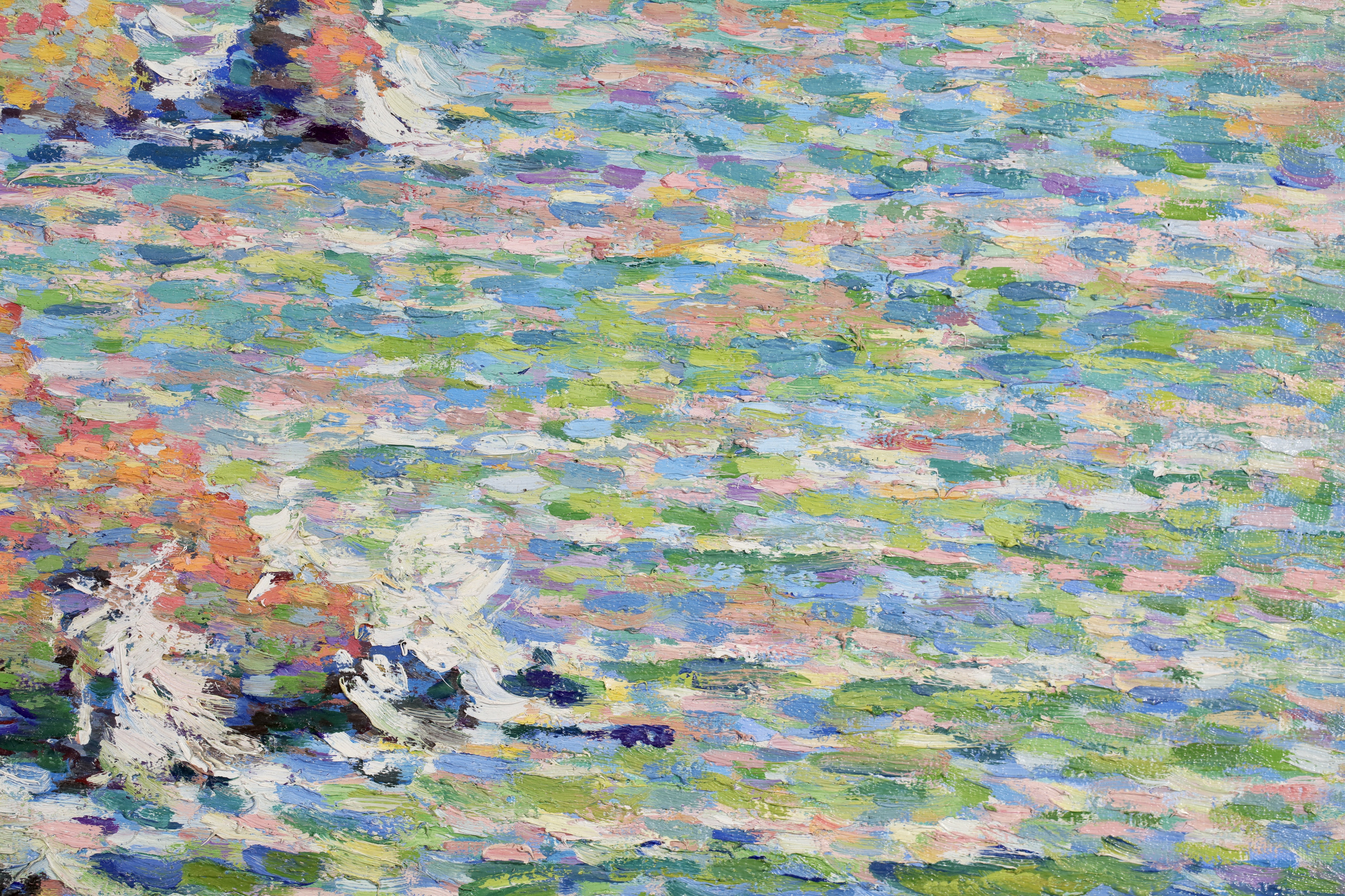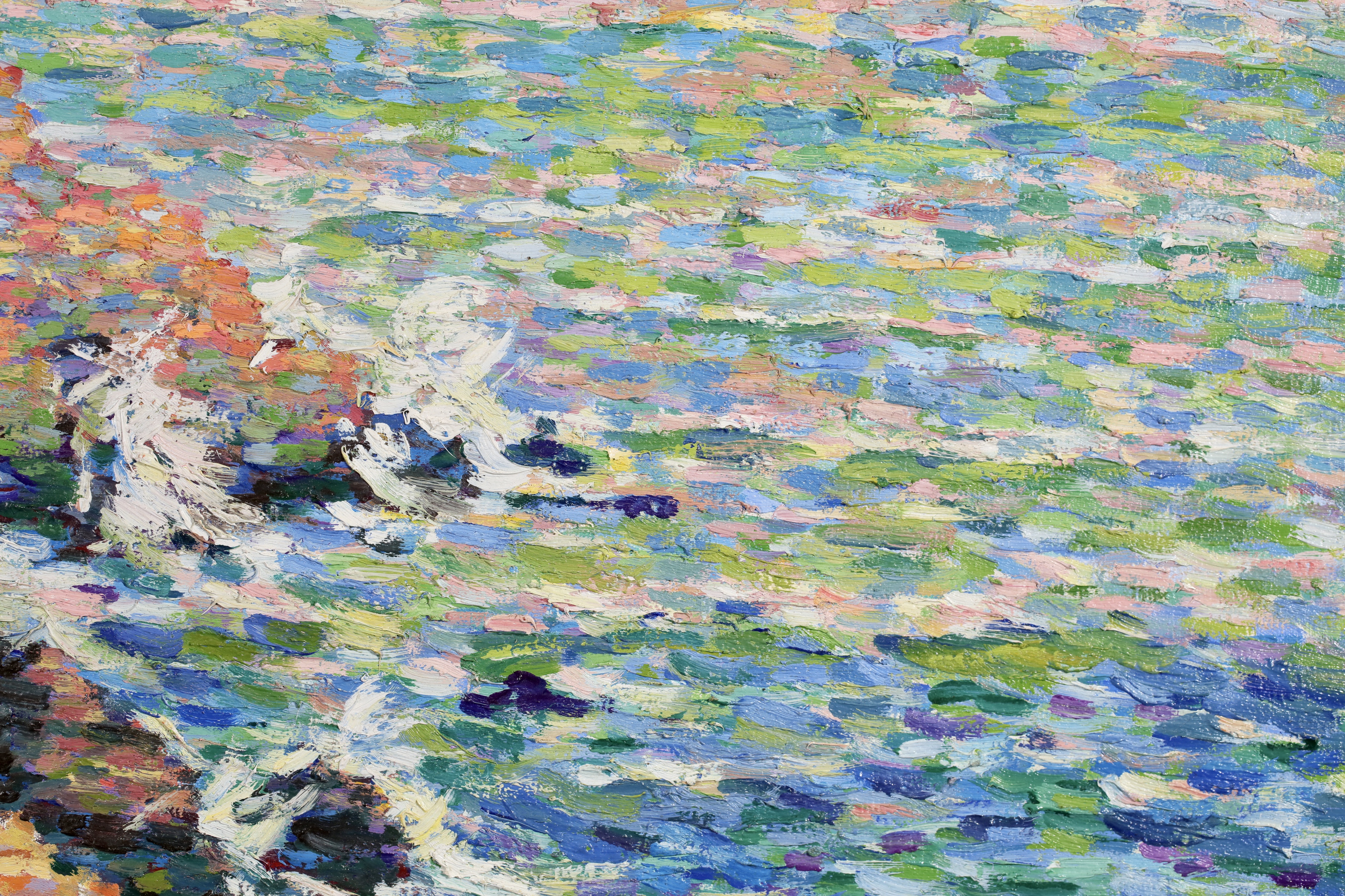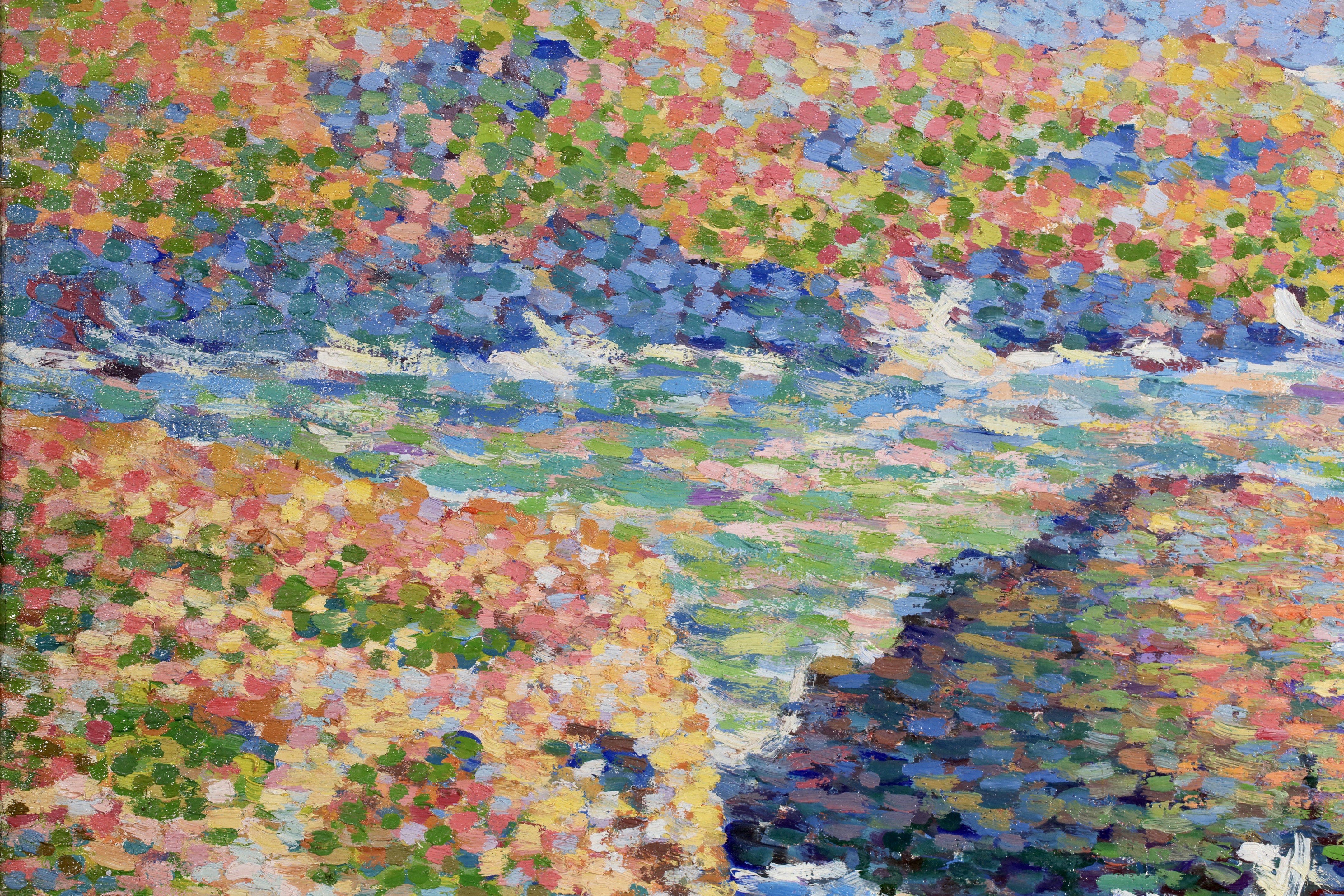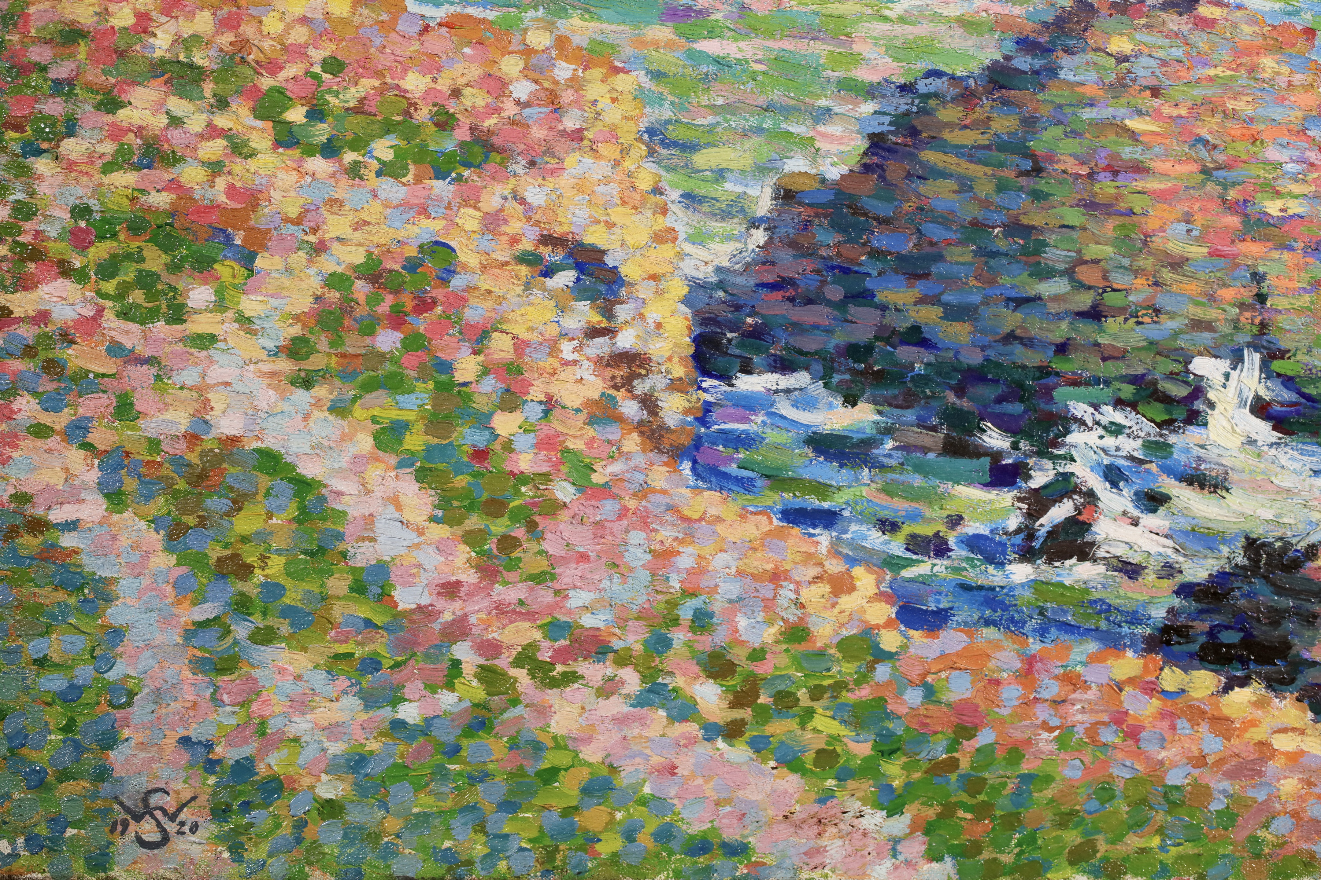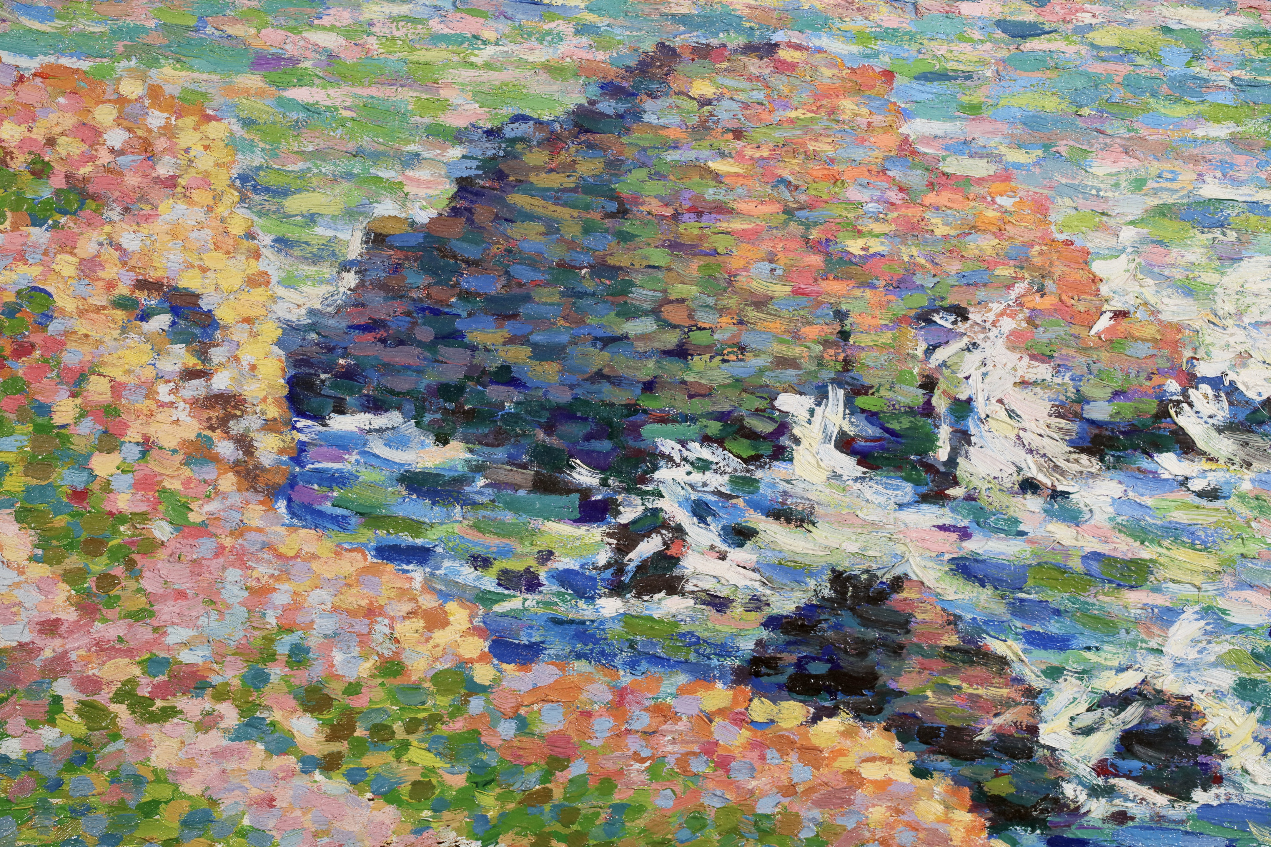 Water and light were important elements for the luminist painters and Schlobach's interest in the early twentieth century may well have been stimulated by Emile Claus' new movement 'Vie et Lumière' founded with Adriaan-Josef Heymanns in 1904. By this time the earlier rigours of Seurat's divisionism were giving way in Belgium to a more arbitrary use of pointilism which 'gave priority to painterly effects rather than theoretical principals as was generally true of the Belgian approach to luminism' (Belgian Painting, Exhib. Cat. Whitford & Hughes, London 1990).