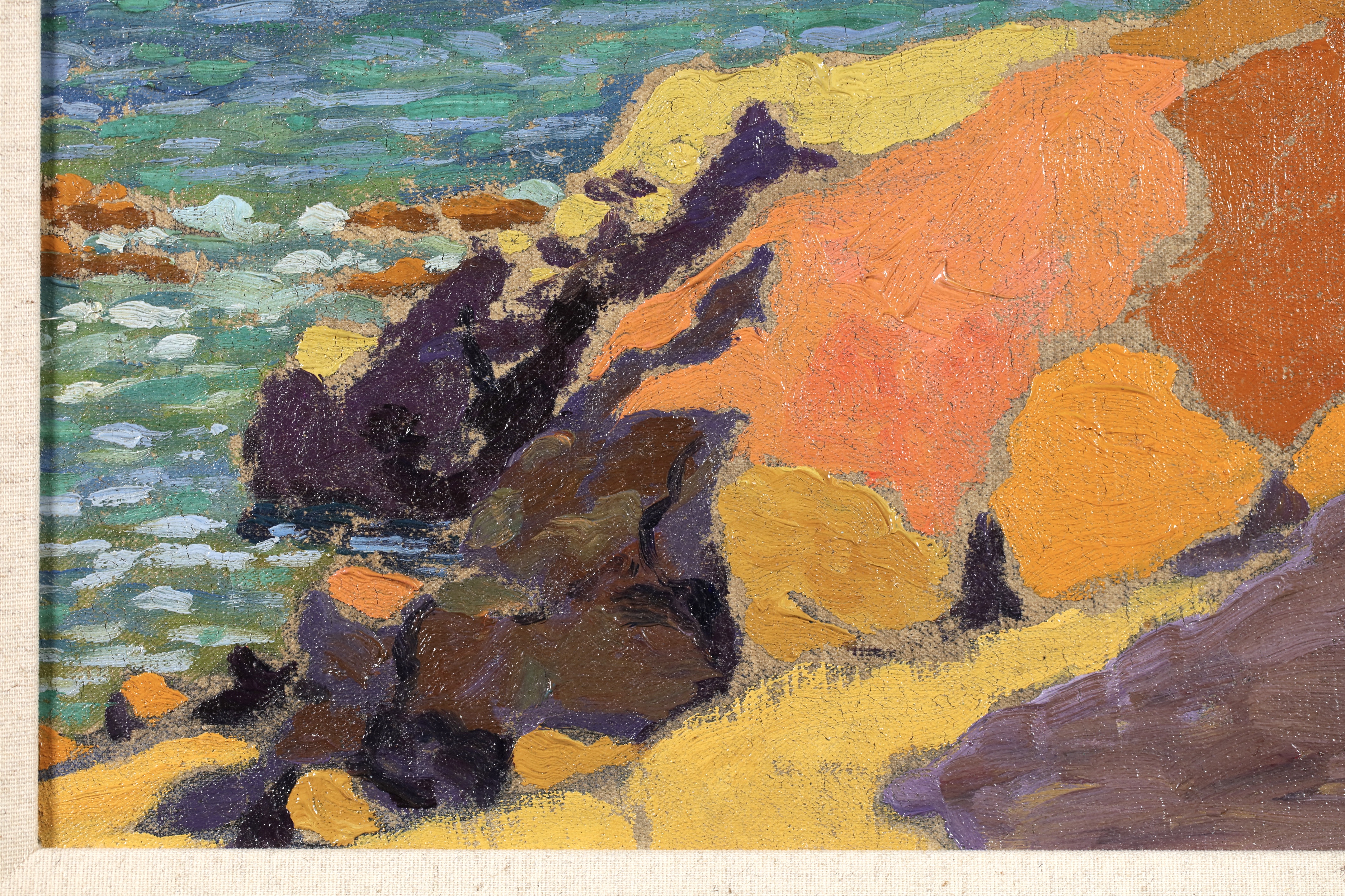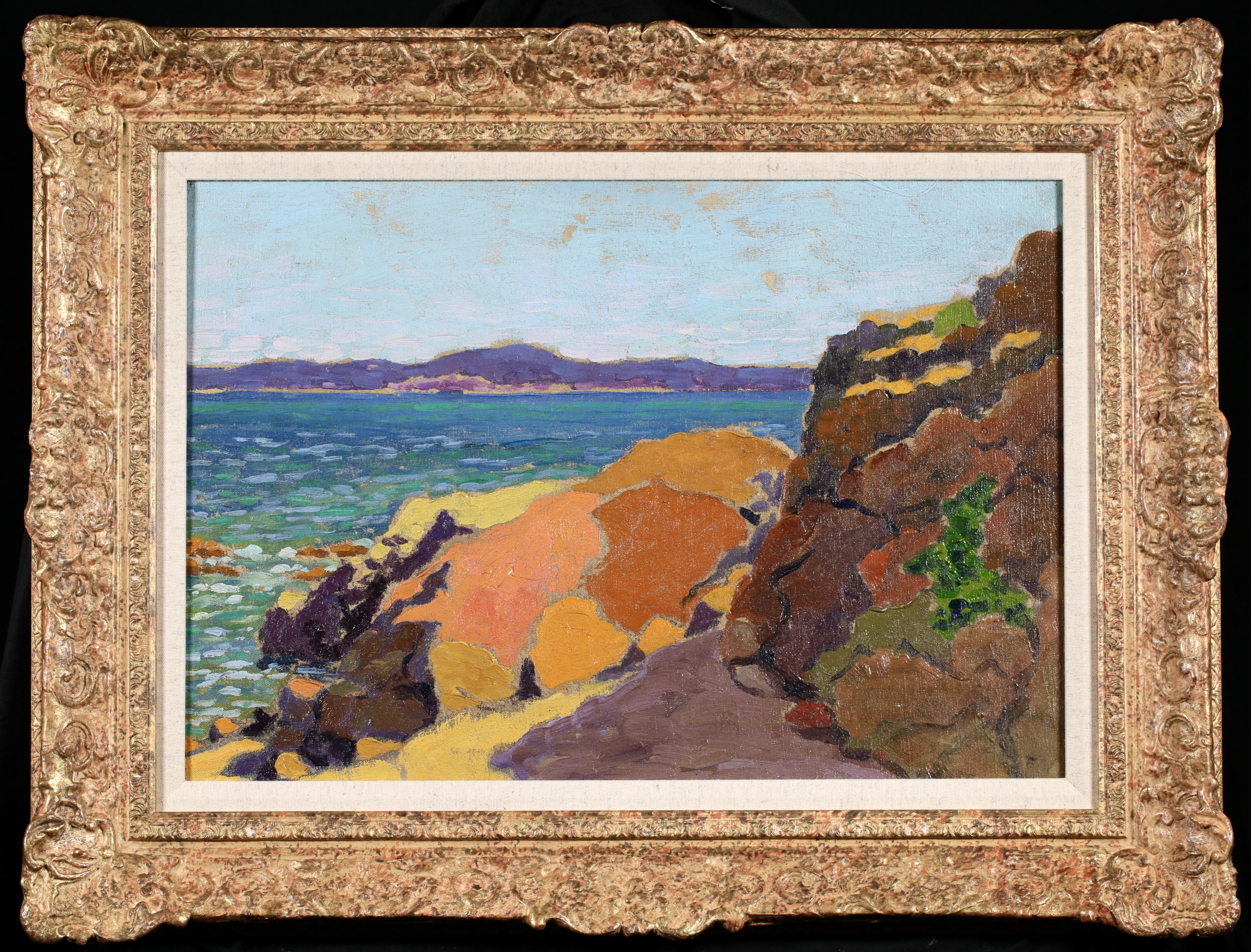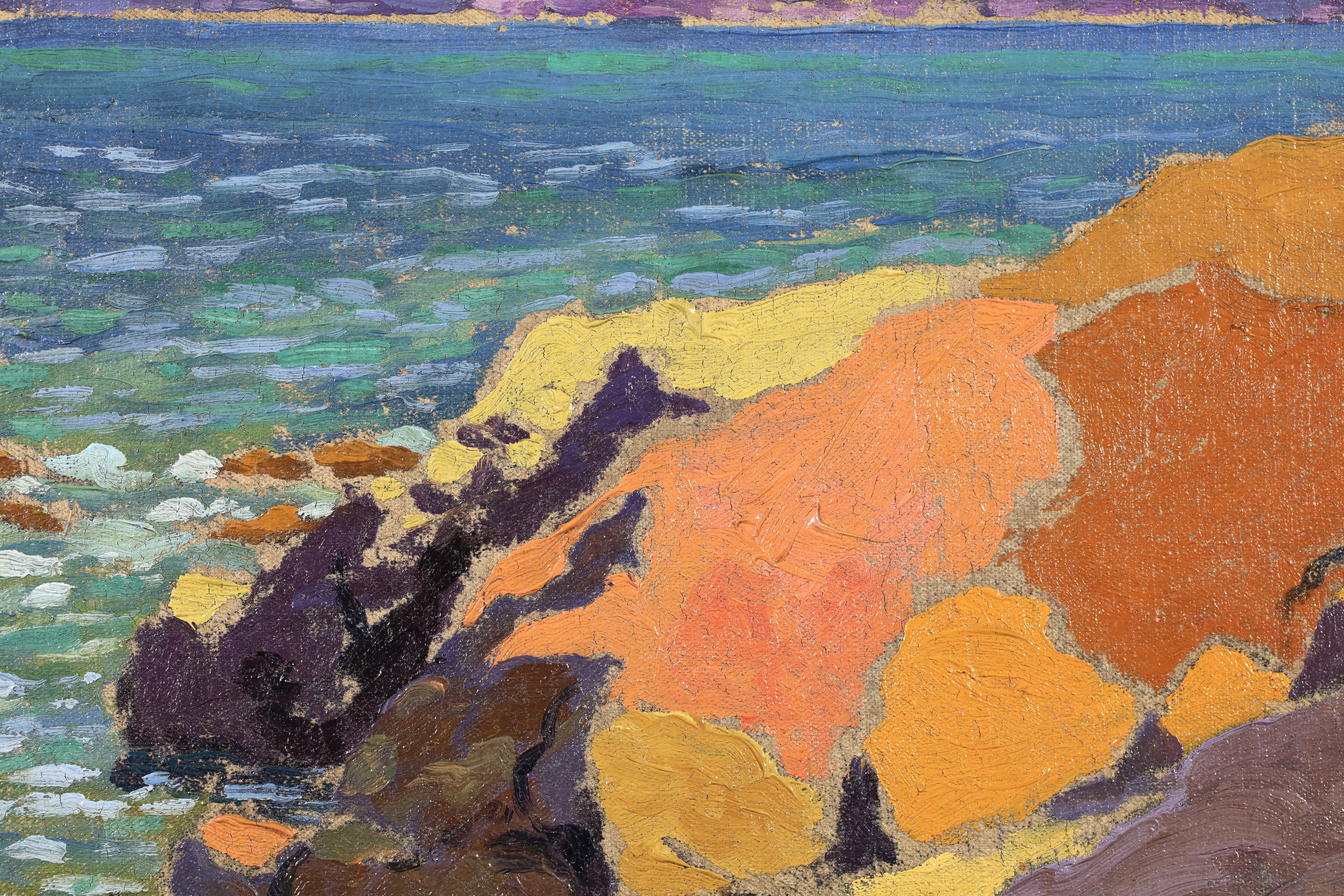 Some of its key members met at the Académie Julian in Paris, which offered a liberal alternative to the official École des Beaux Arts. Founded in secret by Paul Sérusier, the group included Pierre Bonnard, Edouard Vuillard and Maurice Denis. Their bold simplified style was inspired by Paul Gauguin’s synthetism. Their unconventional outlook led them to experiment with painting on different supports (surfaces used for painting or drawing on) including cardboard and velvet, and to create set designs for symbolist theatre (See symbolism).