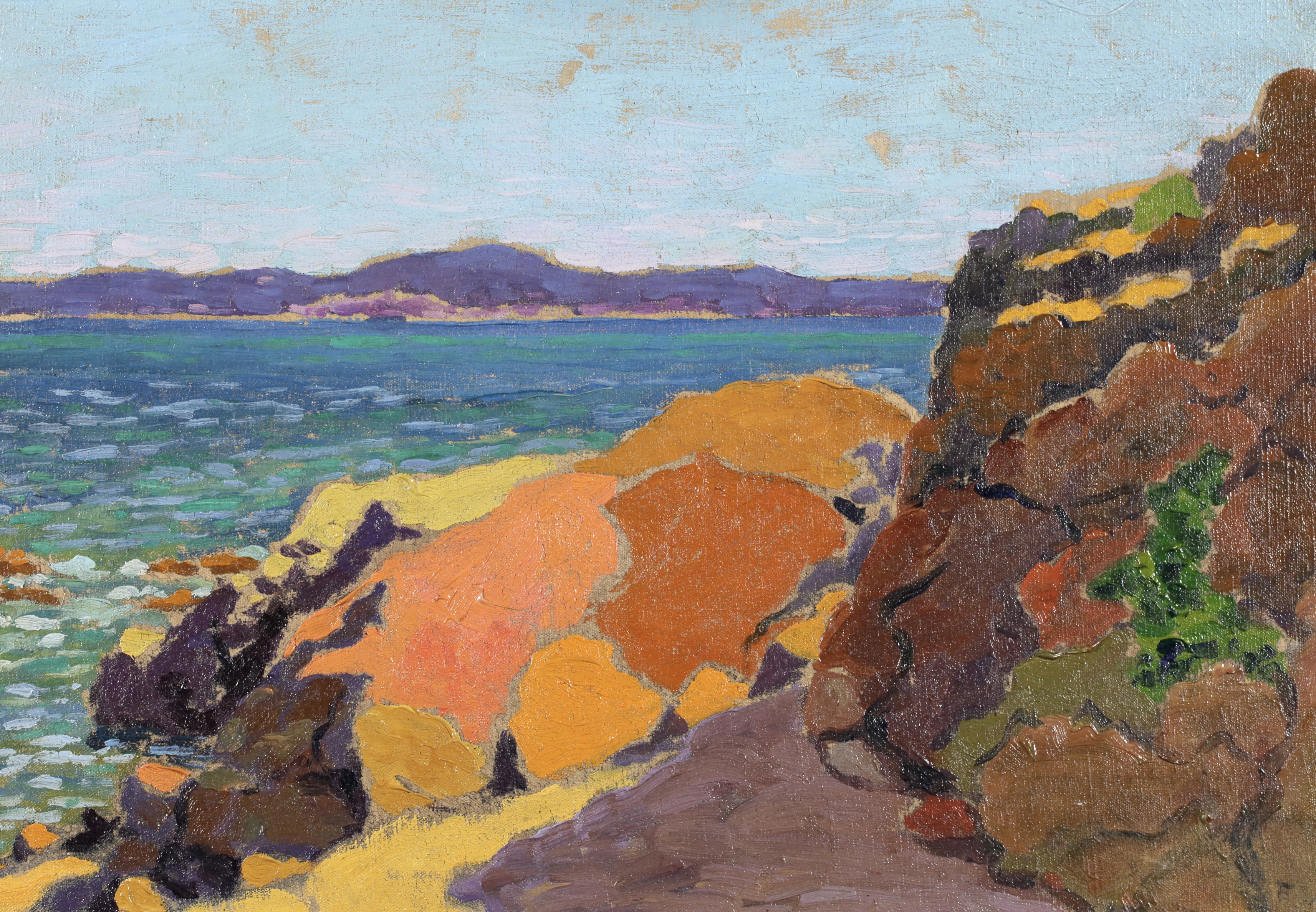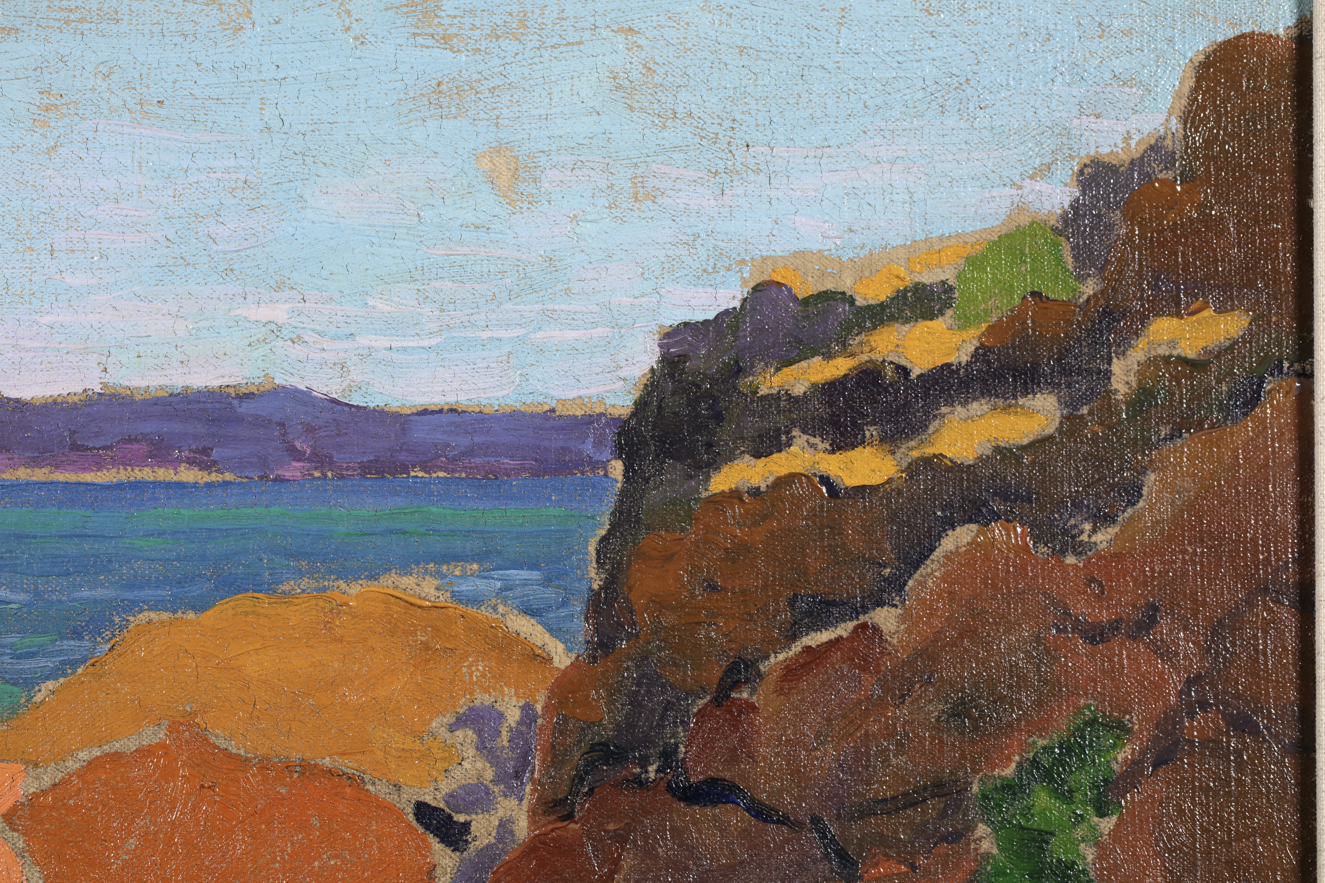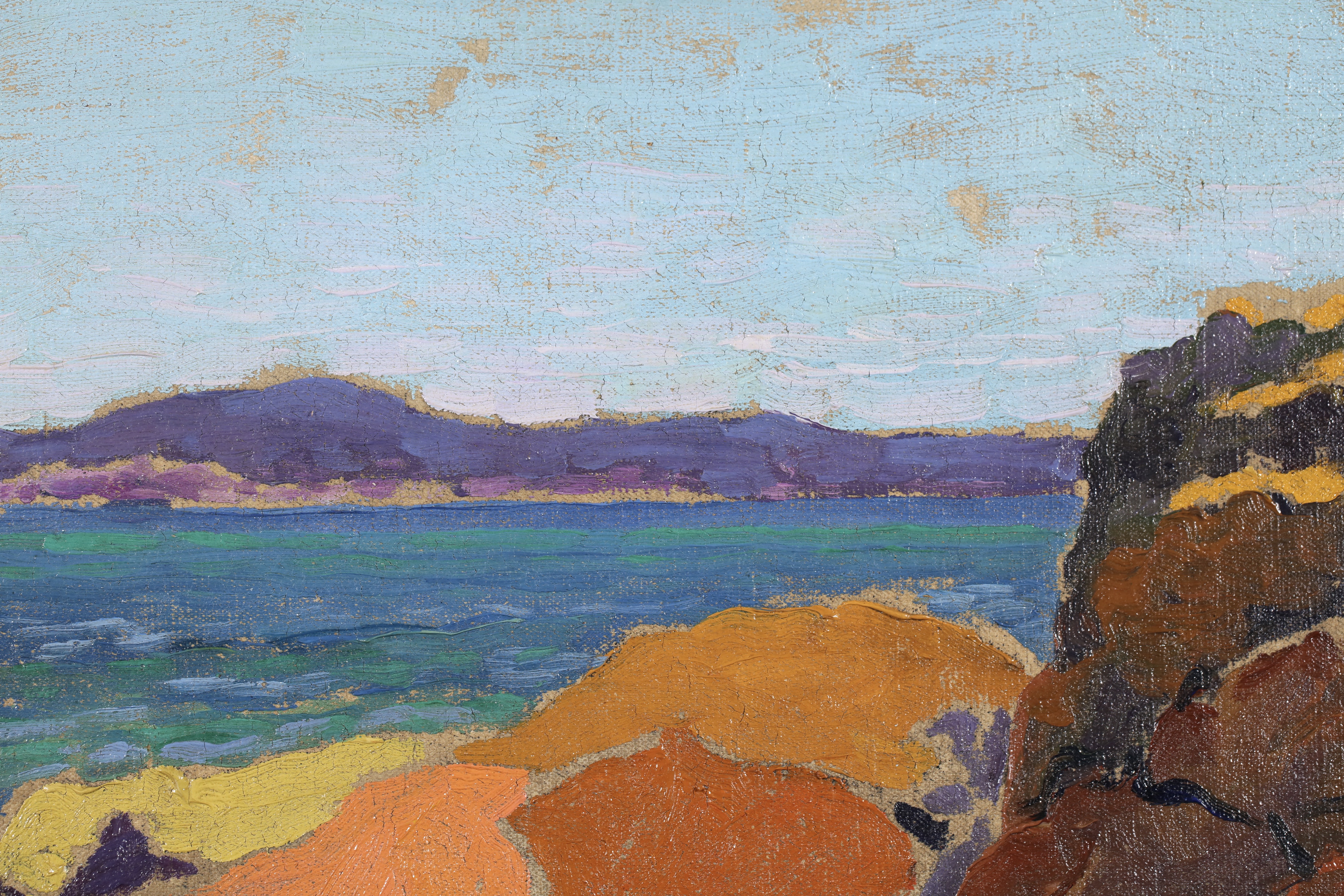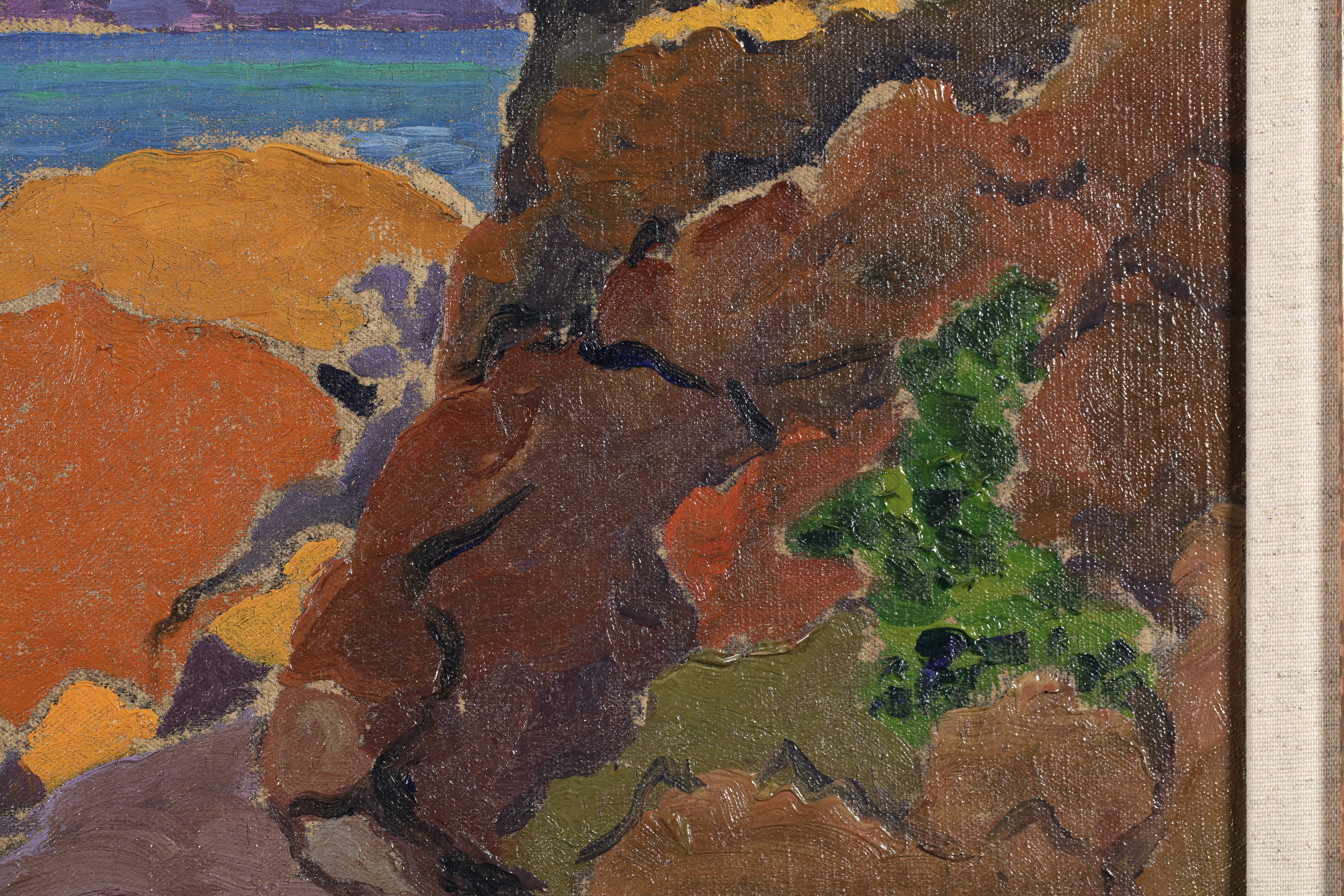 Some of its key members met at the Académie Julian in Paris, which offered a liberal alternative to the official École des Beaux Arts. Founded in secret by Paul Sérusier, the group included Pierre Bonnard, Edouard Vuillard and Maurice Denis. Their bold simplified style was inspired by Paul Gauguin’s synthetism. Their unconventional outlook led them to experiment with painting on different supports (surfaces used for painting or drawing on) including cardboard and velvet, and to create set designs for symbolist theatre (See symbolism).