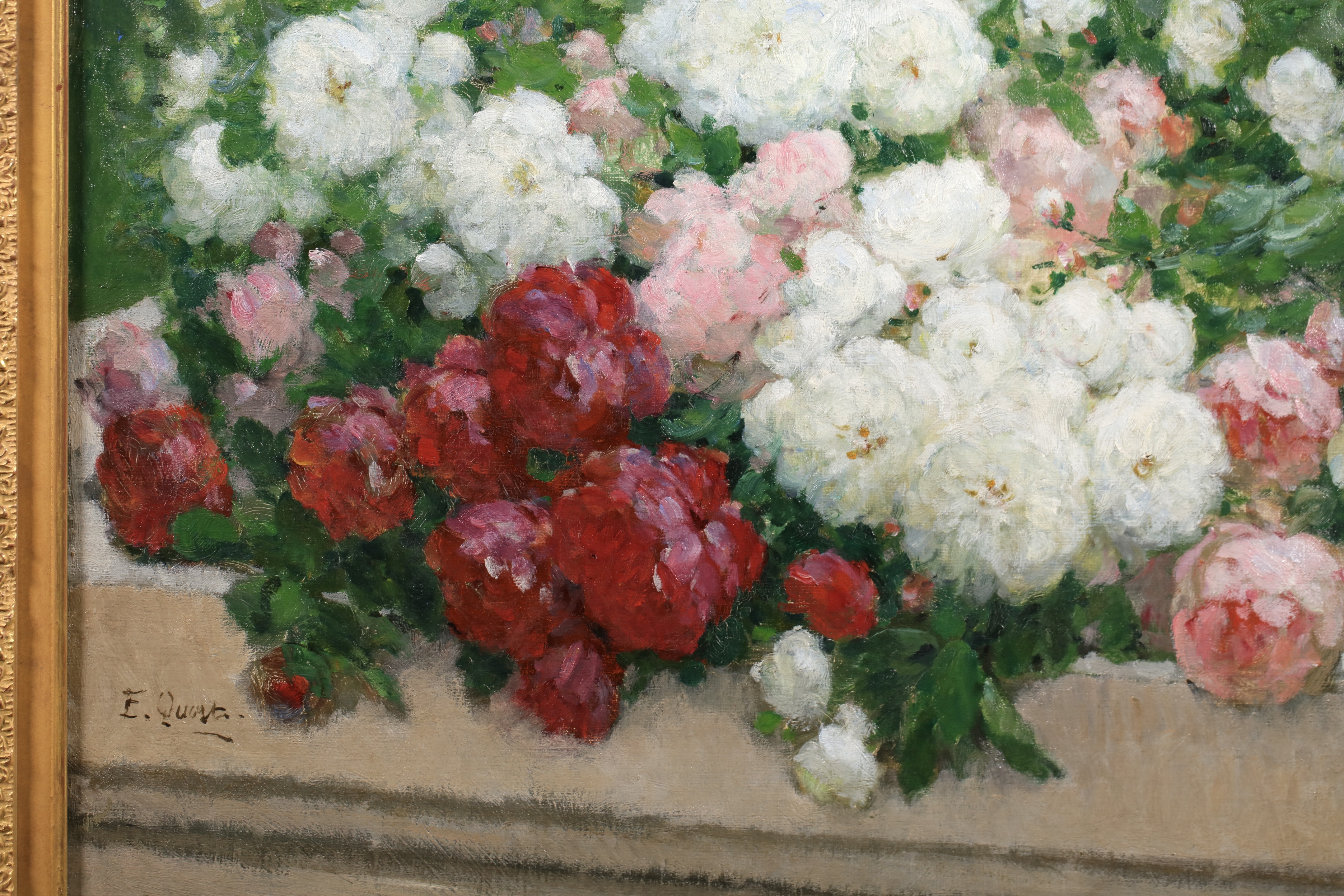 Vincent Van Gogh spoke in glowing terms of his "magnificent roses" and affectionately called him "The Hollyhock", in reference to his specialty, the floral painting. However, posterity has not retained his name and the artist, praised during his lifetime and medalist on several occasions at the Salon of French Artists and on the occasion of the Paris Universal Exhibition of 1889, was to fall into the oblivion, absent both on the art market and within museums. Until the 1970s, the family kept the entire workshop of their ancestor, not allowing Ernest Quost to be exposed and revealed to as many people as possible.