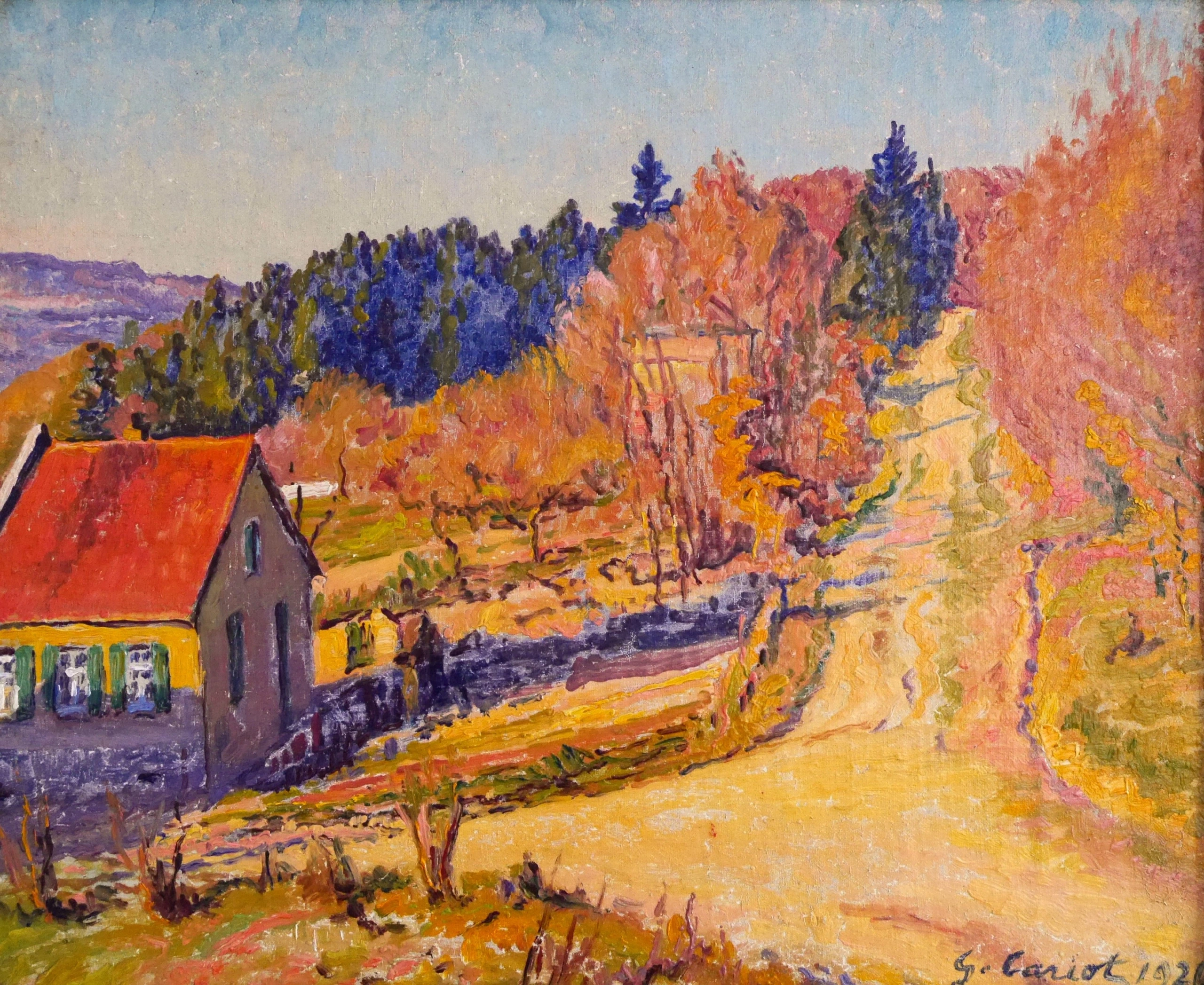 Gustave Cariot was initially attracted to the tonalities of pointillism but his enthusiasm for the technique was short-lived. Instead, he developed a highly personal and unusual technique that imparted a powerful luminosity to his work as a whole. He was however prepared to abandon this technique on occasion in the interests of painting delicate landscapes. He painted a large number of landscapes, many of them featuring the Rhineland. His last 'suite' of paintings was devoted to the River Seine in all its different seasonal aspects.