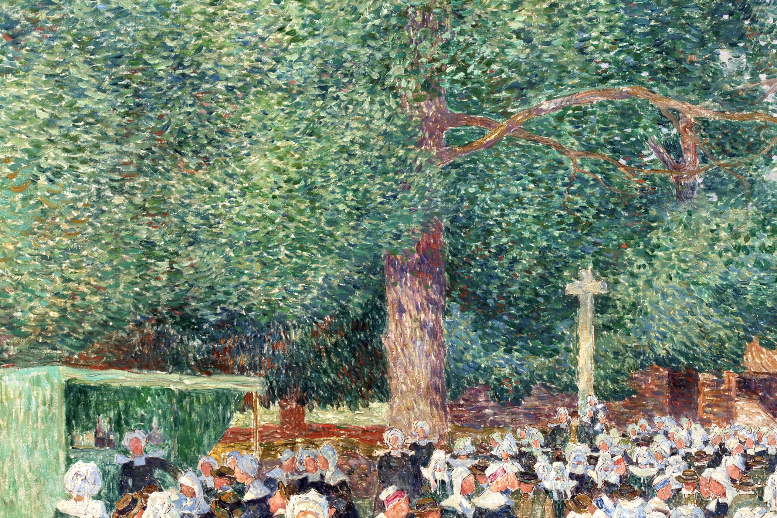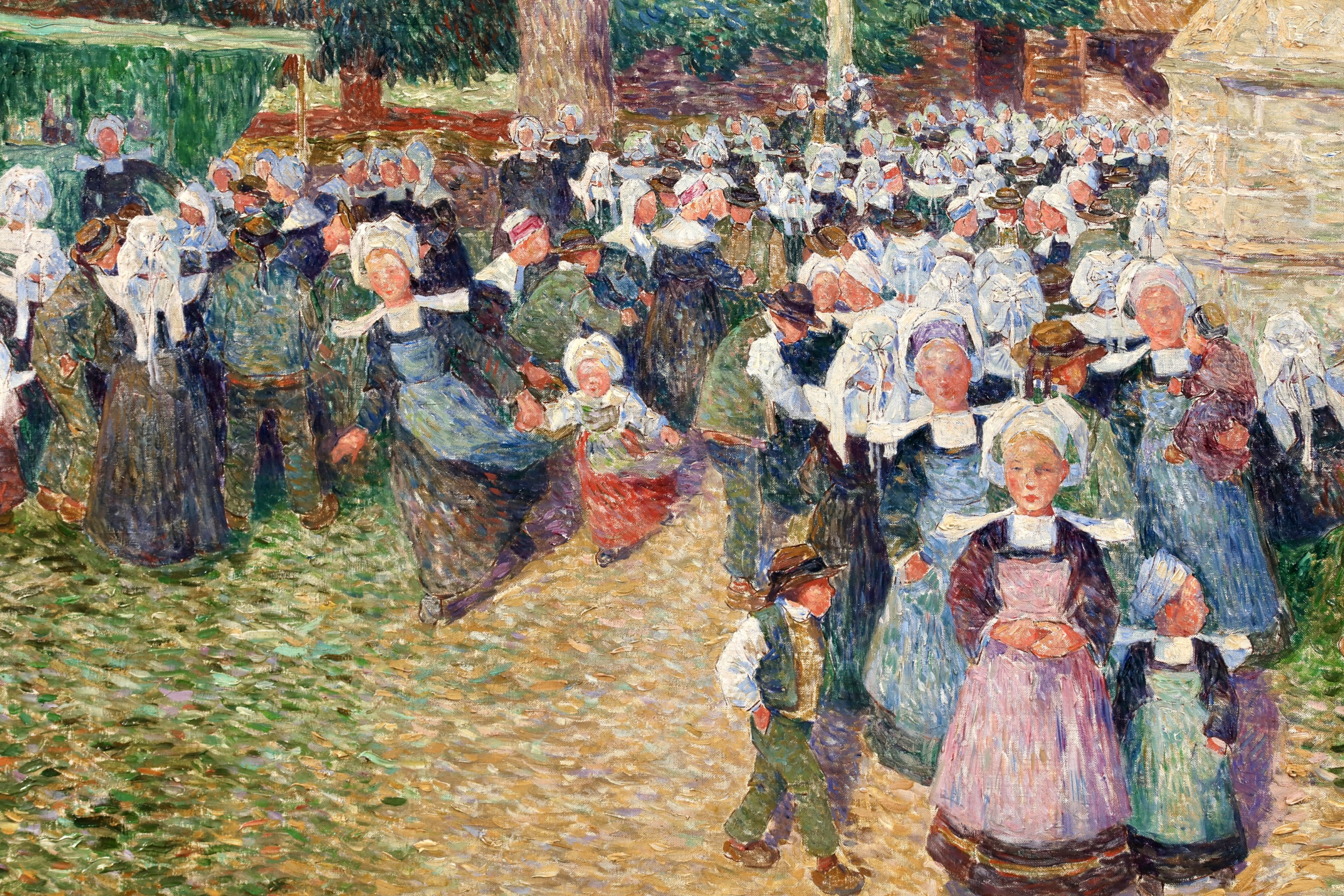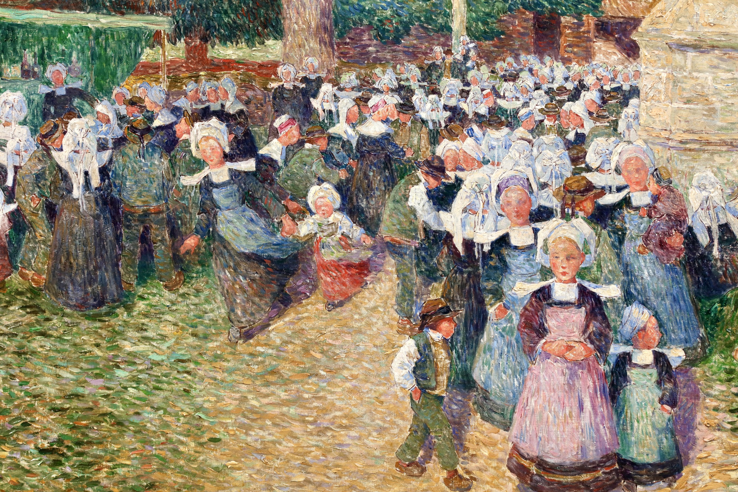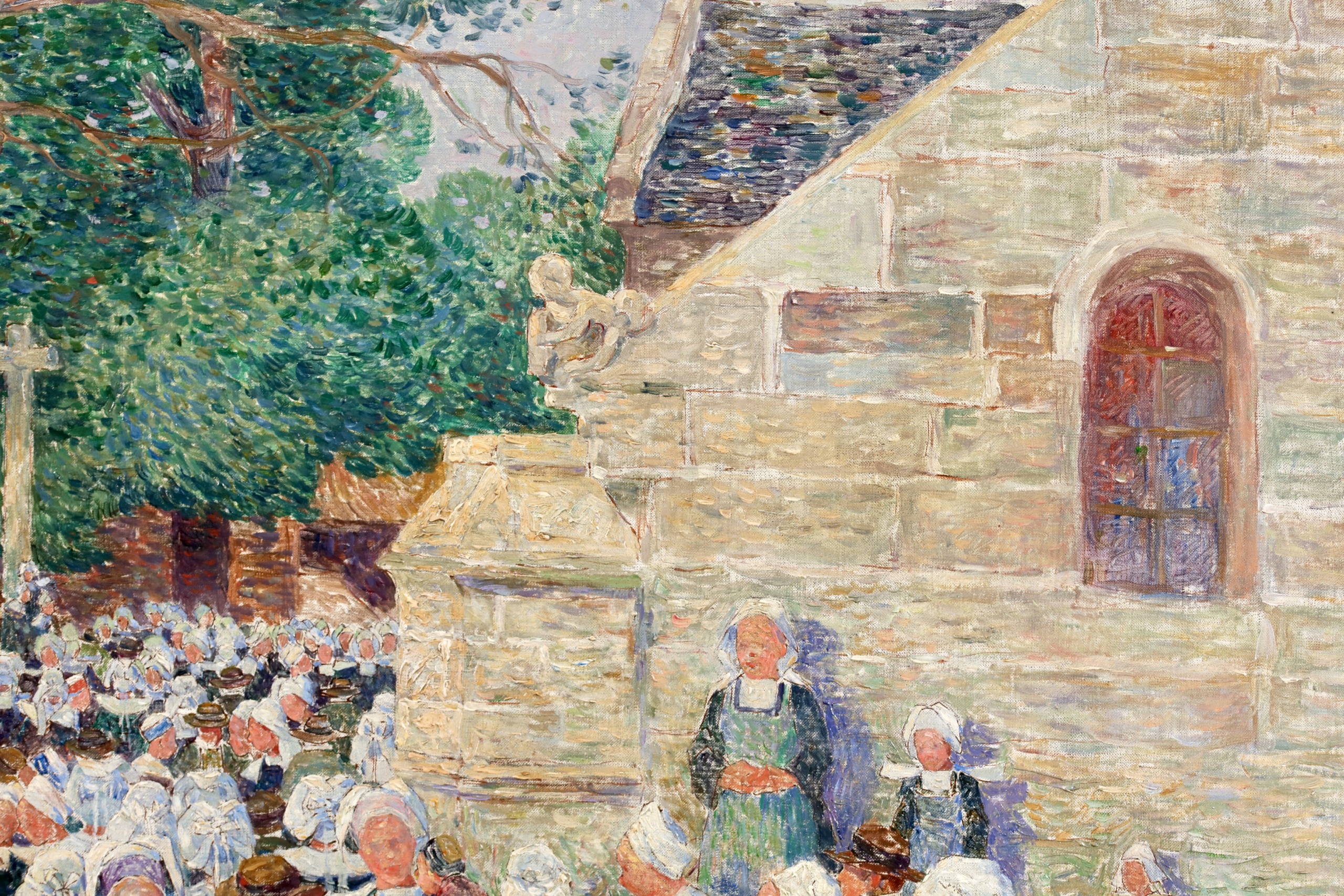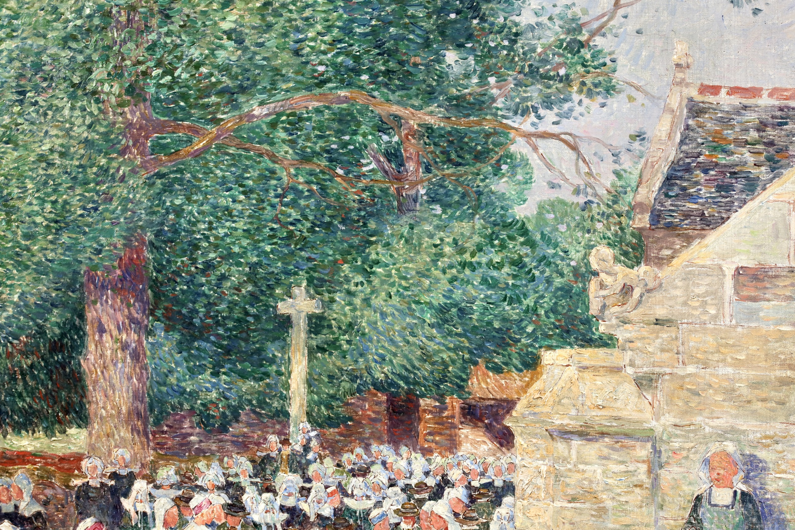 His technique involved applying colour in separate tones and brushstrokes to achieve certain effects of light, combined with a more structured approach towards objects that gives prominence to detail, as in Garden in Flower in Morbihan around 1910, as well as a certain classical tendency, as in The Town of Batz.
