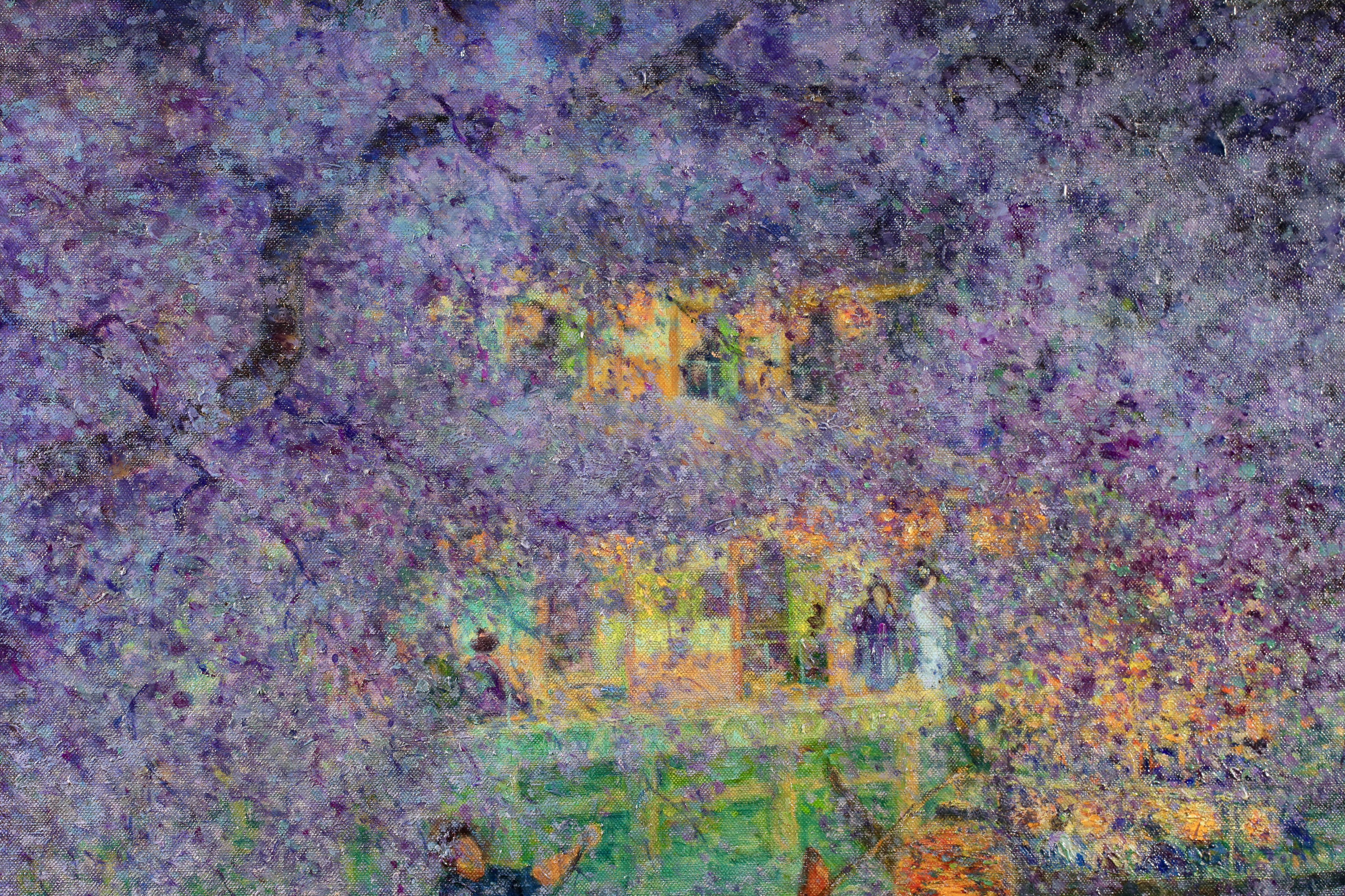 Specializing in winter landscapes and views of Japan, he obtained a certain level of success in his lifetime with his beautiful fields of flowering irises, his walls of hanging wisteria on water banks, and his views of Fujiyama.