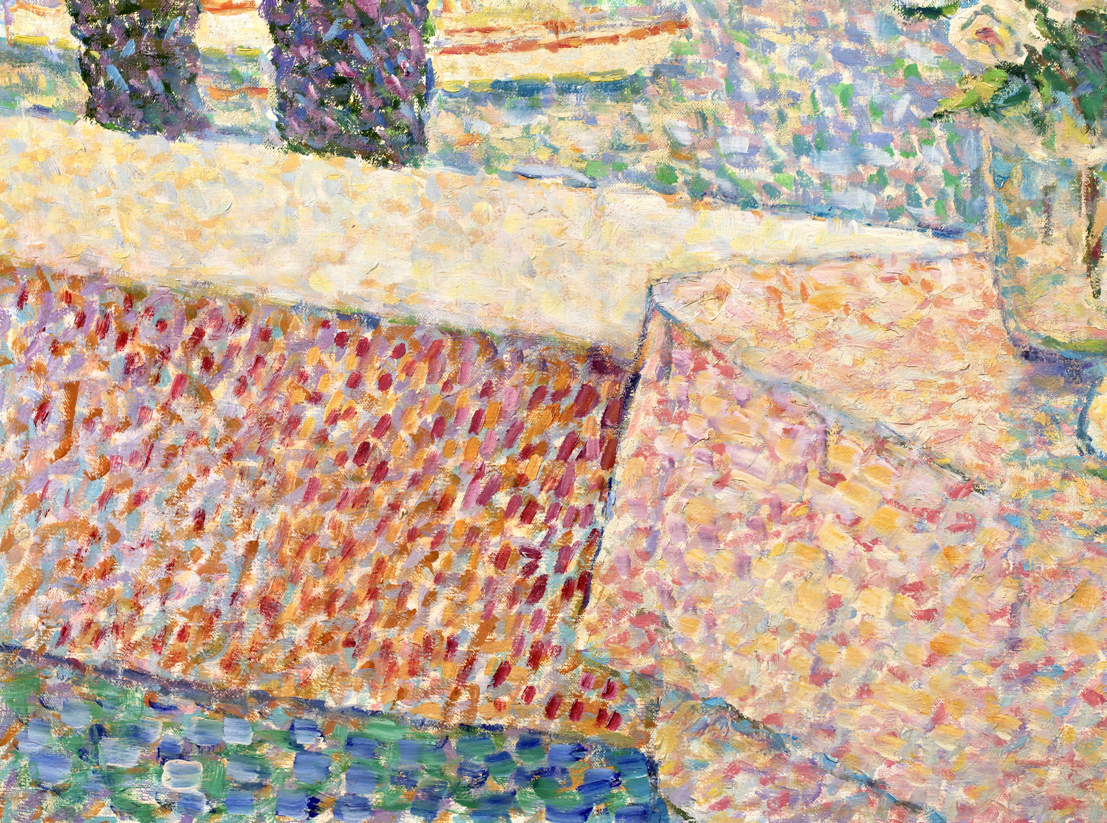 Jeanne Selmersheim-Desgranges (1877–1958) was a French neo-impressionist painter who used the art technique of pointillism with her main themes of flowers and gardens. Her painting, Garden at La Lune, Saint-Tropez (1909), shows her signature use of “high-key colors and block-like strokes.”