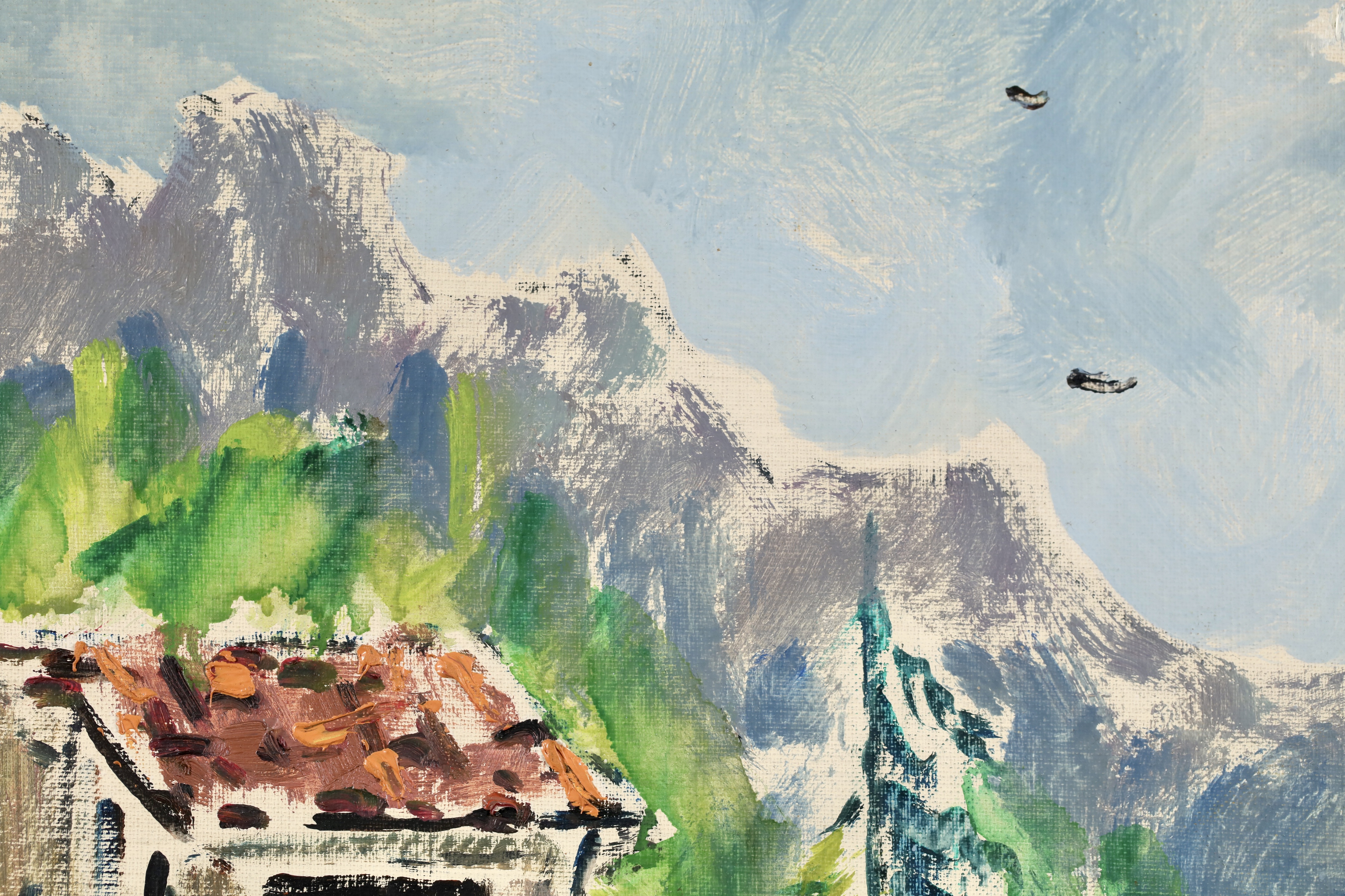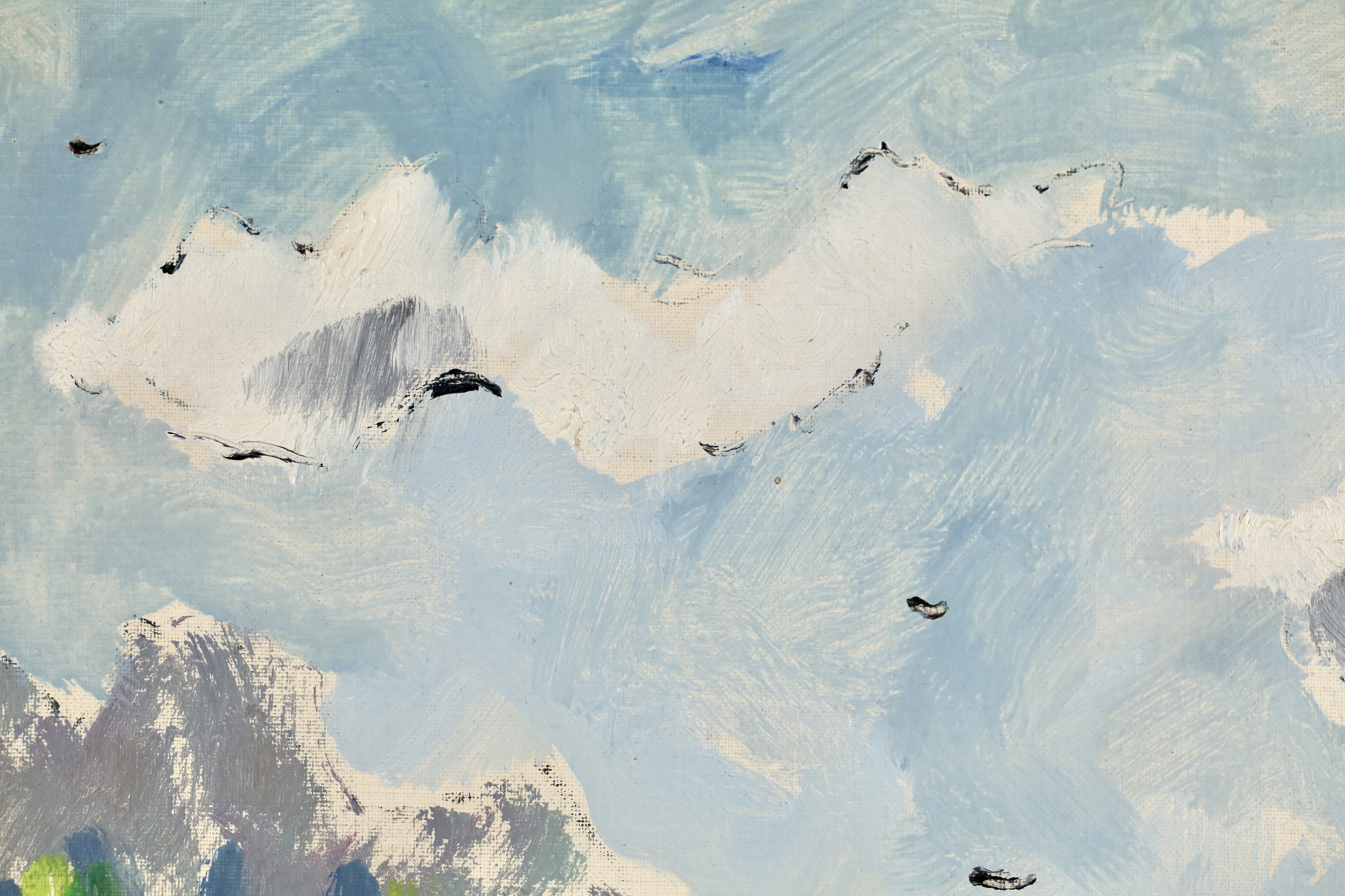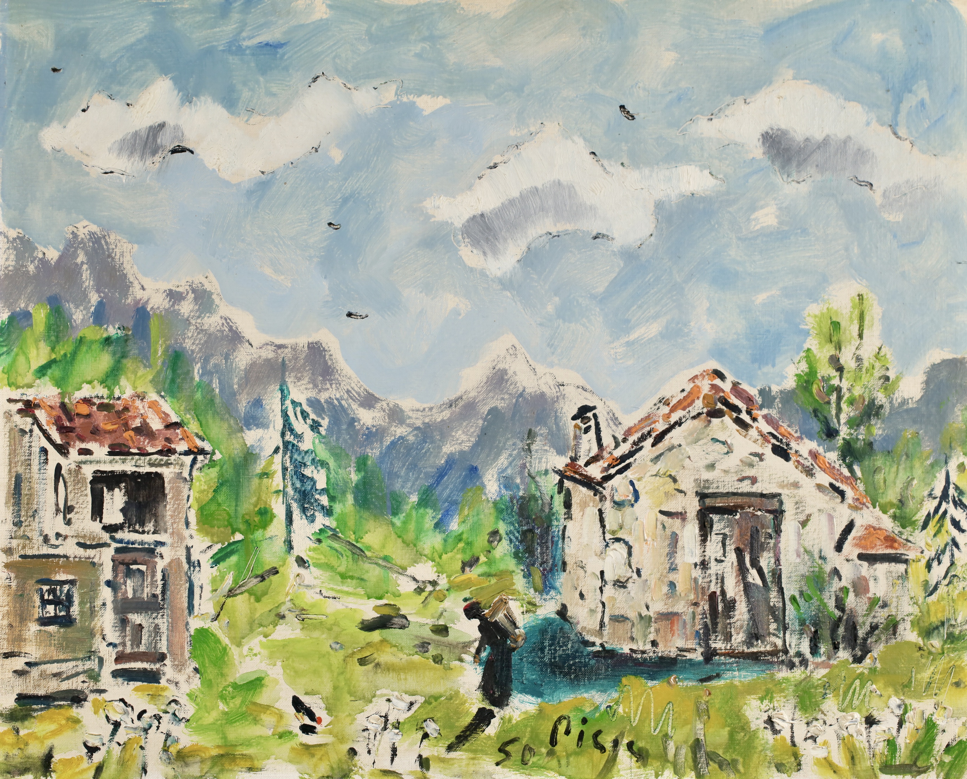 Literature: This work would have been painted in the lower Italian Alps near to where the painter was resided from 1949 until his death at the Villa Fiorita - a nursing home for patients with nervous diseases located in Brugherio. The work is painted on a canvas board with the sellers mark in Lecco which was a town a shirt drive north of Brugherio at the entrance to the Italian Alps its likely De Pisis acquired the board on his way to the mountains to paint.