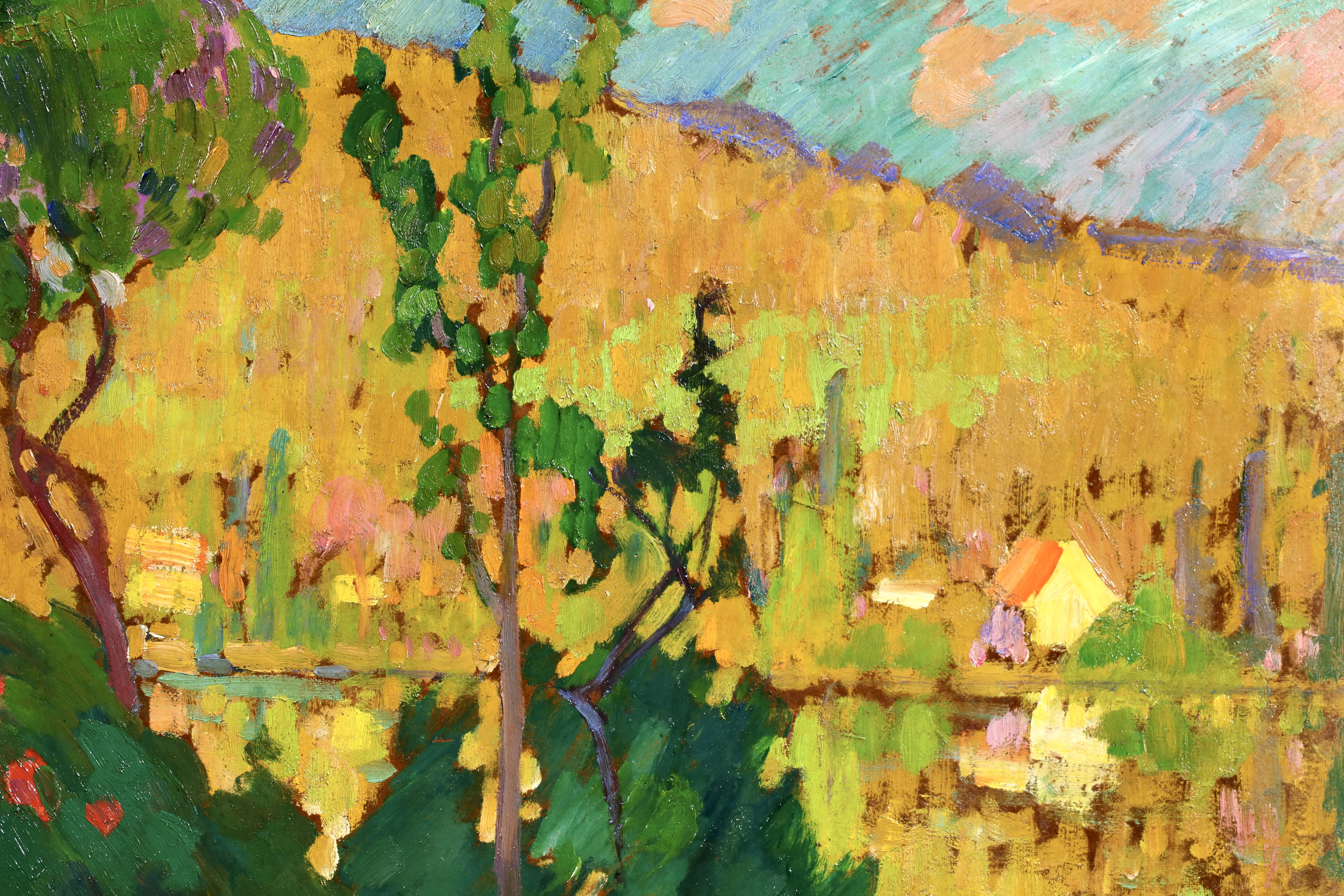 Along with Dumont and Guilbert, Robert Pinchon is one of the Rouen artists who understood Monet's teachings best. Monet himself noticed Pinchon's 'eye' when he met him for the first time. On a technical level, he used pure colours, just as they came out of the tube. His poetical art perfectly rendered not only the misty lights of the port of Rouen, but also scenes of daily life, whether of a young woman sitting in a garden or children playing with a ball. Noteworthy are: Embankment in Rouen; Rouen in the Snow; Banks of the Seine; Suspension Bridge at Elbeuf.