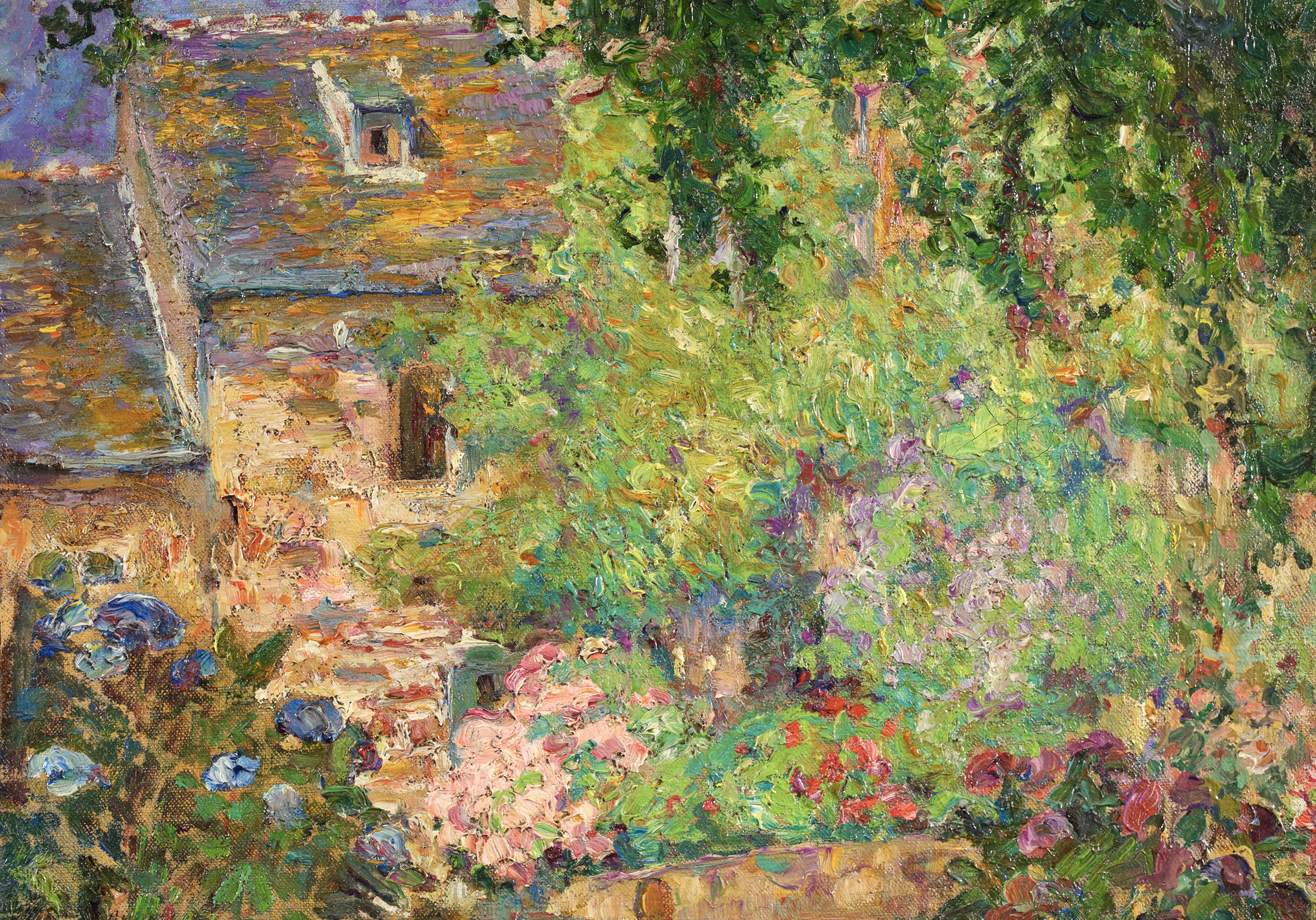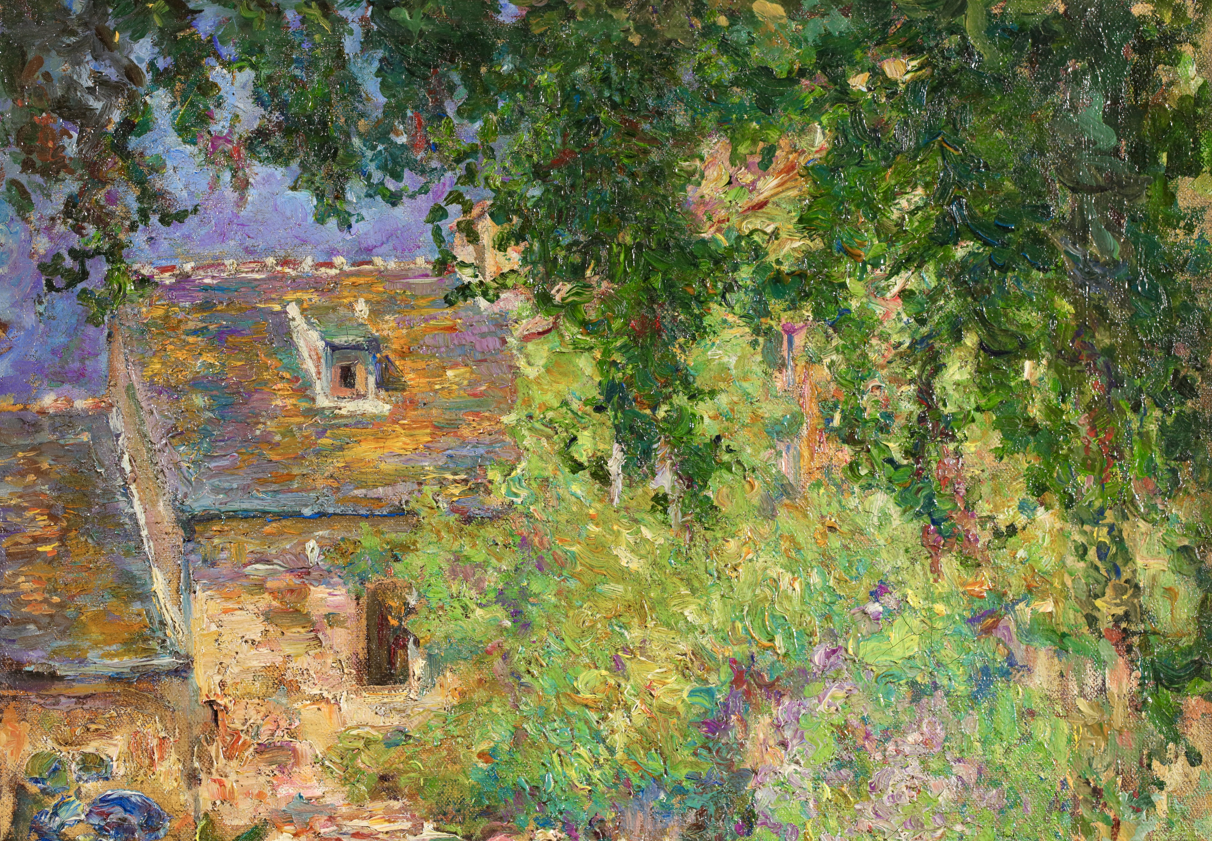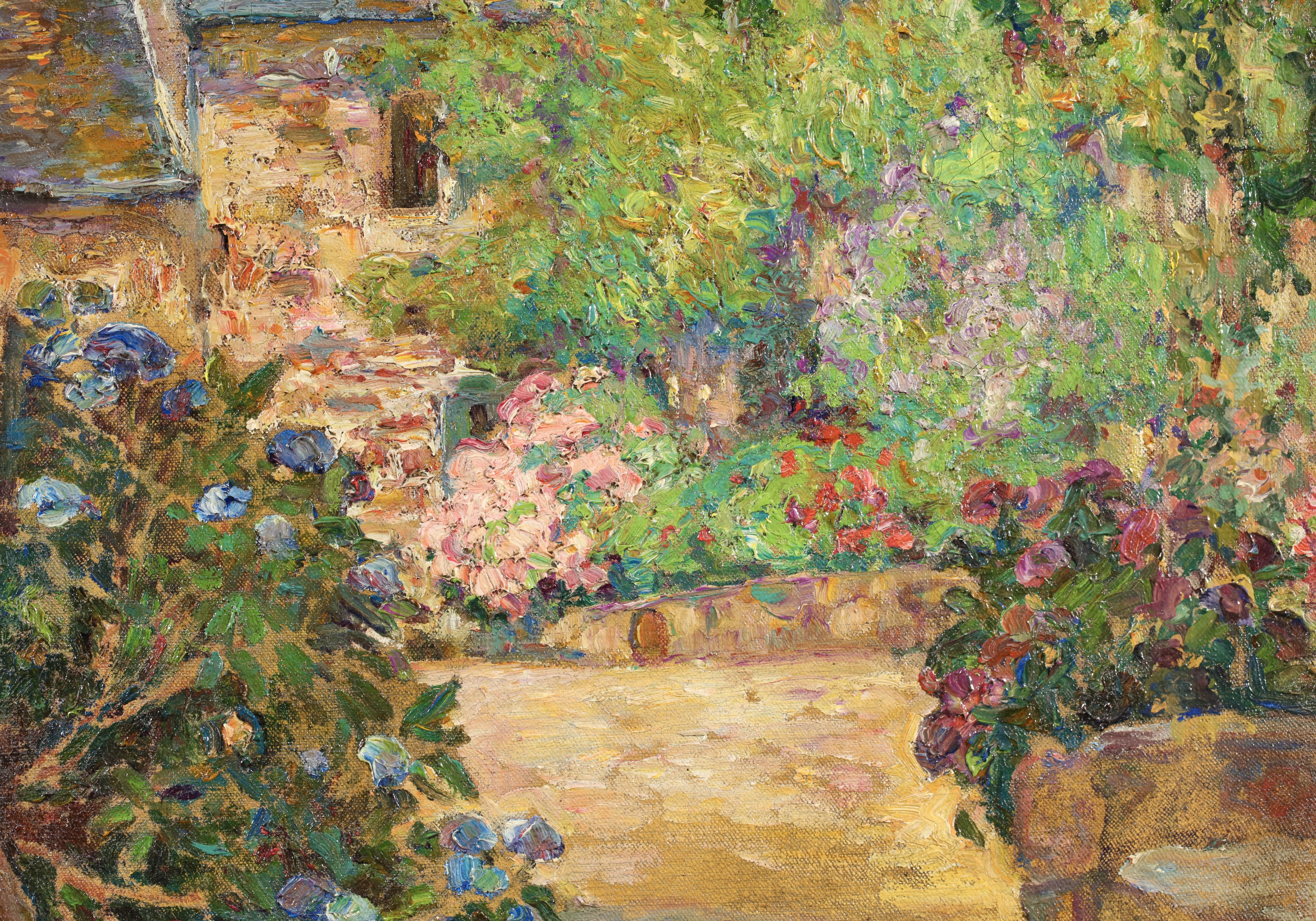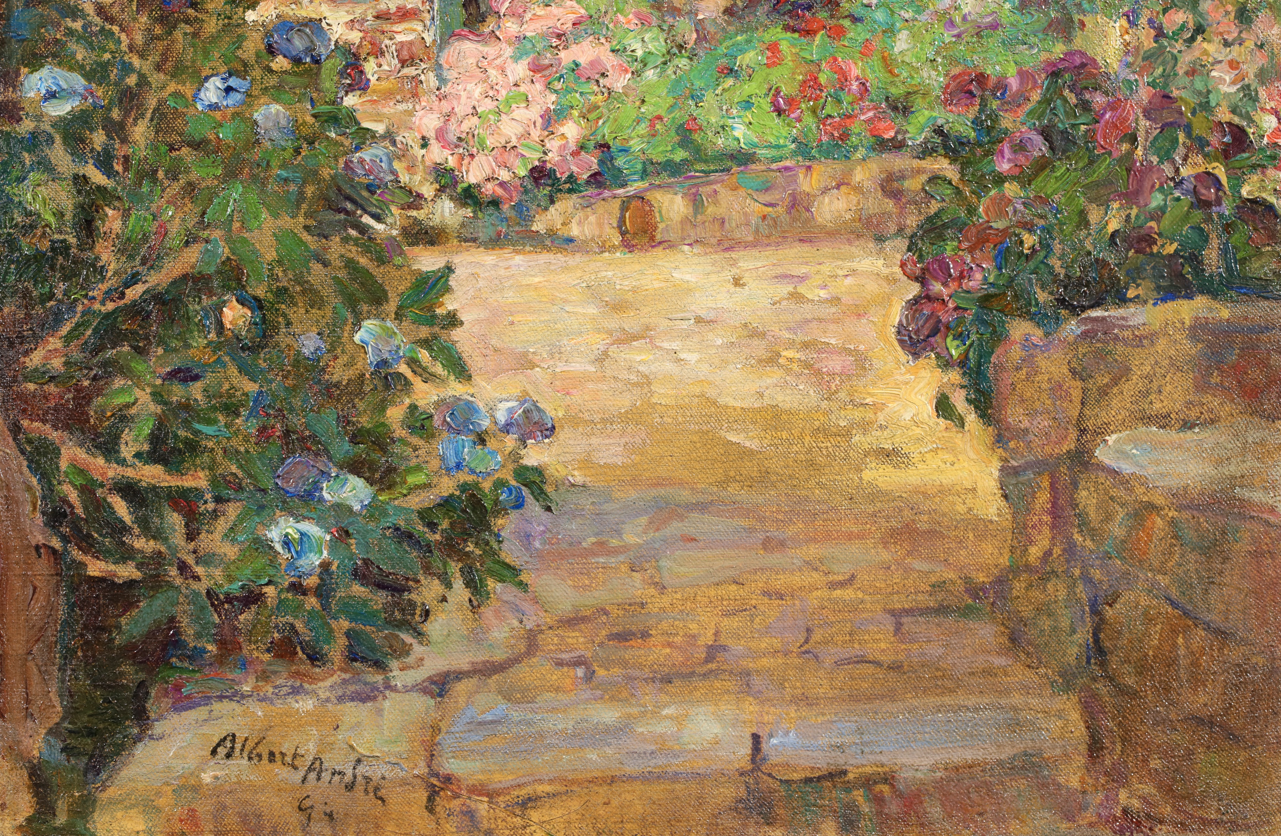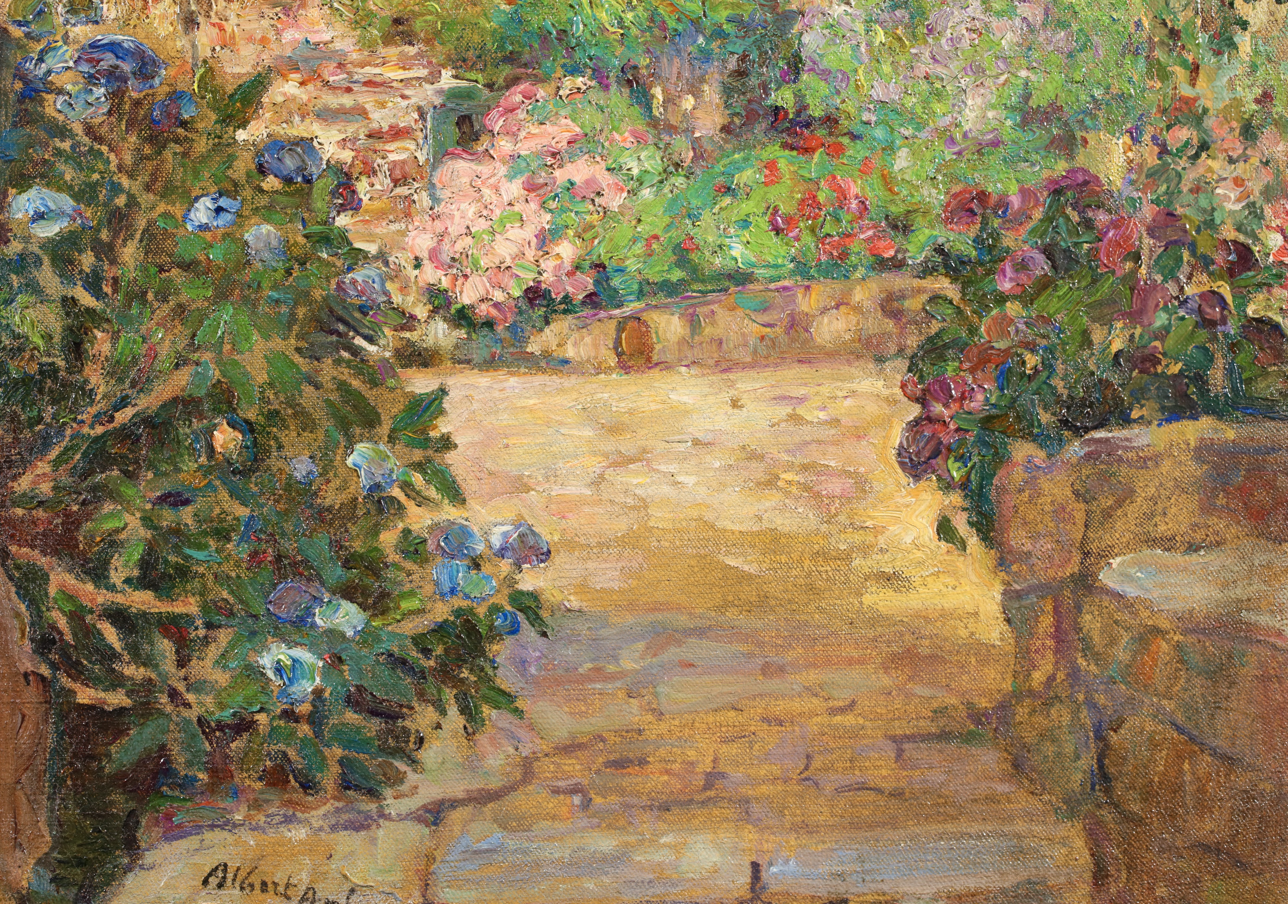 Albert Andre was initially influenced in his painting by Delacroix, and it was Cézanne's paintings that helped him discover how to give the impression of volume using colour: warm tones for illuminated surfaces and cool colours for shadow. But it was undoubtedly Renoir who had the most profound influence on him, especially as it was Renoir who noticed his paintings in 1894 and introduced him to Paul Durand-Ruel, who became his dealer. He painted a wide range of subjects, from particularly accomplished compositions involving figures in urban landscapes, to indoor scenes in which he toned down his colour palette. He painted scenes from Paris, Lyons, Marseilles and Laudun, numerous pictures of Bagnols-sur-Cèze, portraits of women, including Young Girl in Blue; Young Girl Pulling up her Stocking, and precious records of his contemporaries: Portrait of Renoir; Claude Monet in his Garden.