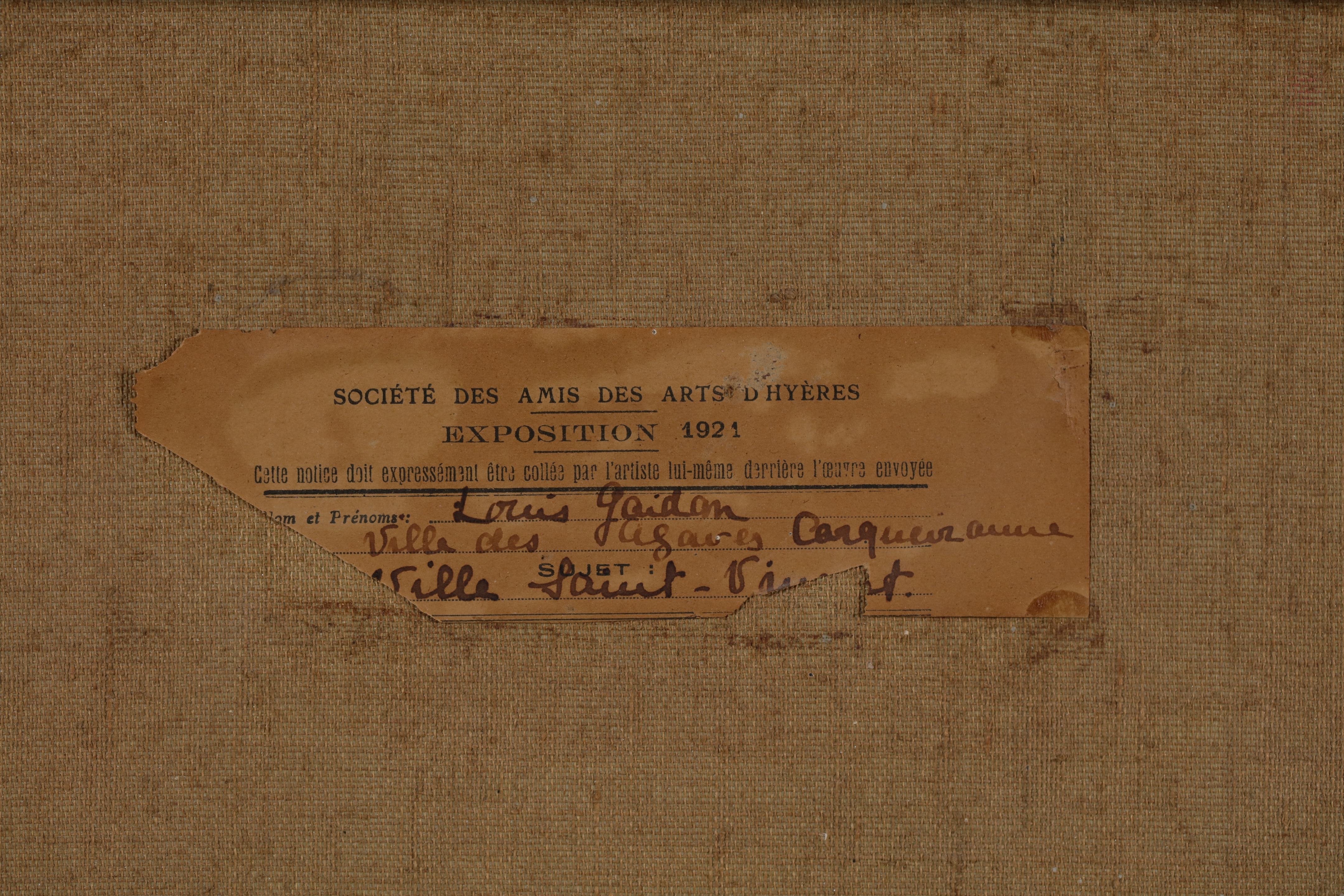 Provenance: Sociéte des Amis des Arts D'Hyères - Exposition 1921 (labels verso)