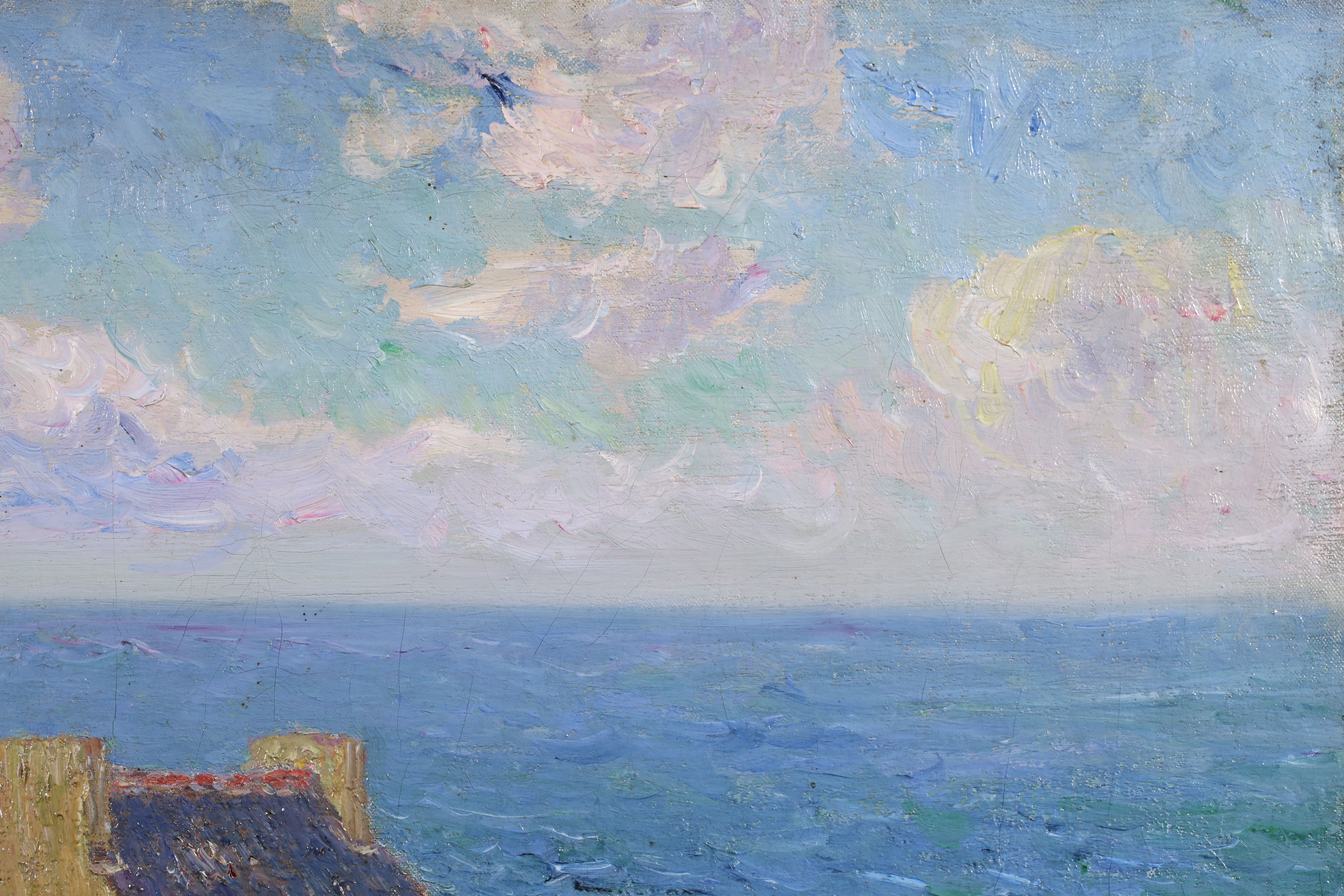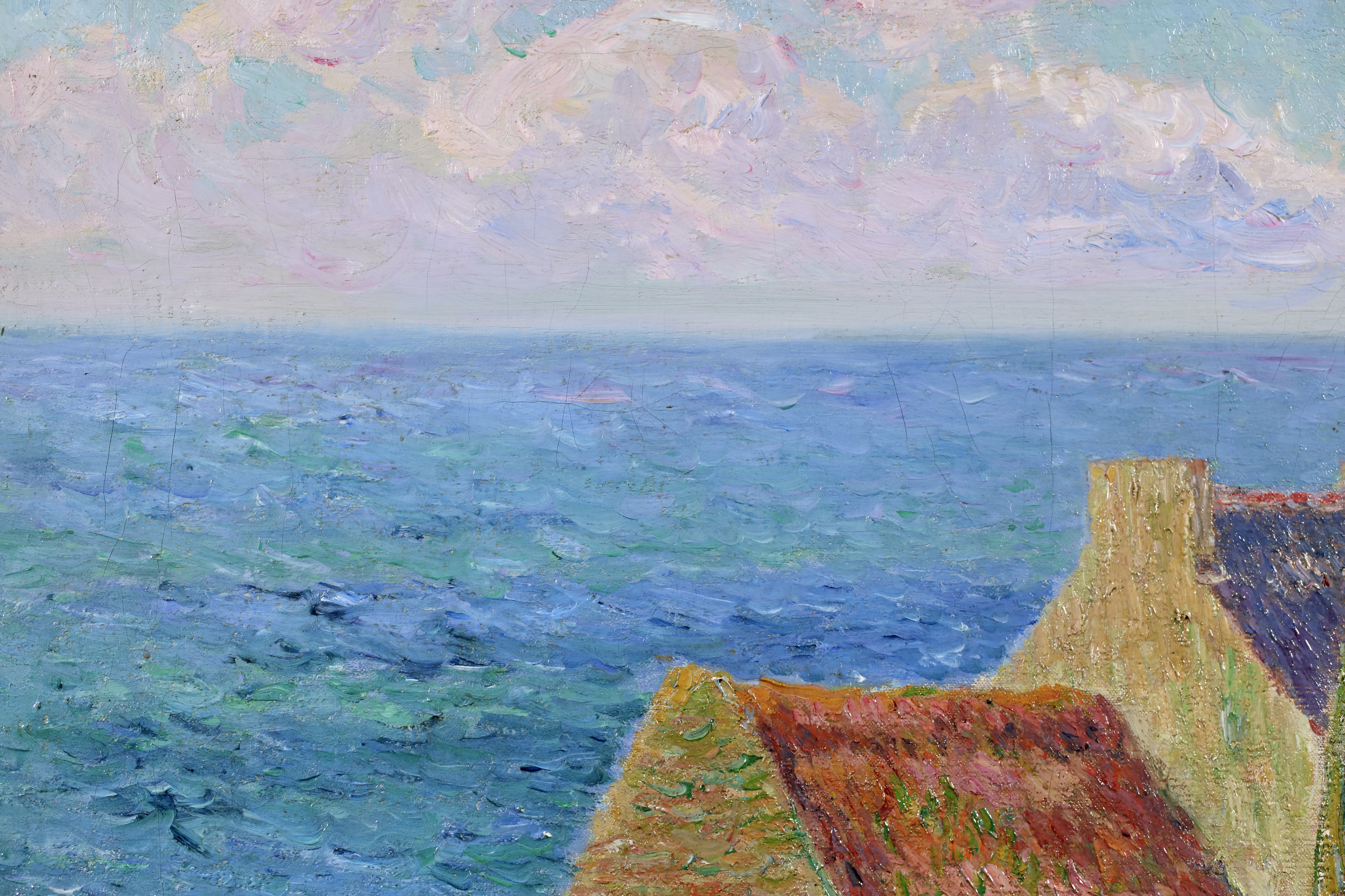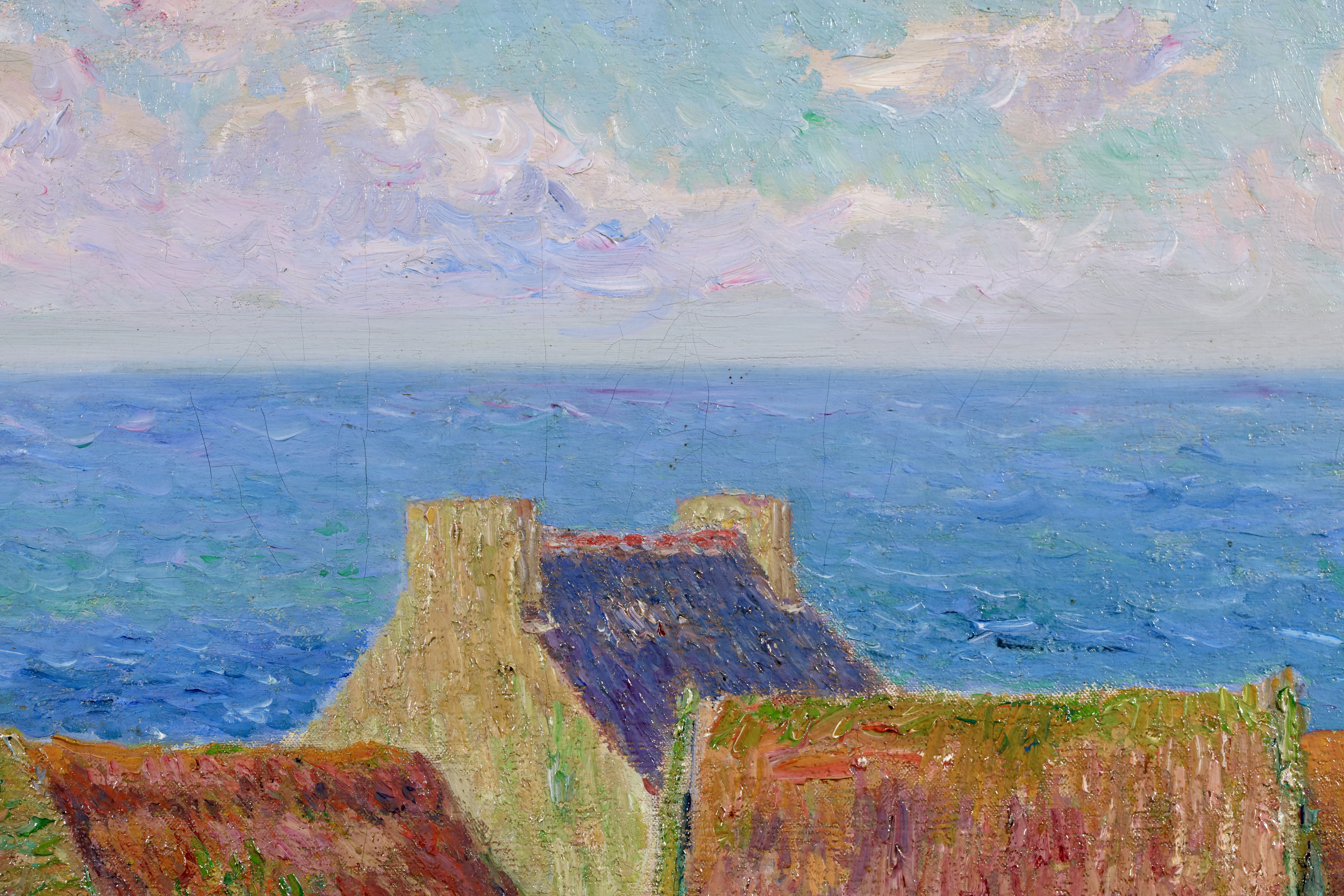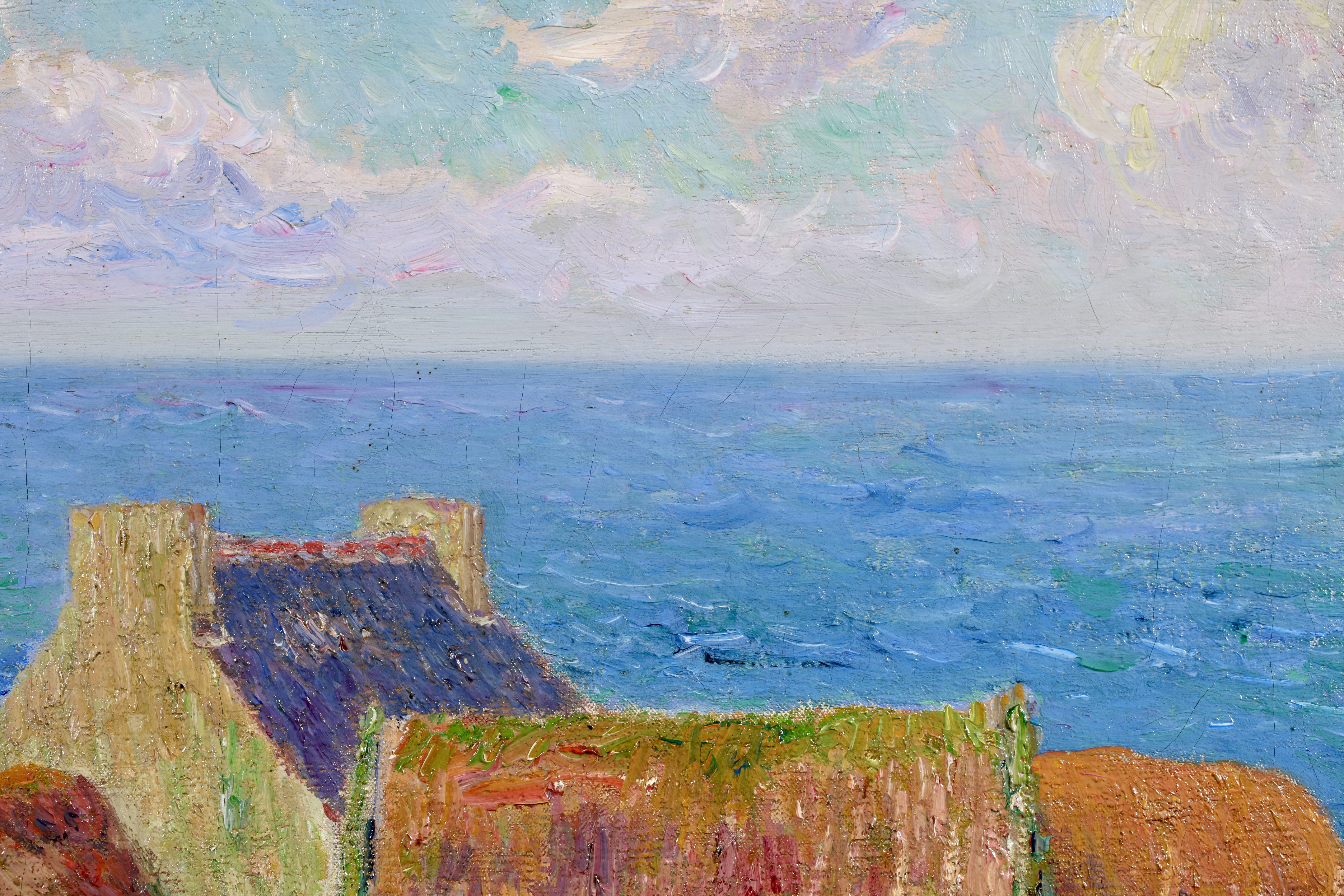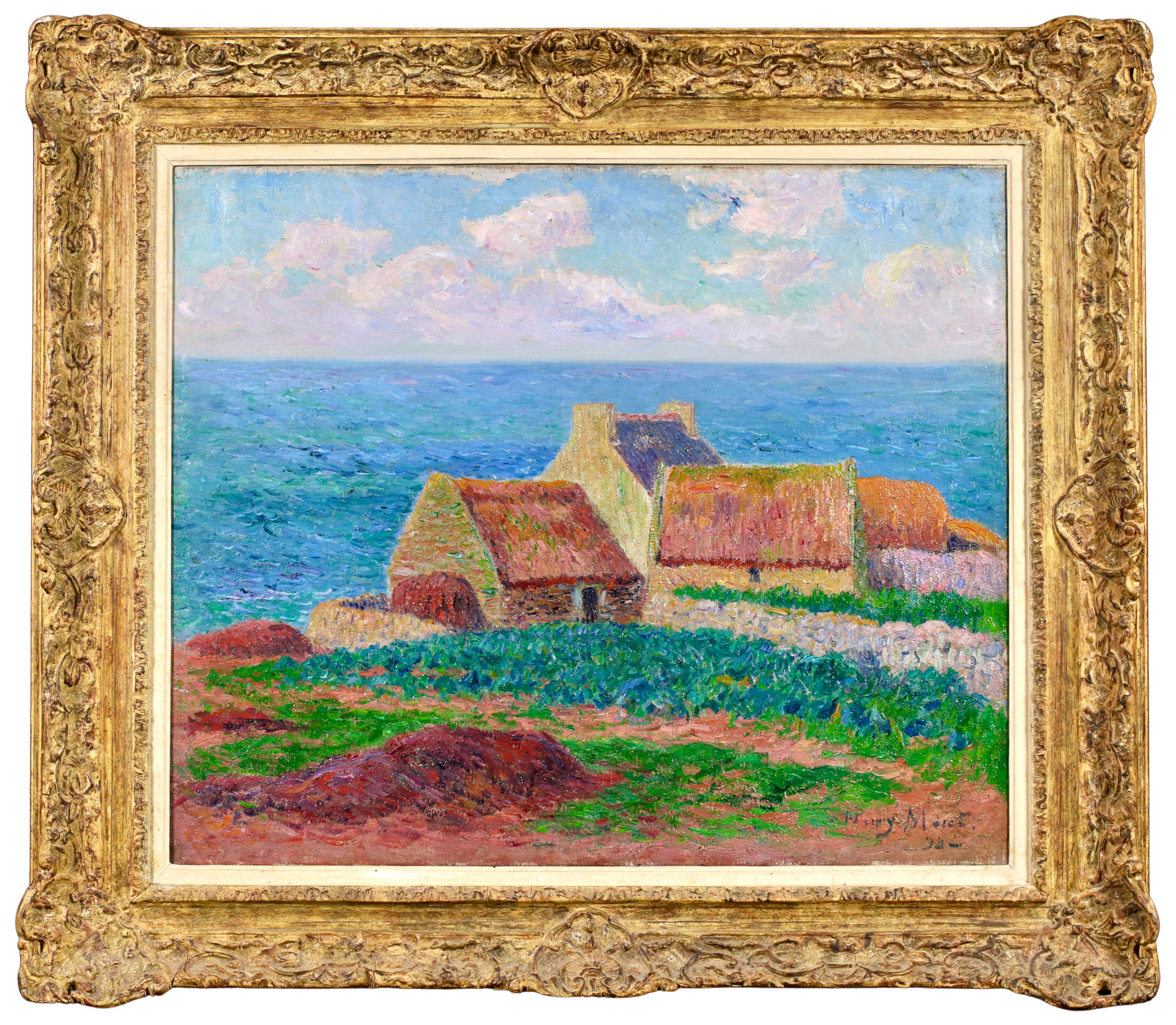 =Henry Moret lived and worked mostly in Brittany, interpreting the Breton landscape in an Impressionist style. He worked at first in Paris with Carolles and J.P. Laurens, but smitten by free art after beginning at the Salon in 1880, he abandoned academicism to live and paint as he wished, in the open air. He formed part of the group of young artists around Gauguin at Pont-Aven. Later, he travelled along the coast of Morbihan, from Ouessant to Belle-Île and from Belle-Île to Groix, observing local types, seaside people, peasants, and sardine fishermen, making numerous sketches and studies. He settled at Doëlan and concentrated primarily on maritime themes, portraying the sea in all its aspects and the human activities revolving around it.