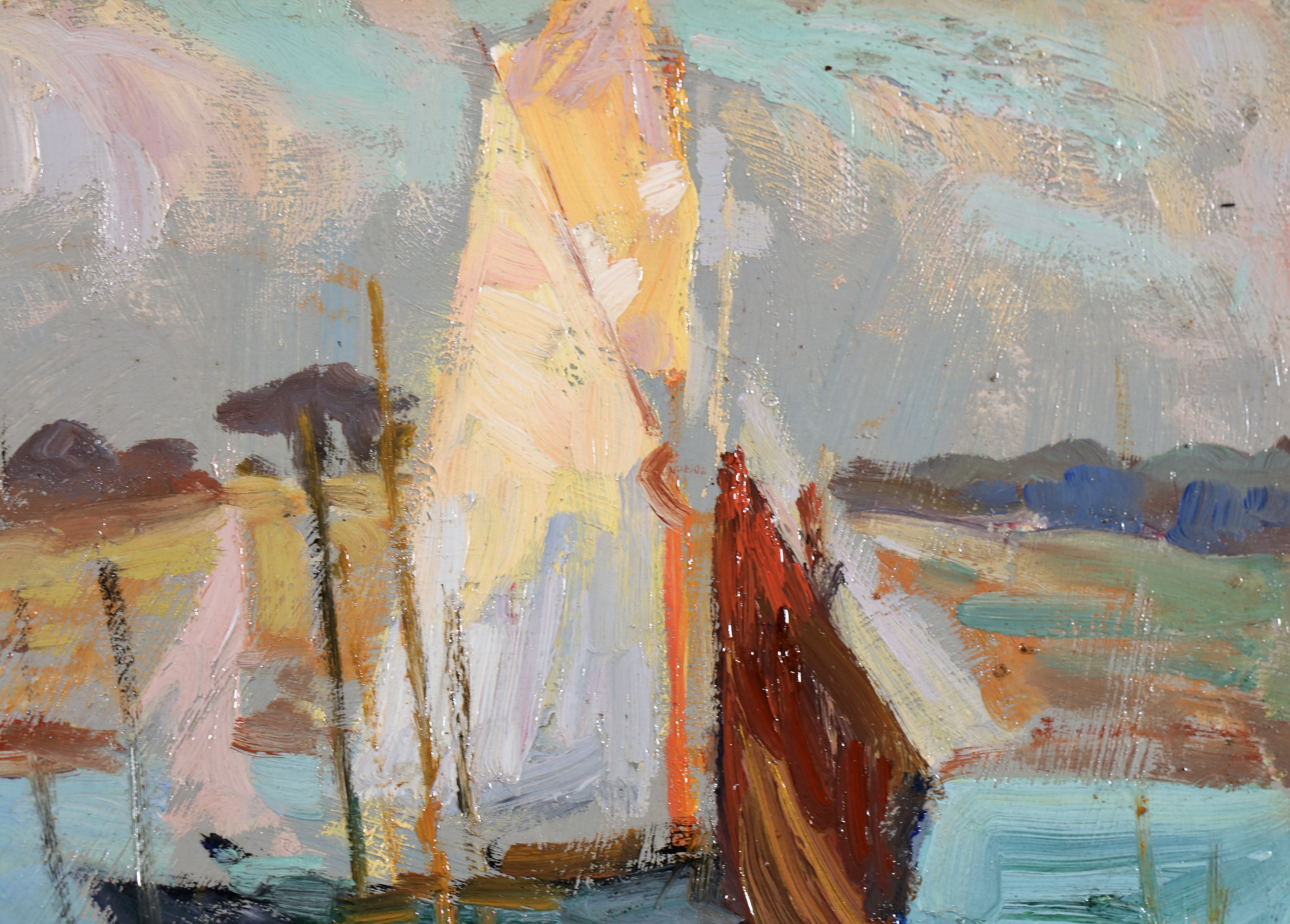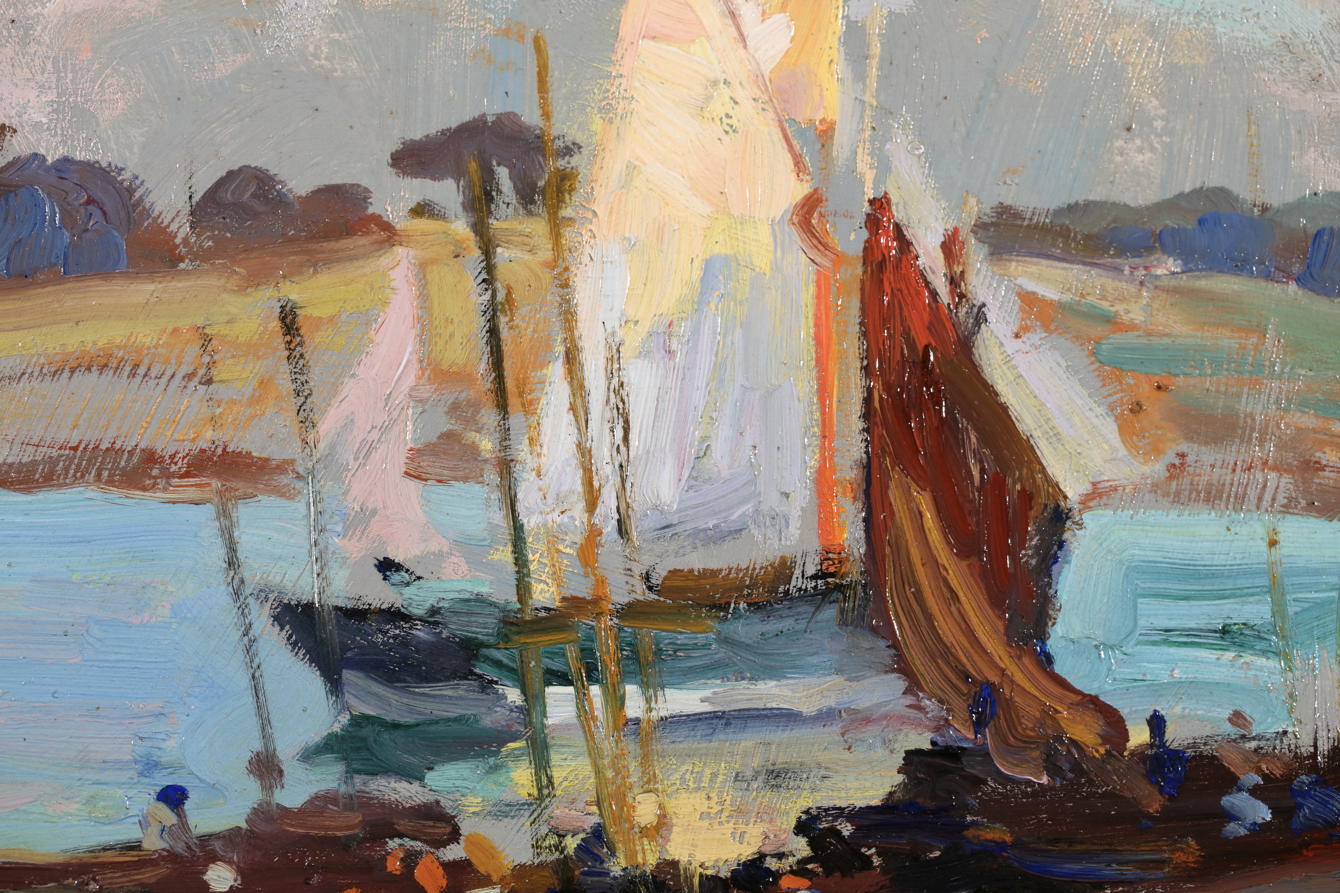 Like many of his contemporaries, Sydney Thompson went to Europe to further his artistic education. With a large sum of money settled on him by his father, he left New Zealand for London in 1900. His art training began at the Heatherley School of Art, an appropriate choice for an artist with ambitions in portraiture and figure painting. However, he soon tired of its tedious routines and went briefly to the artists' colony at Staithes, Yorkshire, before leaving England in 1901 to study in Paris. He enrolled at the Académie Julian and took classes with Gabriel Ferrier and William-Adolphe Bouguereau. The Irish impressionist William John Leech was a fellow student. Thompson's travels included Italy, Scotland and Dublin, but it was the time spent at the artists' colony at Concarneau, Brittany, where he was based between 1902 and 1904, that made a lasting impression. His romantic involvement with the region, which was expressed in much of his subsequent painting, stemmed from this visit. In 1904 he exhibited at the Royal Academy of Arts in London, and at the Paris Salon of the Société des artistes français.