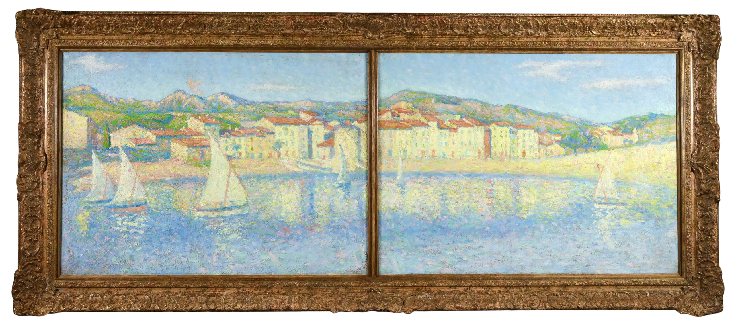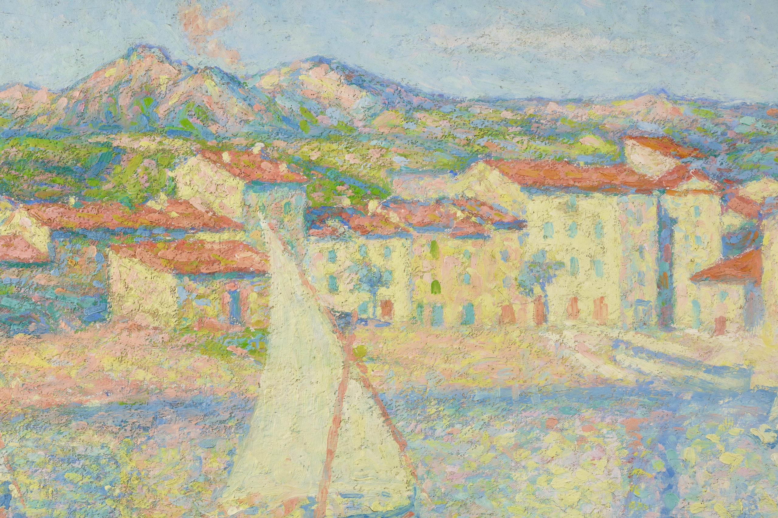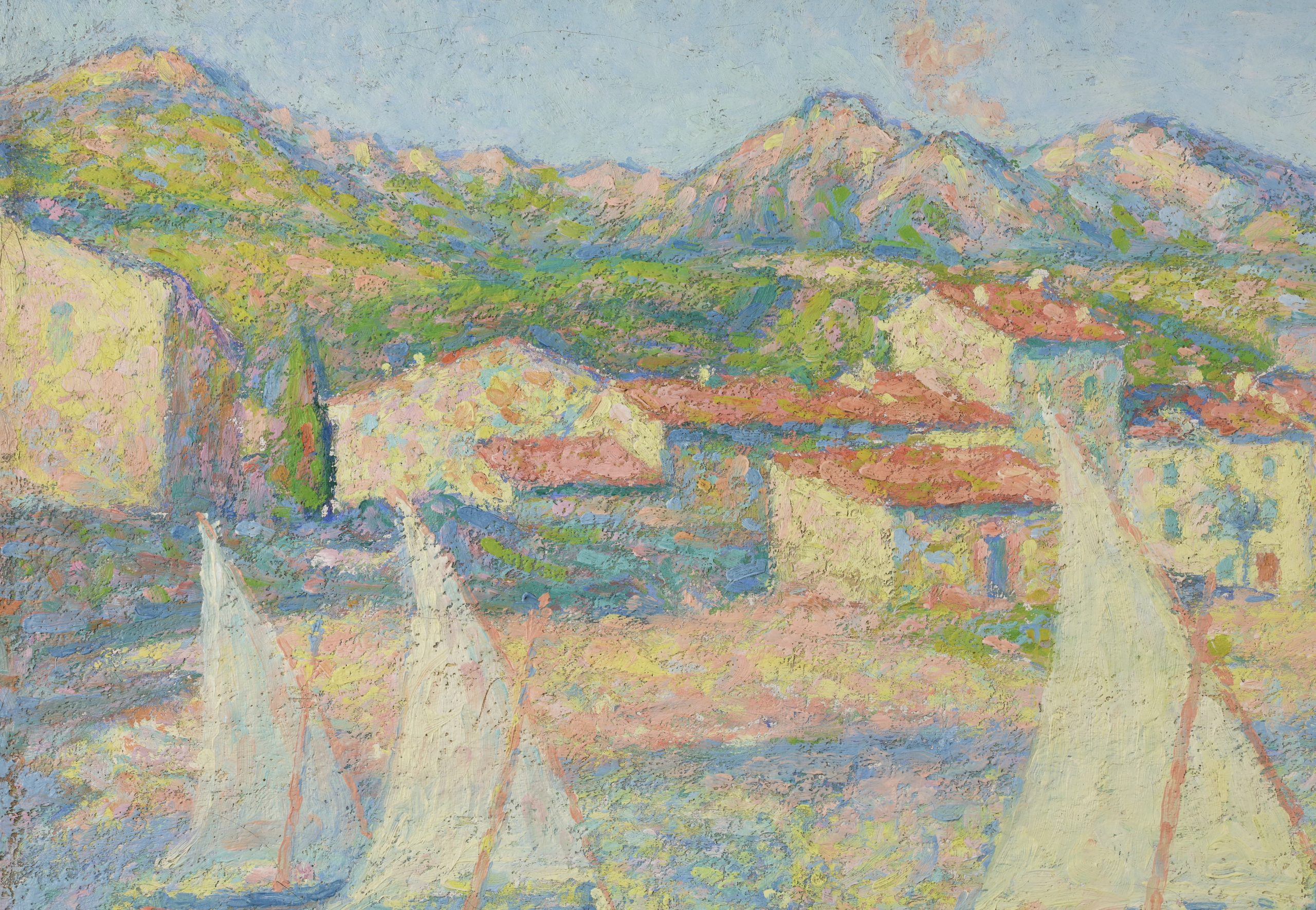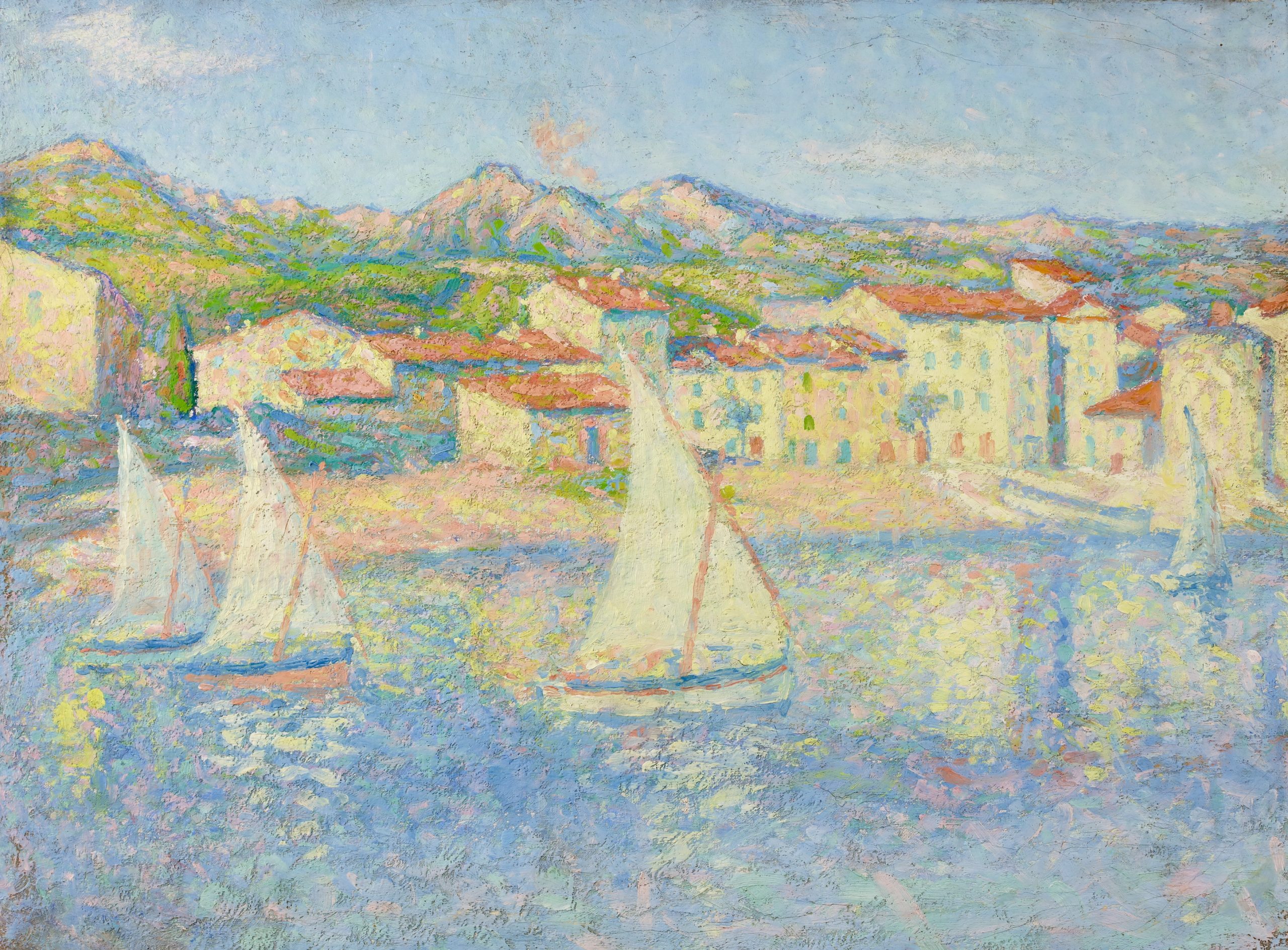 By the time he left Paris, Laugé had adopted the Divisionist touch championed by the Neo-Impressionists, and adhered to it more or less closely throughout his career. From 1905, in order to paint in situ, he procured a studio-caravan. For several years from 1916 onwards he had a base in Alet (Aude) and from 1926 spent the summer months in Collioure. From 1932 he had a studio in Paris and lived next door to his friend Bourdelle. In 1913 and 1926 he produced tapestry designs in response to commissions from the Gobelins tapestry manufactory.