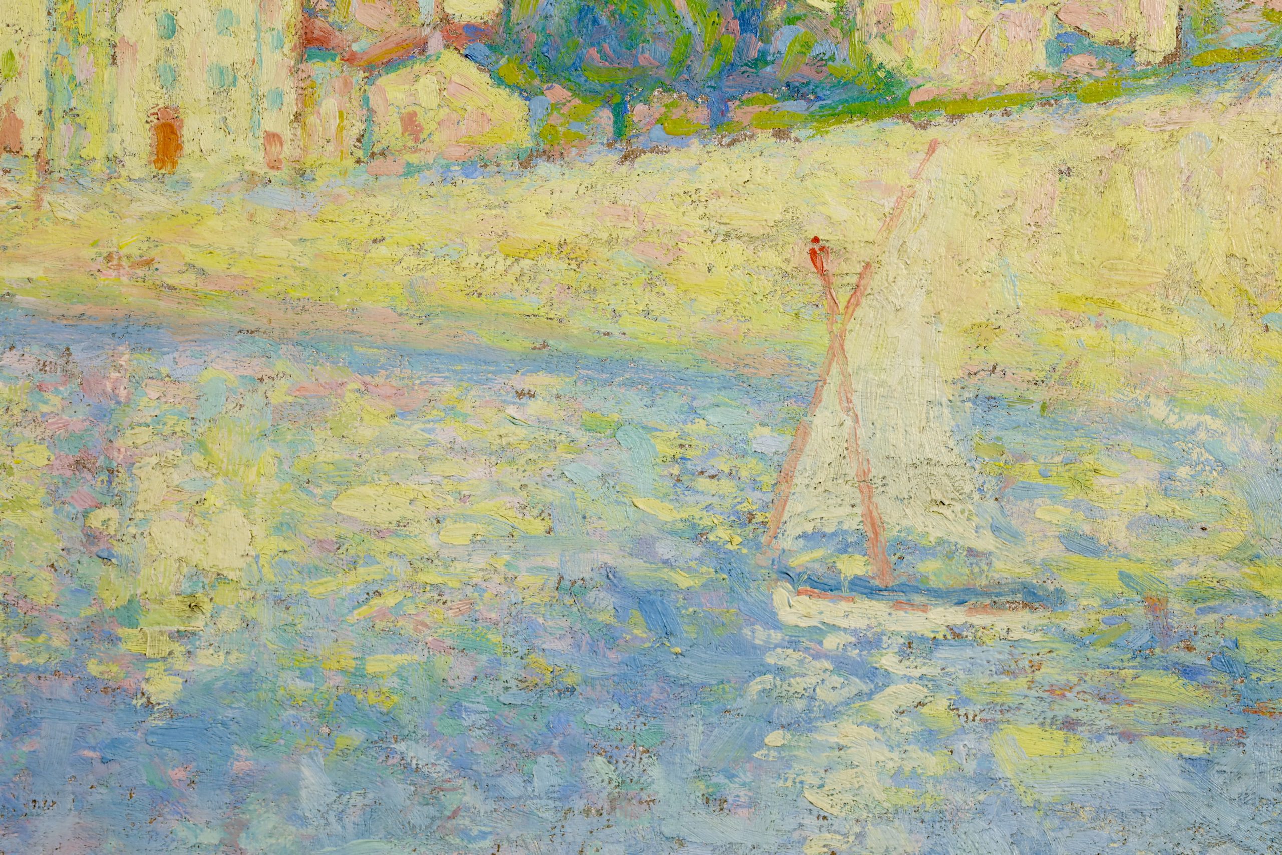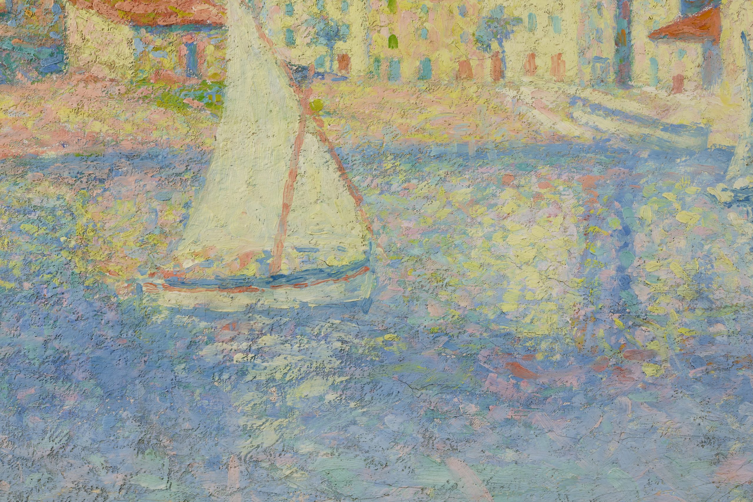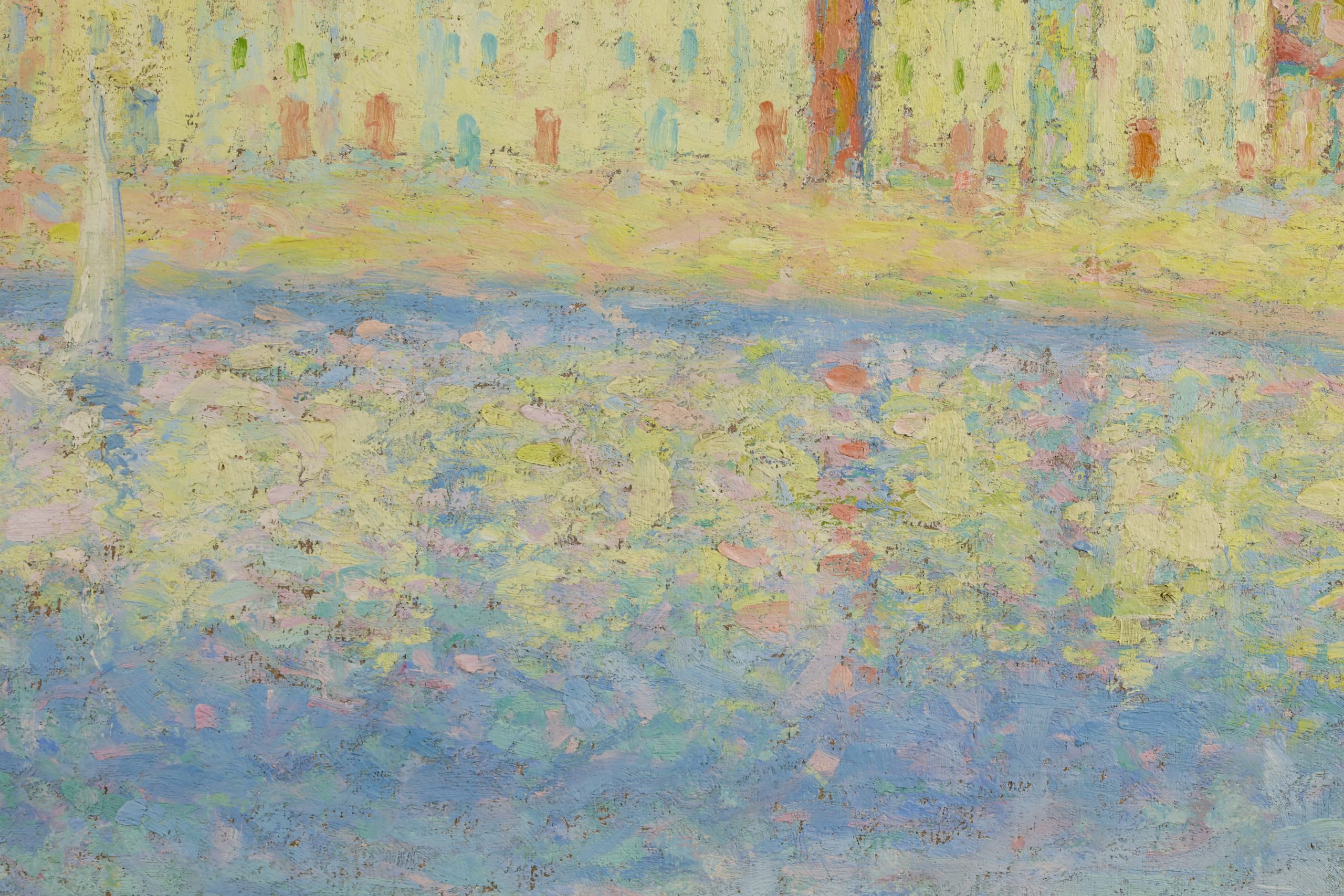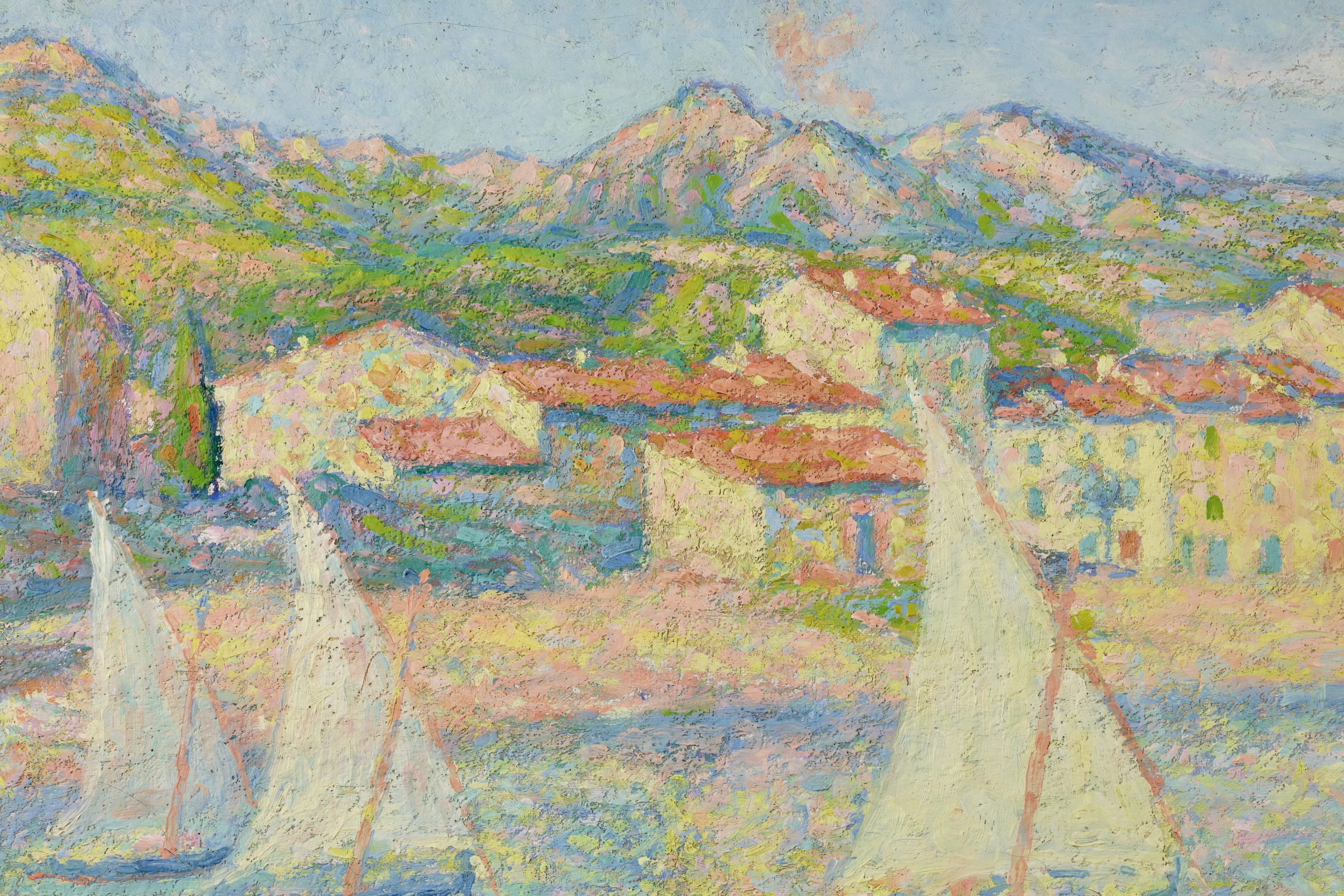 By the time he left Paris, Laugé had adopted the Divisionist touch championed by the Neo-Impressionists, and adhered to it more or less closely throughout his career. From 1905, in order to paint in situ, he procured a studio-caravan. For several years from 1916 onwards he had a base in Alet (Aude) and from 1926 spent the summer months in Collioure. From 1932 he had a studio in Paris and lived next door to his friend Bourdelle. In 1913 and 1926 he produced tapestry designs in response to commissions from the Gobelins tapestry manufactory.