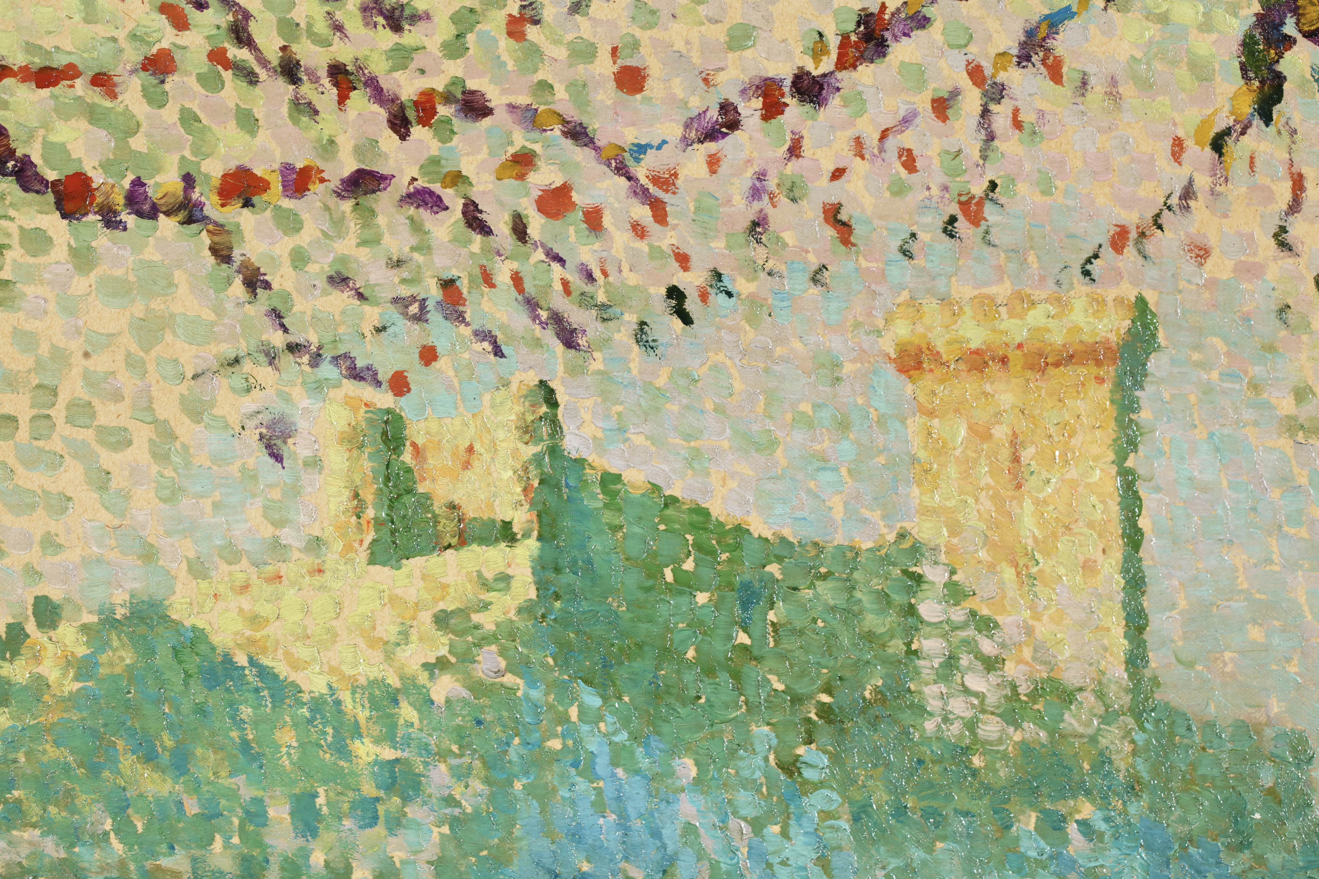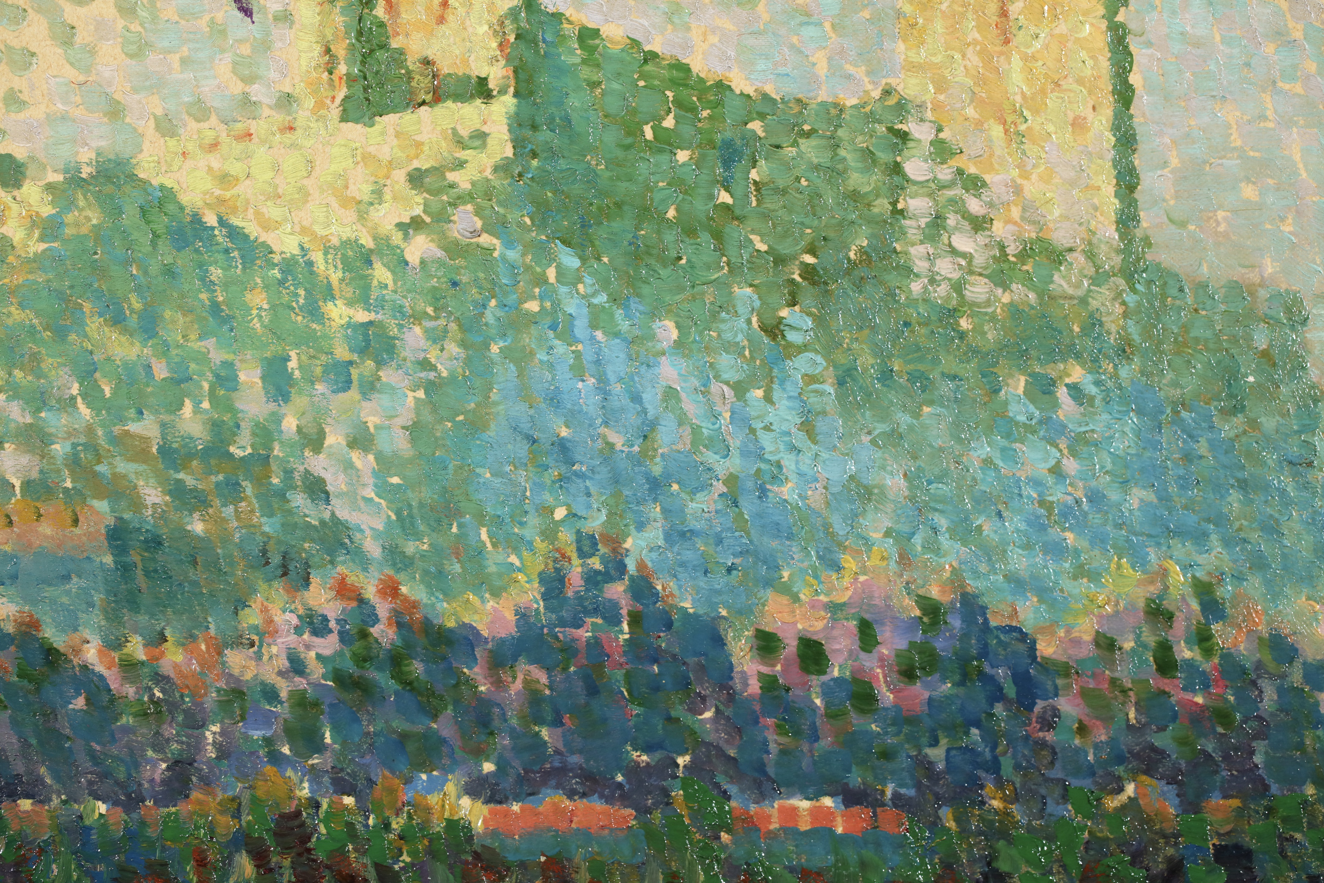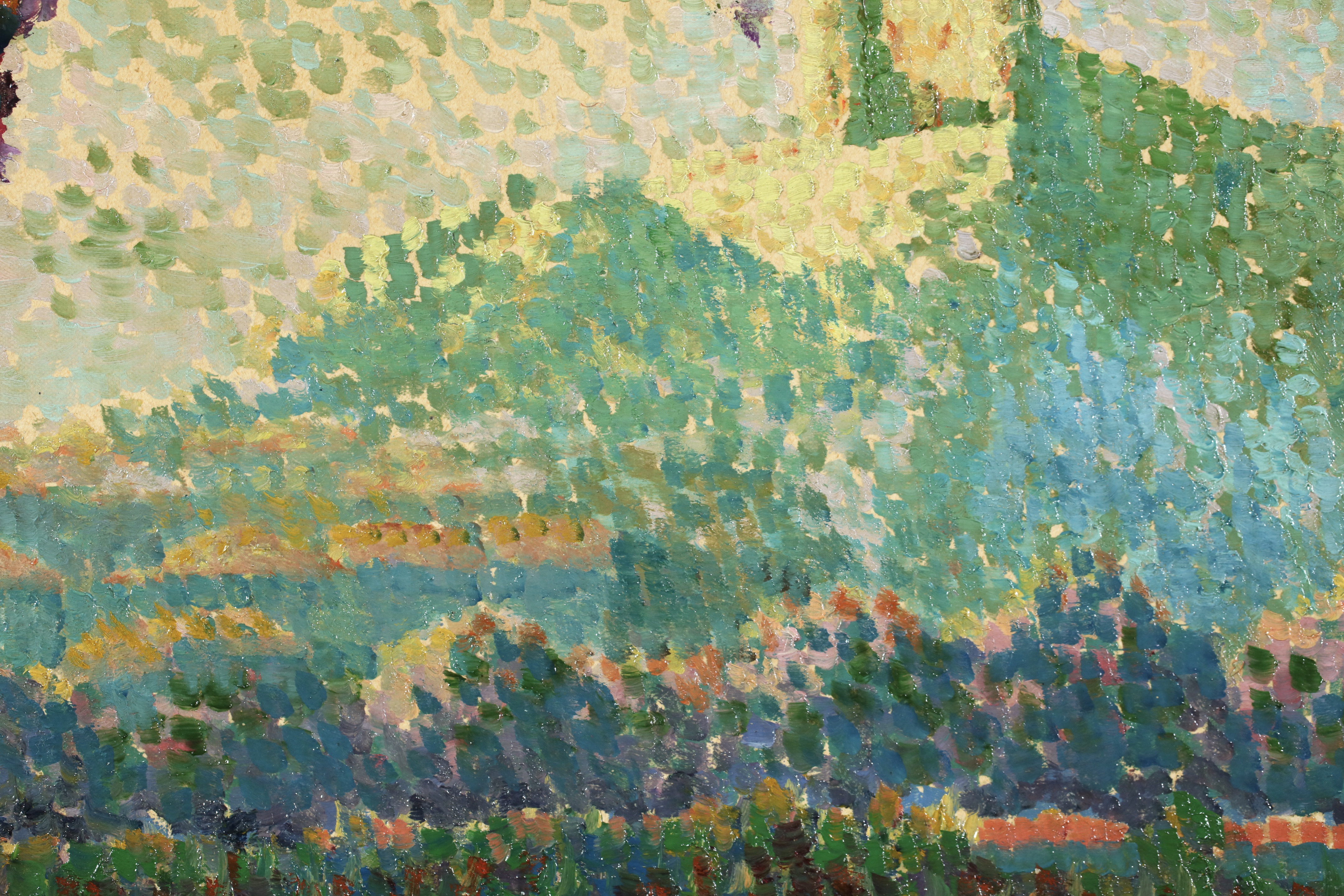 Lucie Cousturier first exhibited at the Salon des Artistes Indépendants in 1901, and was to exhibit three to eight oils there every year until 1920. She exhibited at other exhibitions in Brussels and Berlin, and at the end of 1906 gave her first solo exhibition in Paris. By 1907 she had a perfect mastery of technique and color. In her later paintings, particularly outdoors scenes, her style became increasingly fluid and free, with warm and lively colors. She exhibited with Signac regularly and had a two man show at the Galerie de Bruxelles with Signac in Brussels in 1923. Lucie also had an important writing career by writing articles and monographs about the major members of the emerging Neo-Impressionist movement. She is credited for being the first specialist writer of the movement.