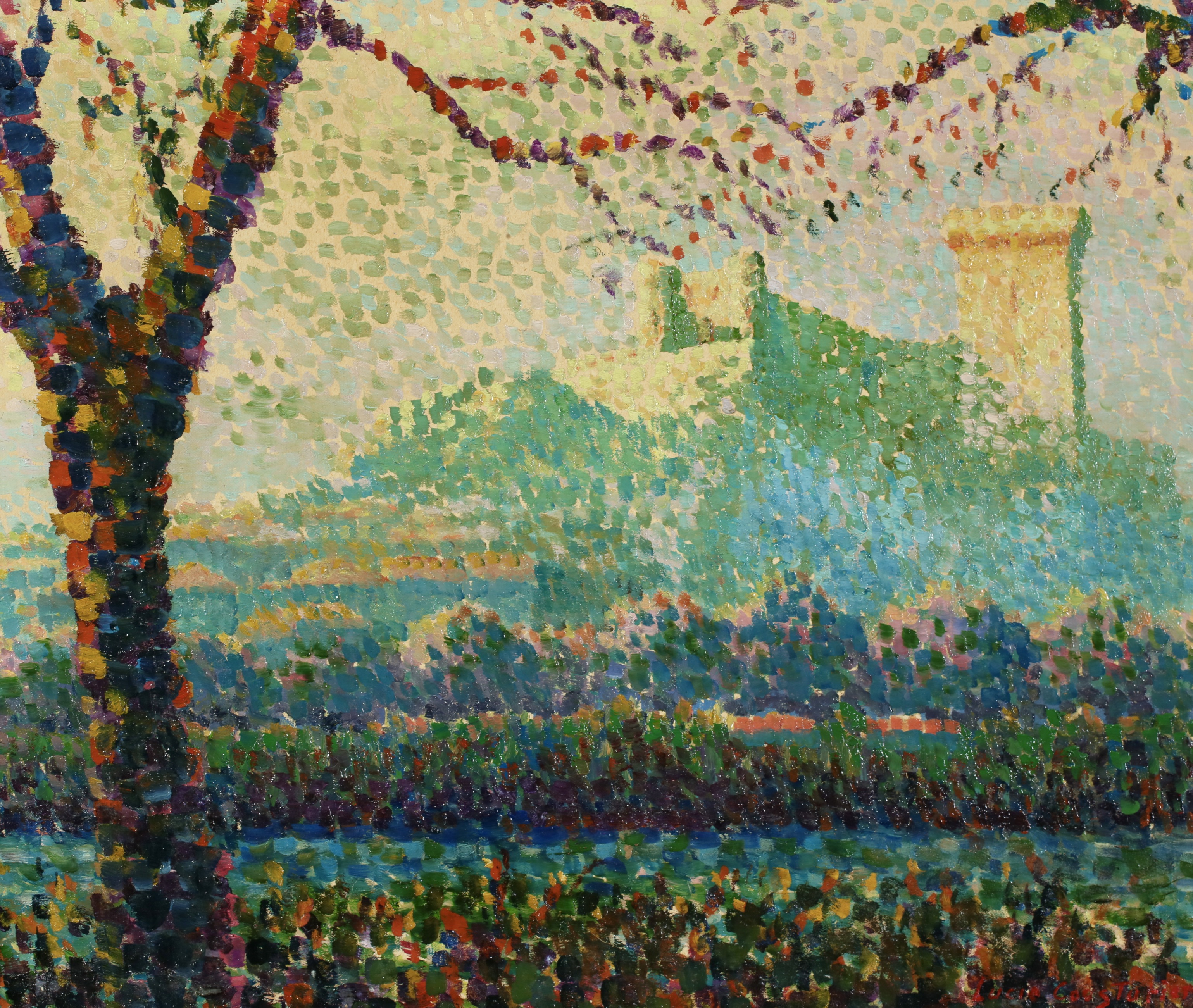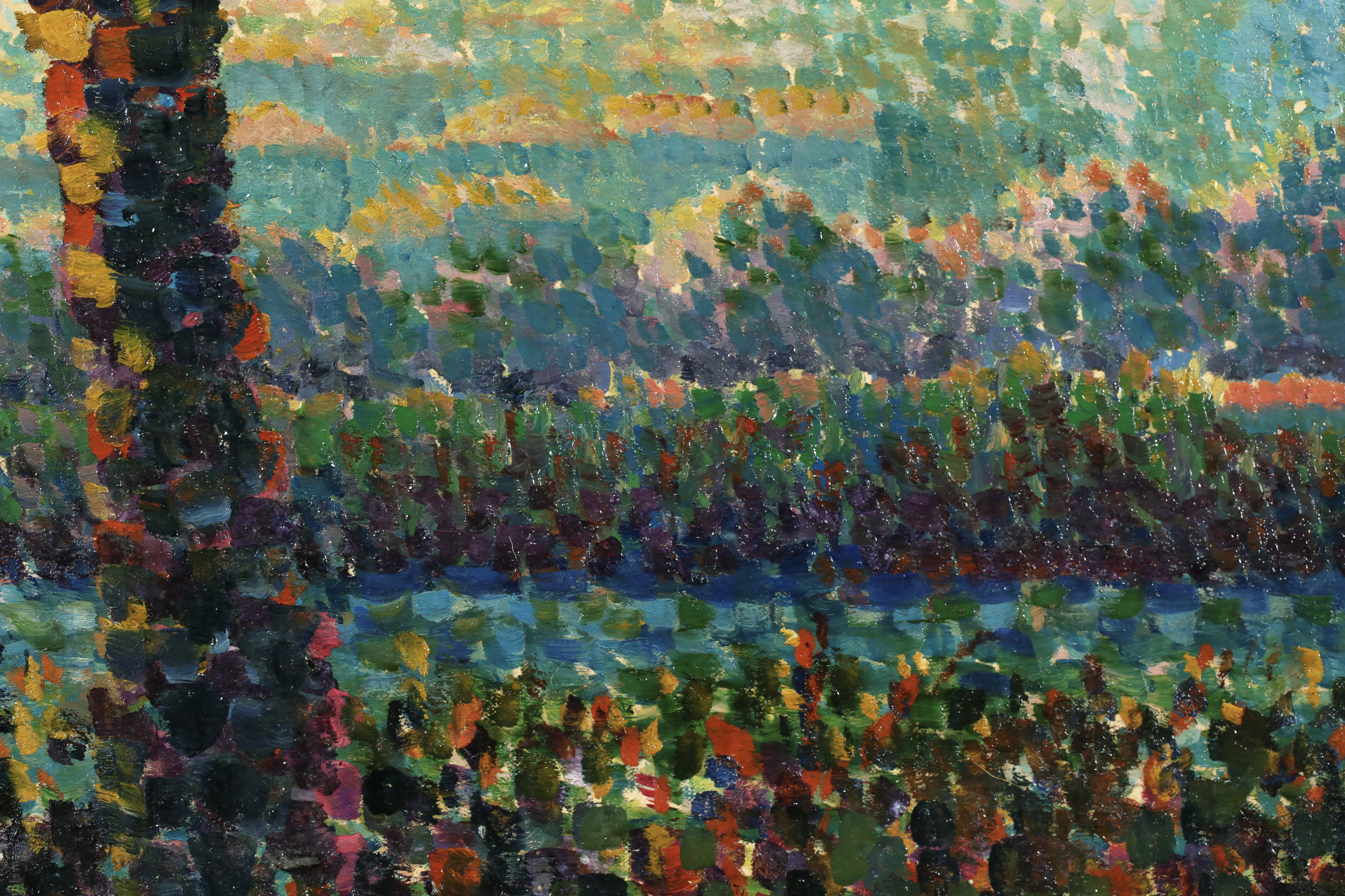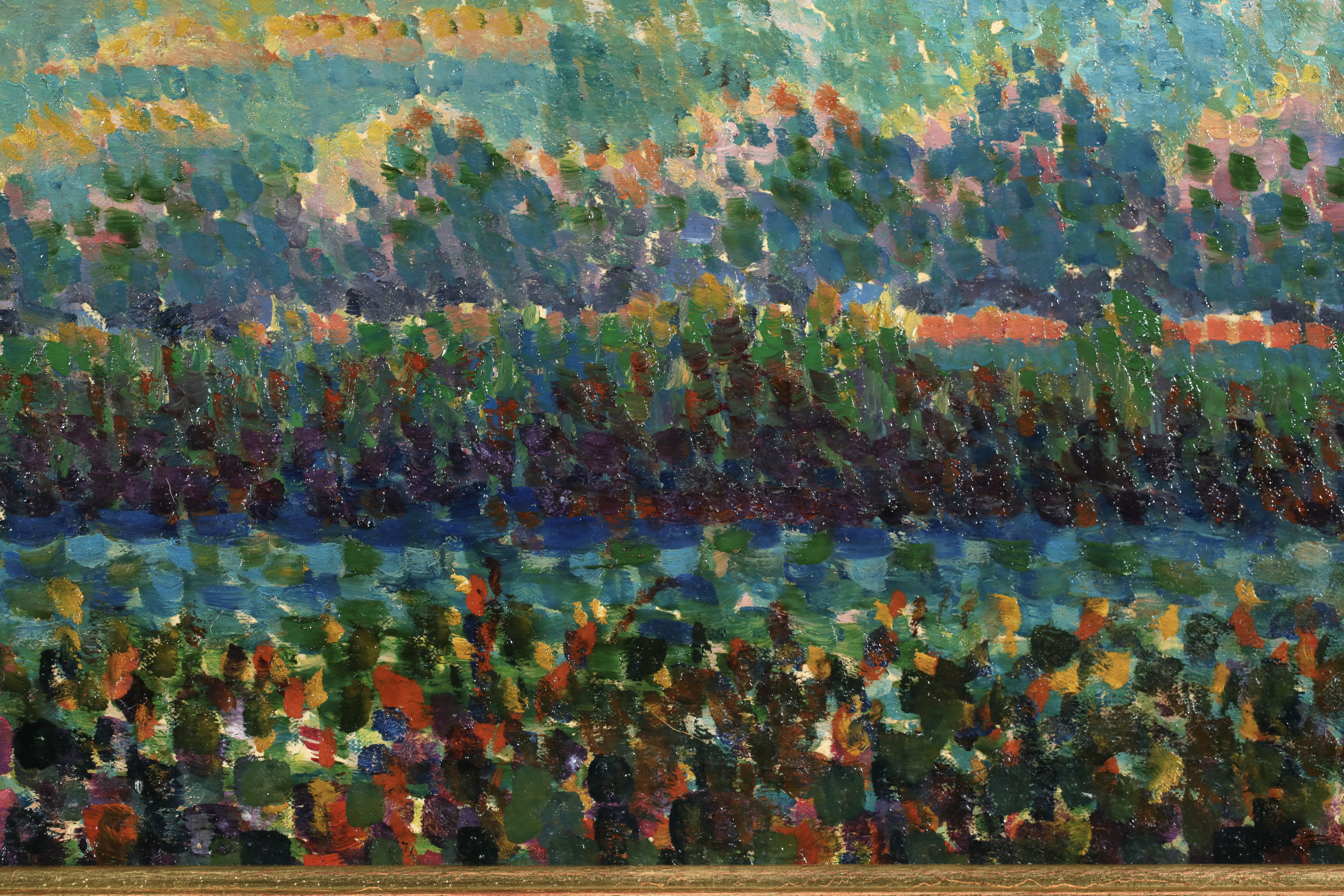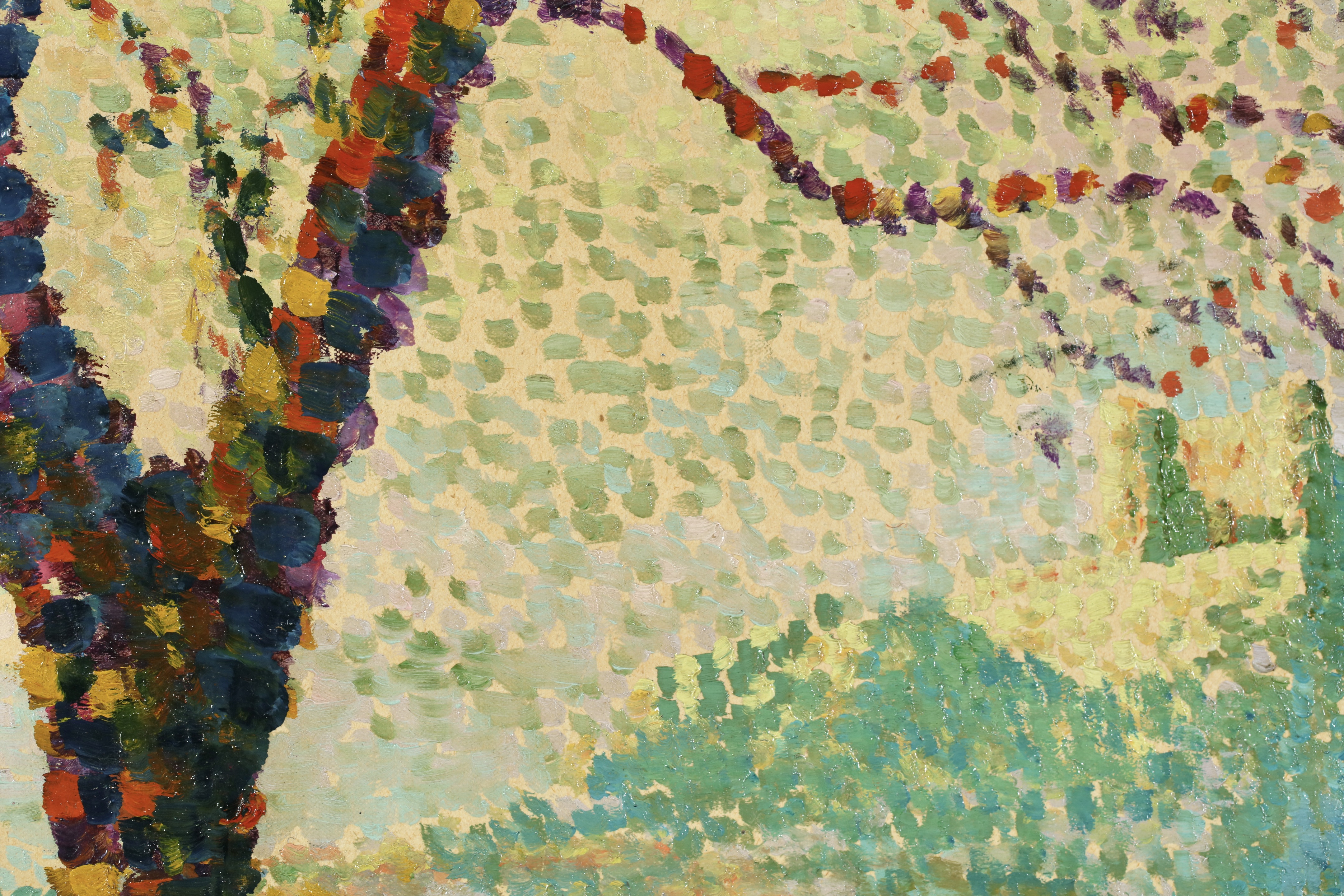 Lucie Cousturier first exhibited at the Salon des Artistes Indépendants in 1901, and was to exhibit three to eight oils there every year until 1920. She exhibited at other exhibitions in Brussels and Berlin, and at the end of 1906 gave her first solo exhibition in Paris. By 1907 she had a perfect mastery of technique and color. In her later paintings, particularly outdoors scenes, her style became increasingly fluid and free, with warm and lively colors. She exhibited with Signac regularly and had a two man show at the Galerie de Bruxelles with Signac in Brussels in 1923. Lucie also had an important writing career by writing articles and monographs about the major members of the emerging Neo-Impressionist movement. She is credited for being the first specialist writer of the movement.