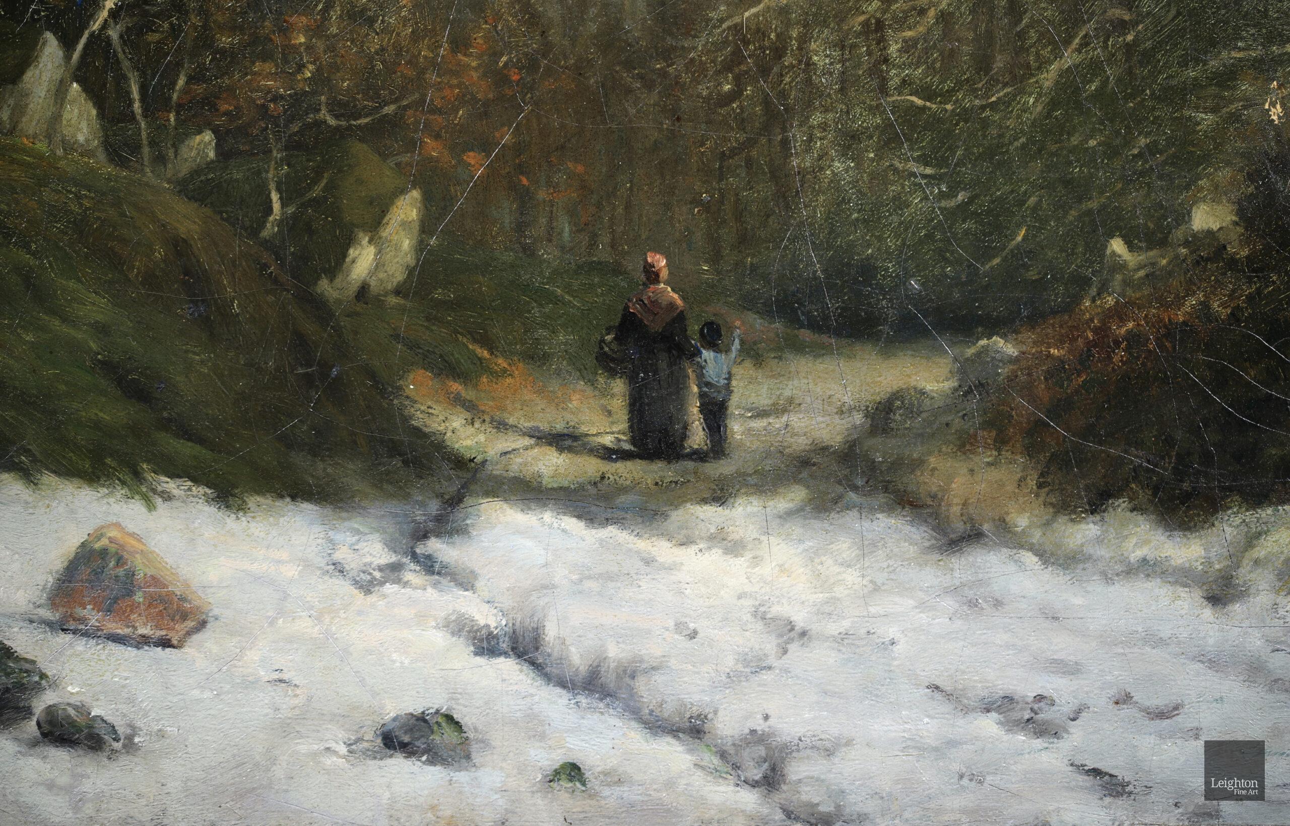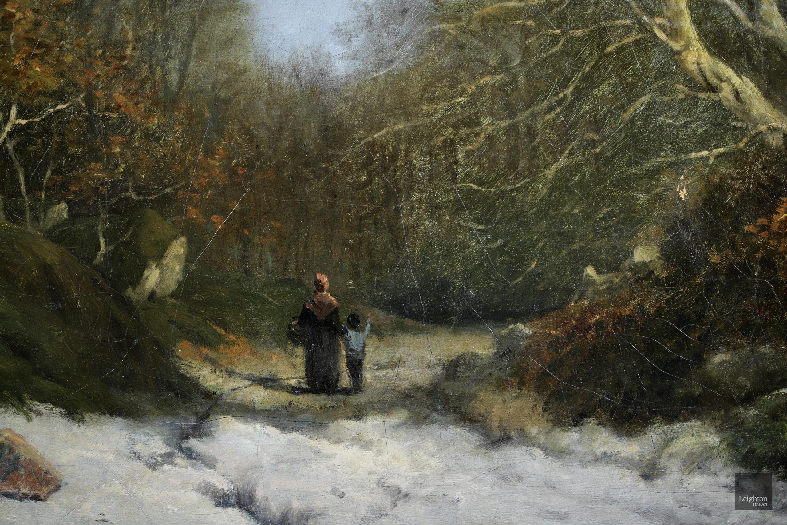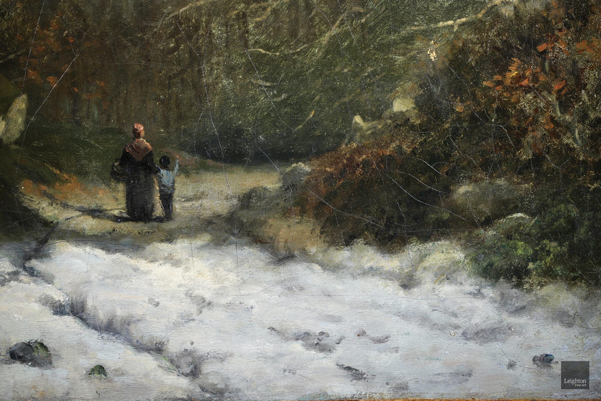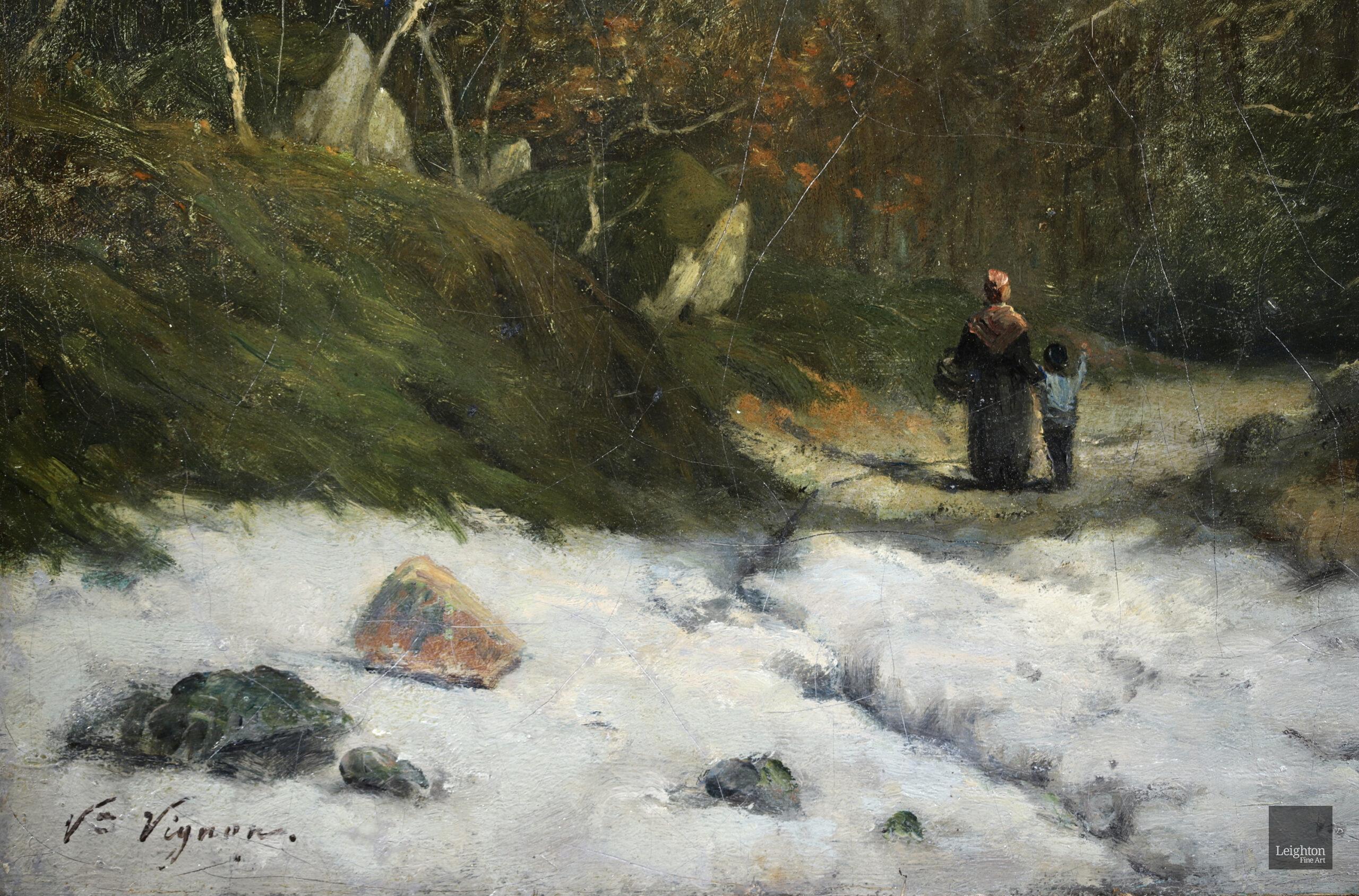 Literature: This early work by Vignon was painted whilst he was under the tutelage of Camille Corot in the period between 1869 and 1870 . The work shows a mother and child in the forest at Fontainebleau in winter. Many painters in Vignon's circle such as Monet, Renoir, Sisley and Bazille visited this area to paint in the late 1860's and the early 1870's.